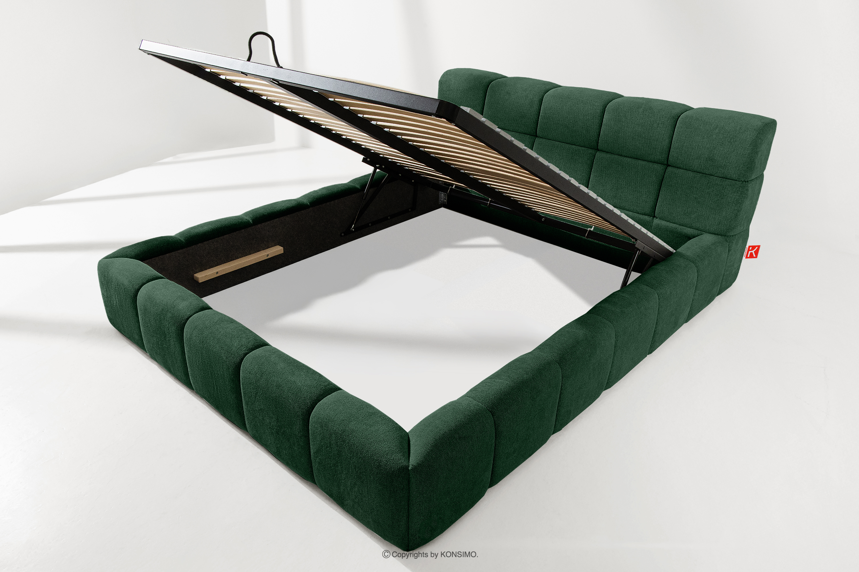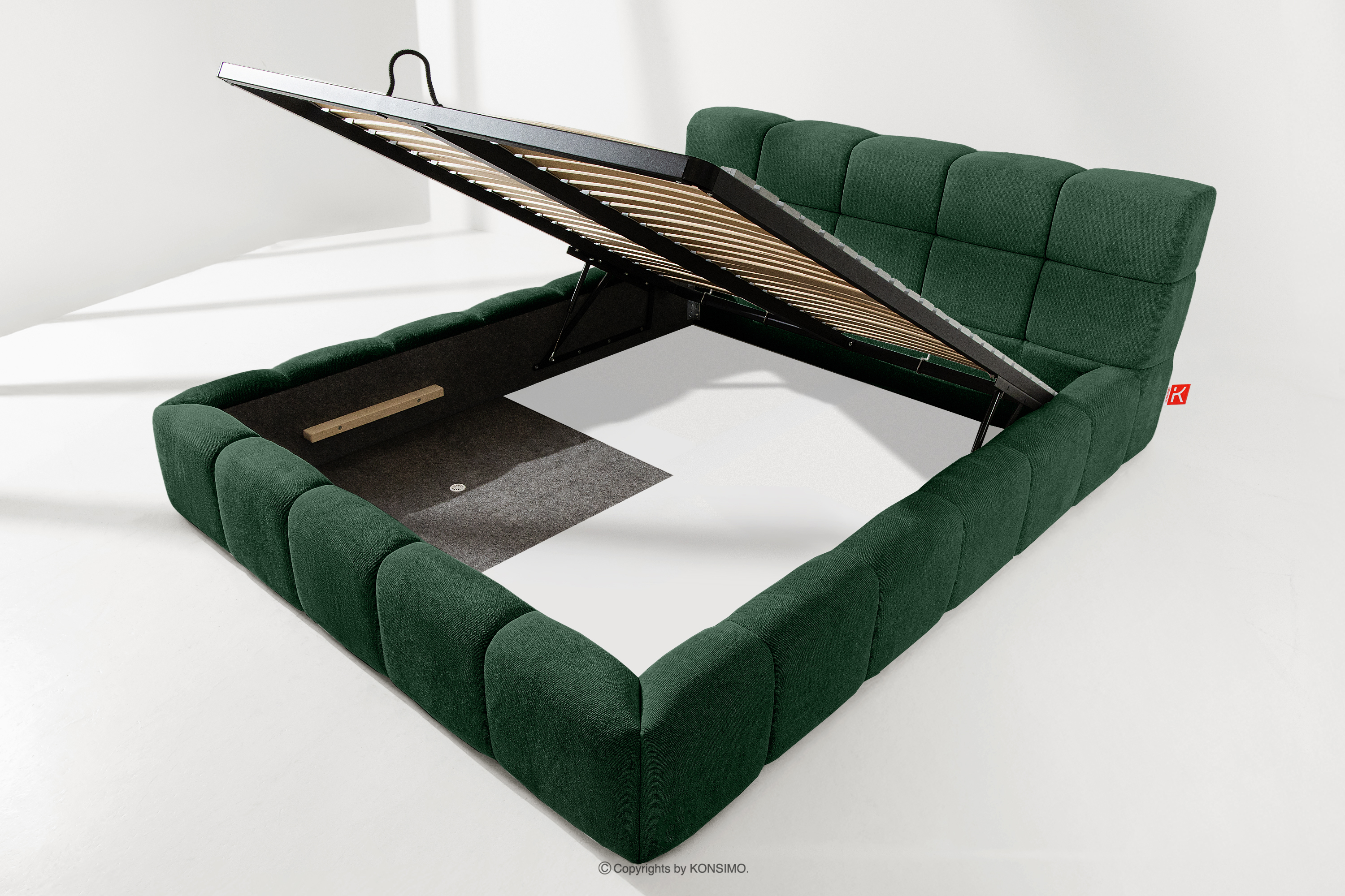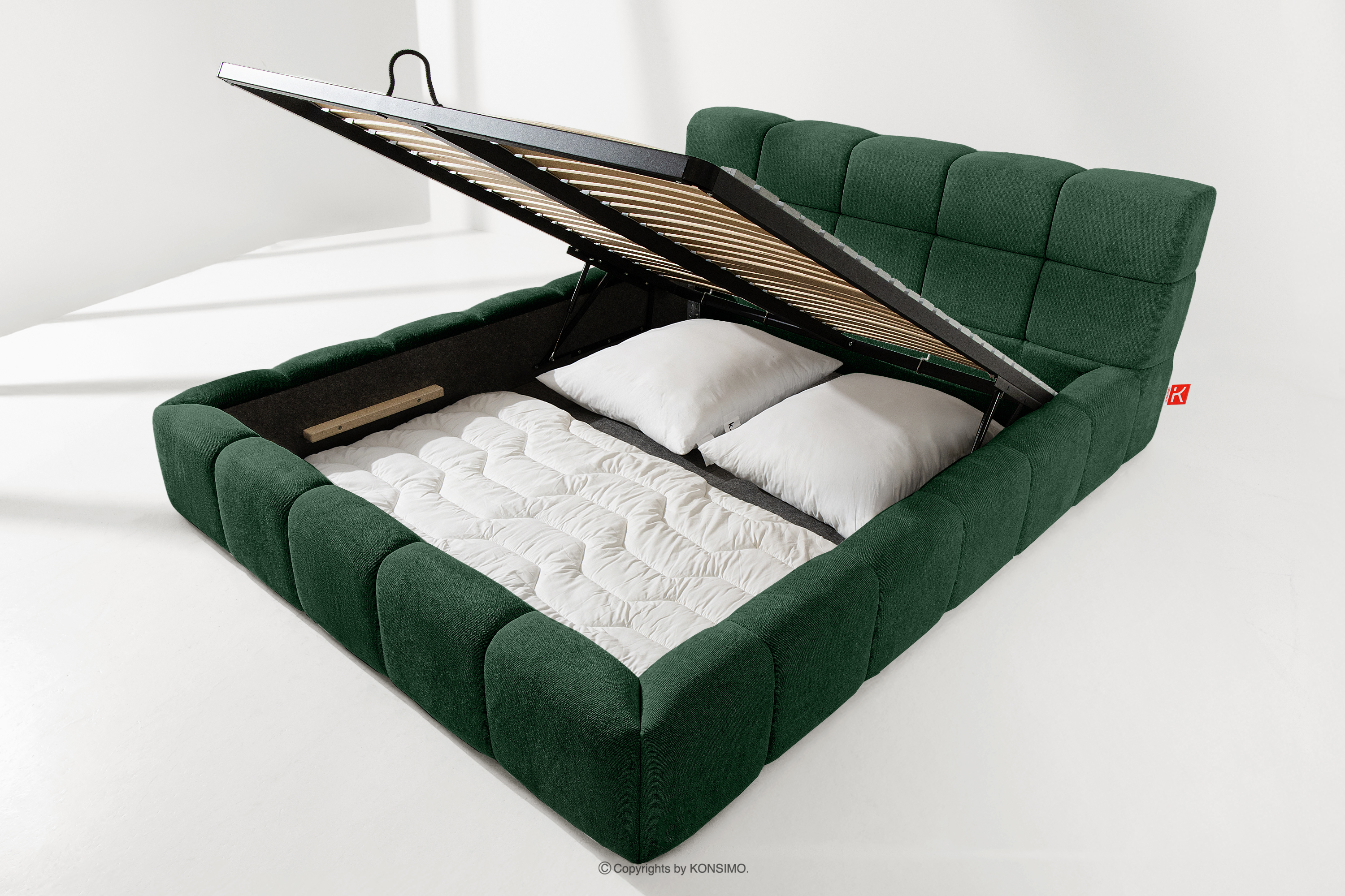 Der praktische Bettkasten, der durch Gasflaschen geöffnet wird, ist eine moderne Lösung, die den Zugang zu den gelagerten Gegenständen ohne großen Aufwand ermöglicht. Die Funktionalität dieses Mechanismus ermöglicht ein sanftes Öffnen des Bettkastens, was den Nutzungskomfort weiter erhöht.