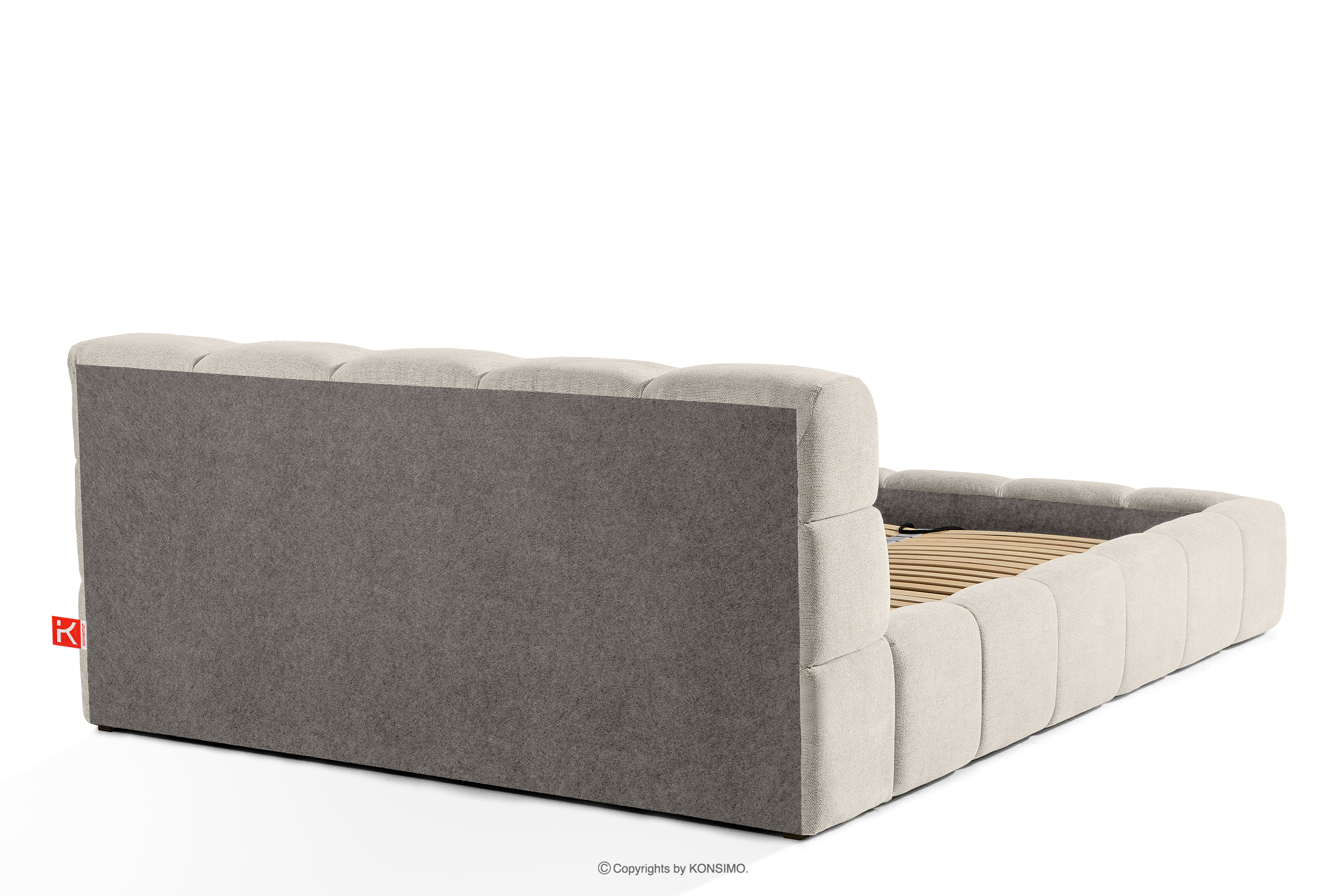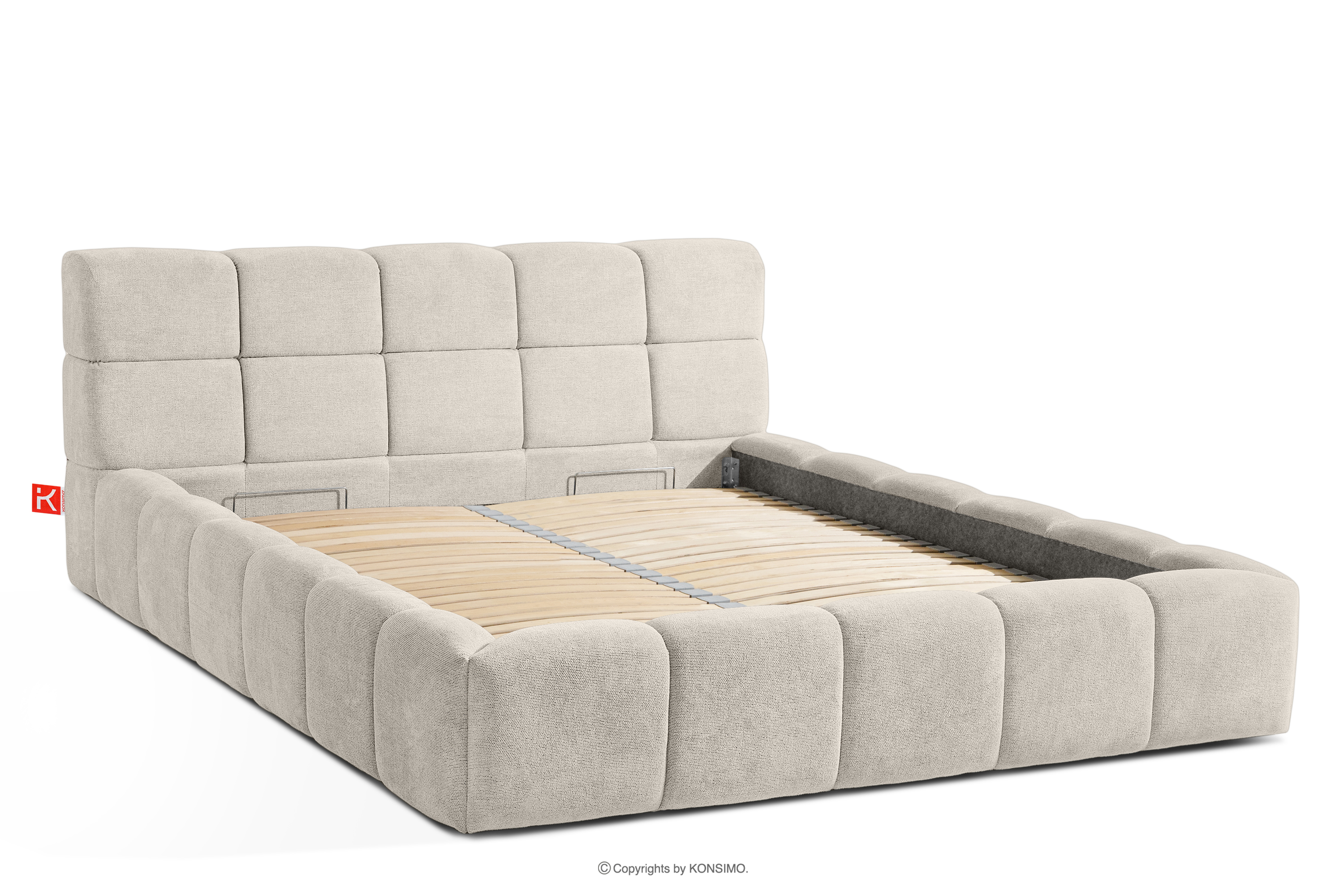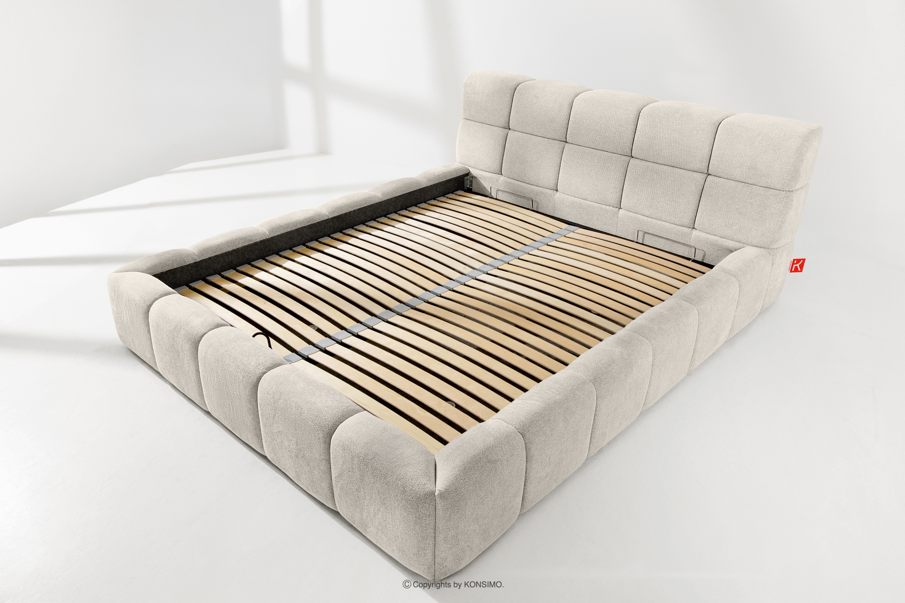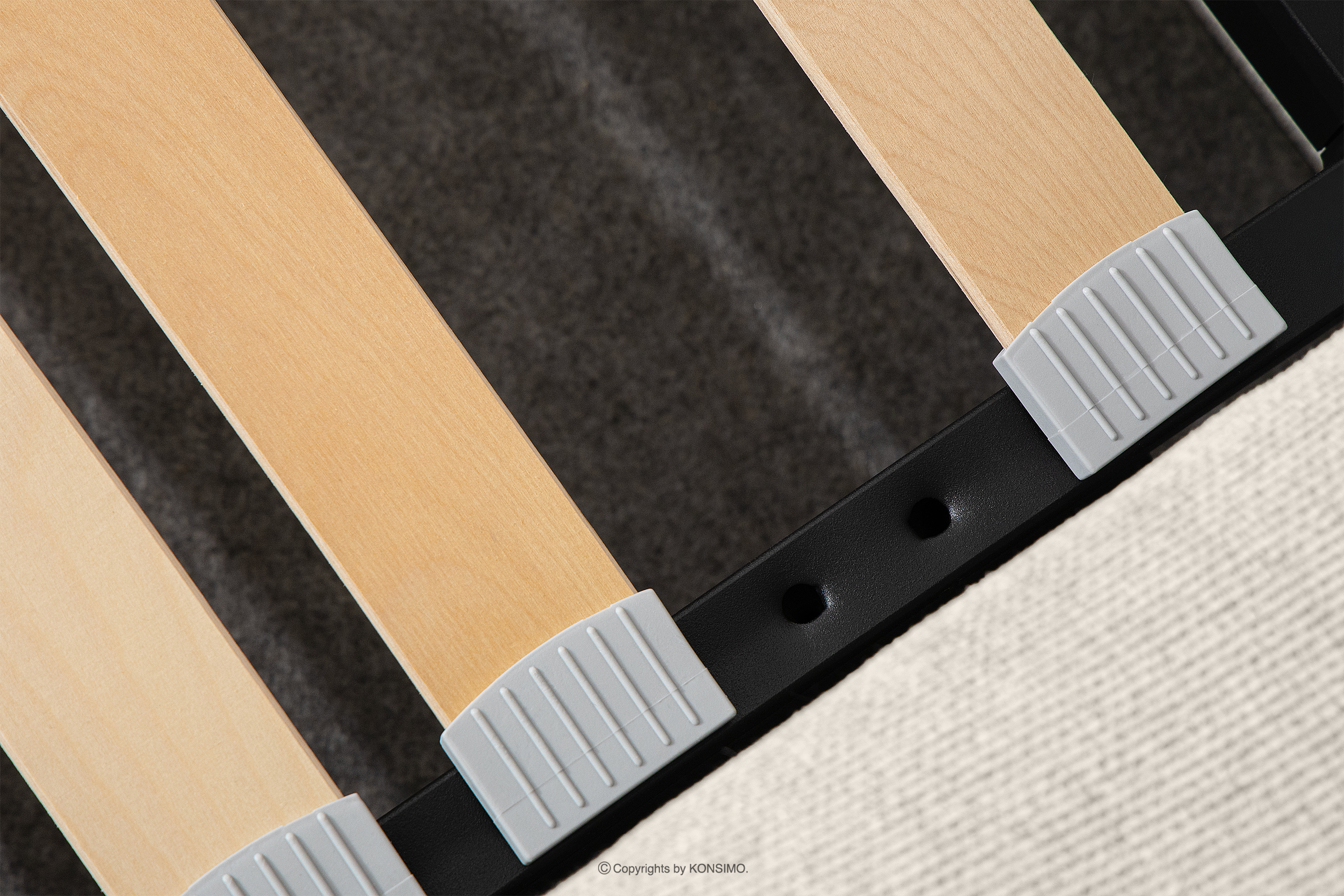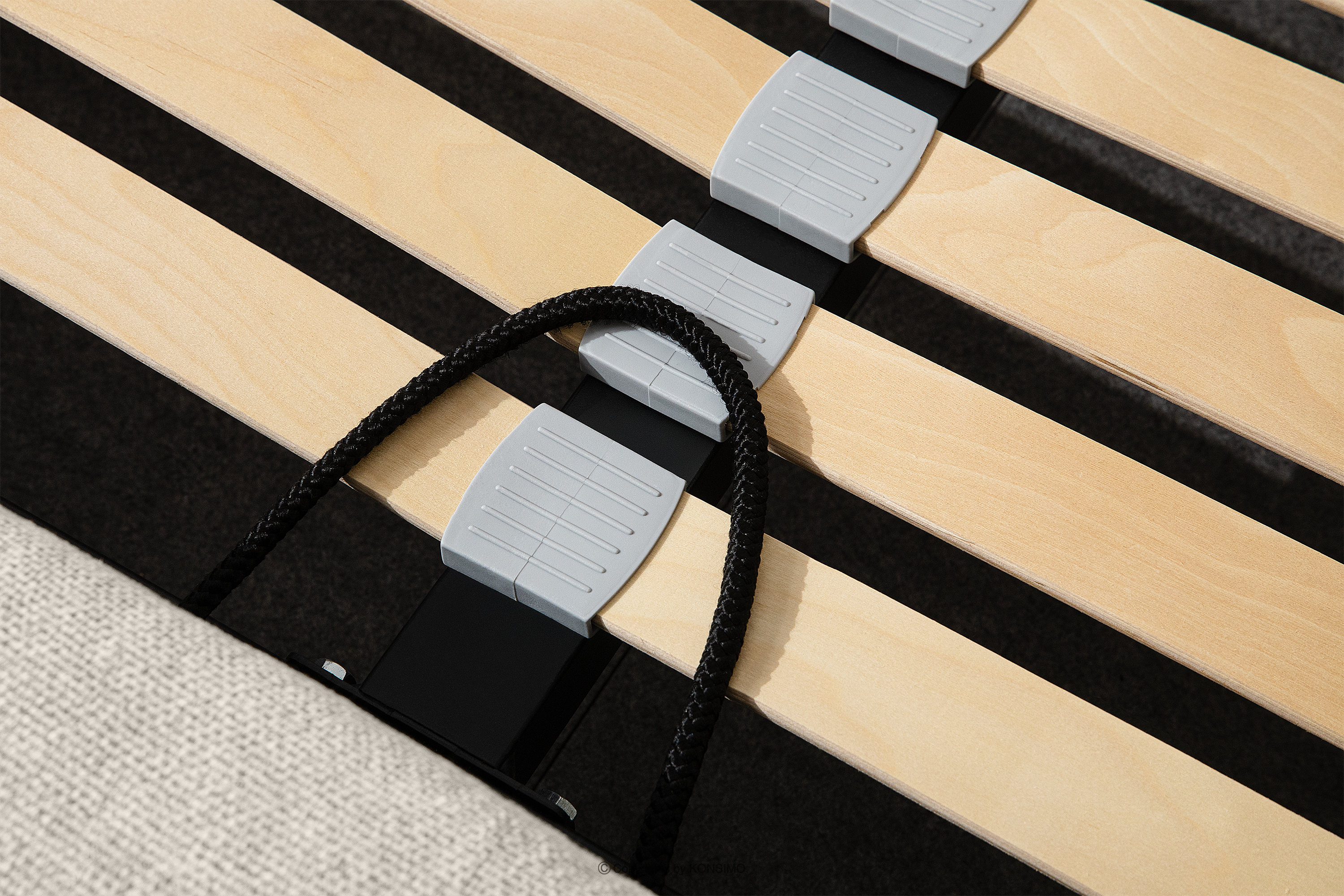 Das Polsterbett mit ecrufarbenem Kopfteil 160 cm ist eine harmonische Kombination aus der Schlichtheit des skandinavischen Stils und außergewöhnlichem Nutzungskomfort. Seine einzigartige Form, die von der Form einer Wolke inspiriert ist, zieht mit ihrem originellen Aussehen die Aufmerksamkeit auf sich und bietet gleichzeitig Komfort auf höchstem Niveau. Die Konstruktion basiert auf einem flexiblen Rahmen aus Holzlatten, dessen zusätzlicher Vorteil die Möglichkeit ist, die Härte des Bettes einzustellen - dank der herausnehmbaren Latten kann man den Grad der Weichheit den individuellen Vorlieben anpassen.