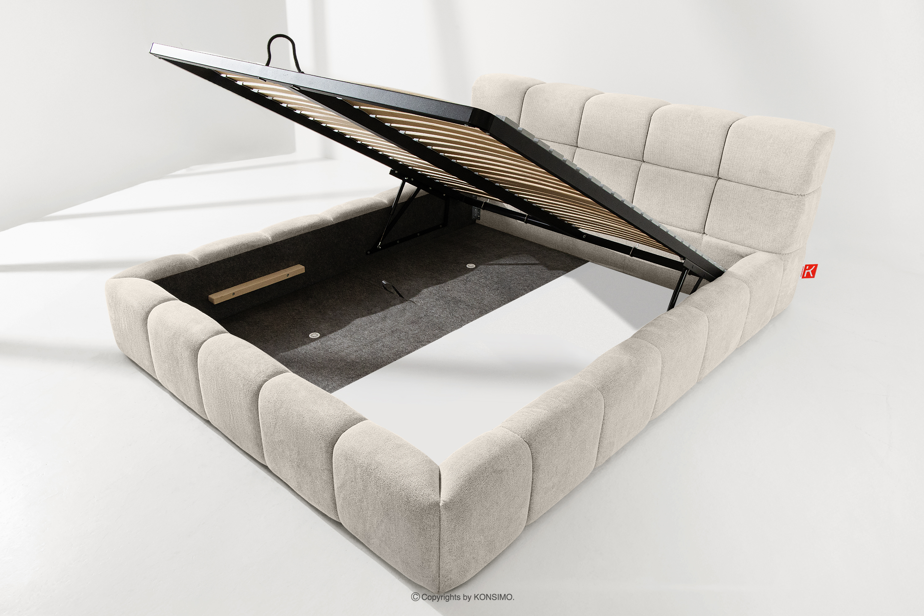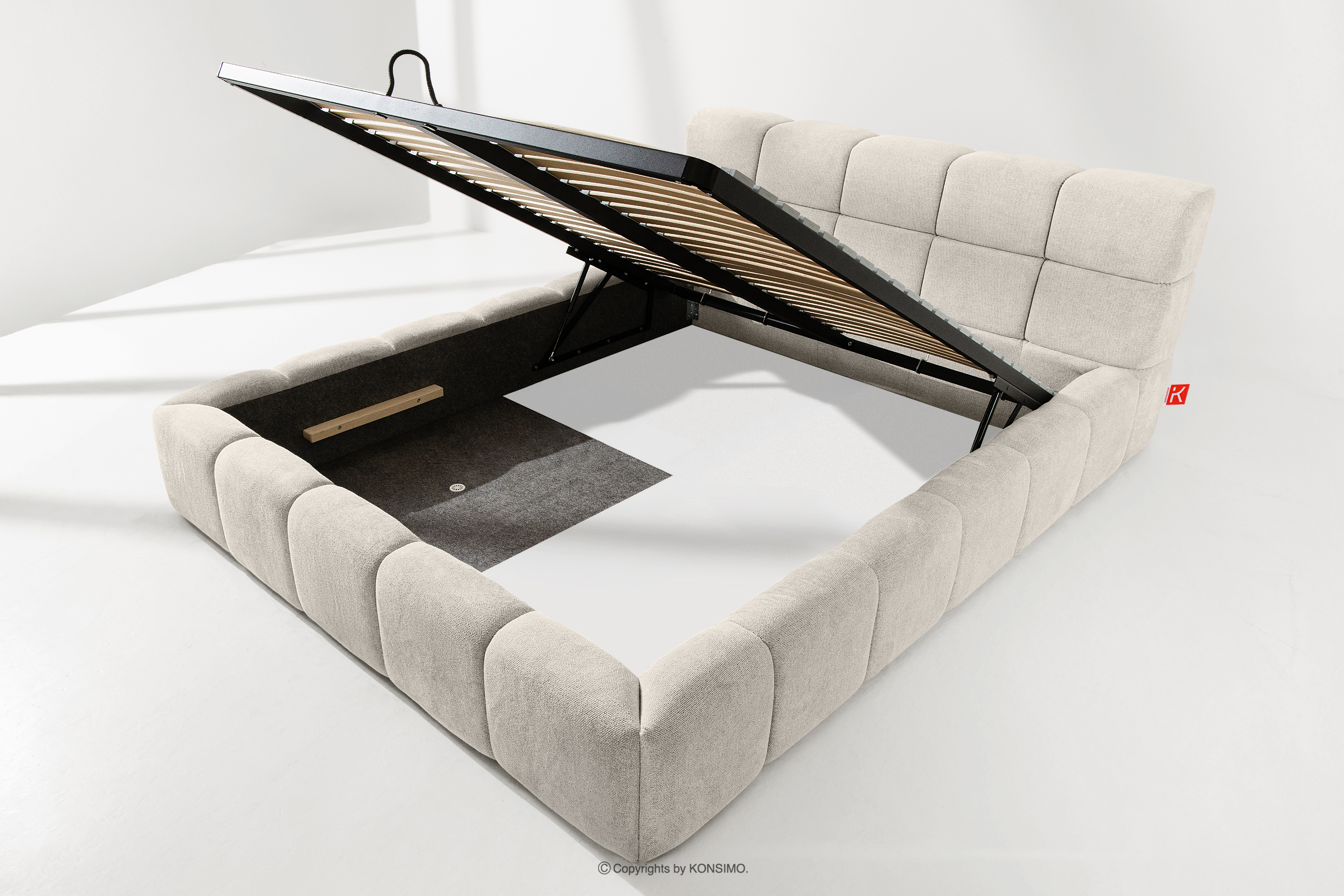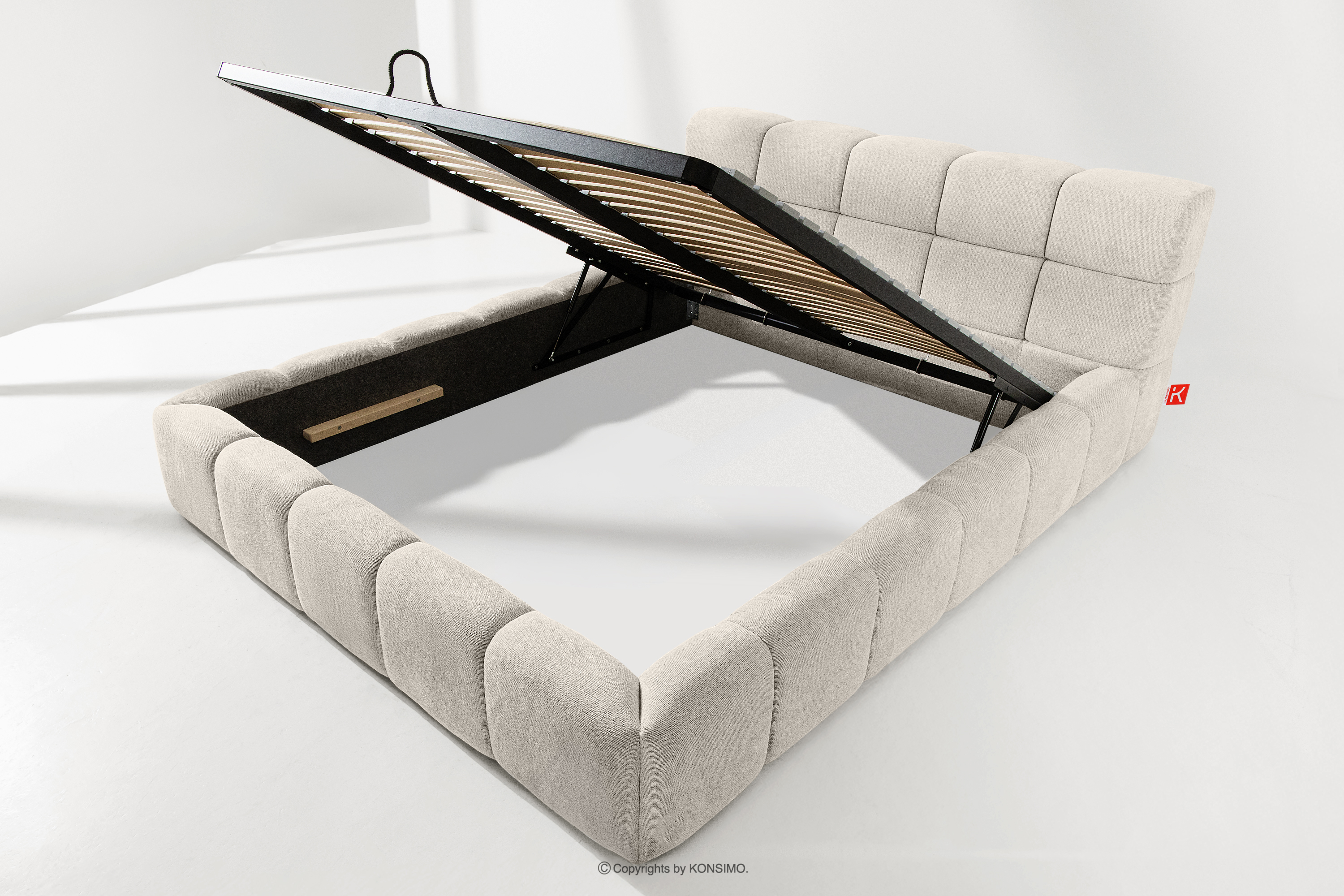 Der praktische Bettkasten, der durch Gasflaschen geöffnet wird, ist eine moderne Lösung, die den Zugriff auf die gelagerten Gegenstände ohne großen Aufwand ermöglicht. Dank der Funktionalität dieses Mechanismus lässt sich der Behälter sanft und leicht öffnen, was den Nutzungskomfort weiter erhöht.