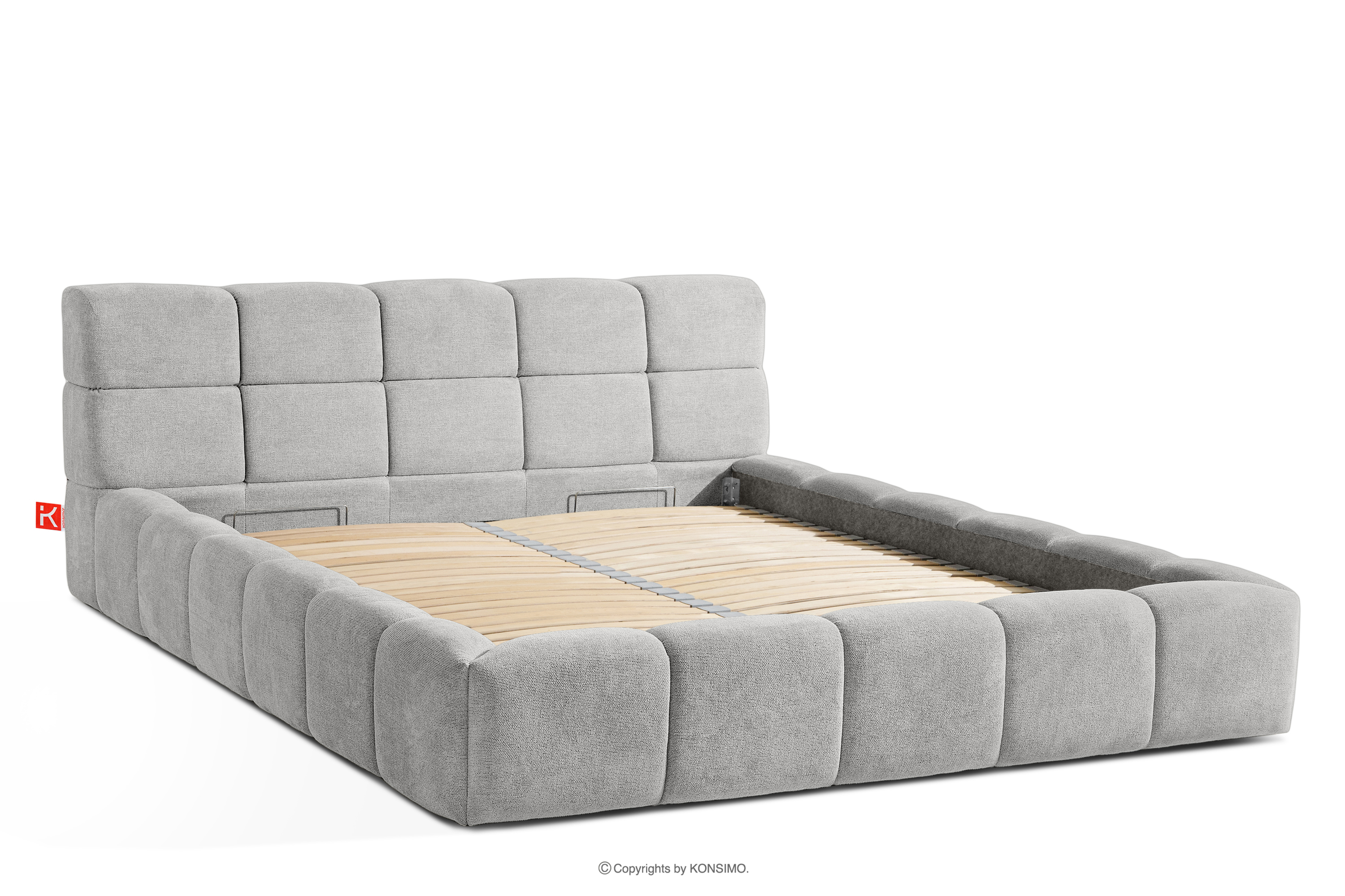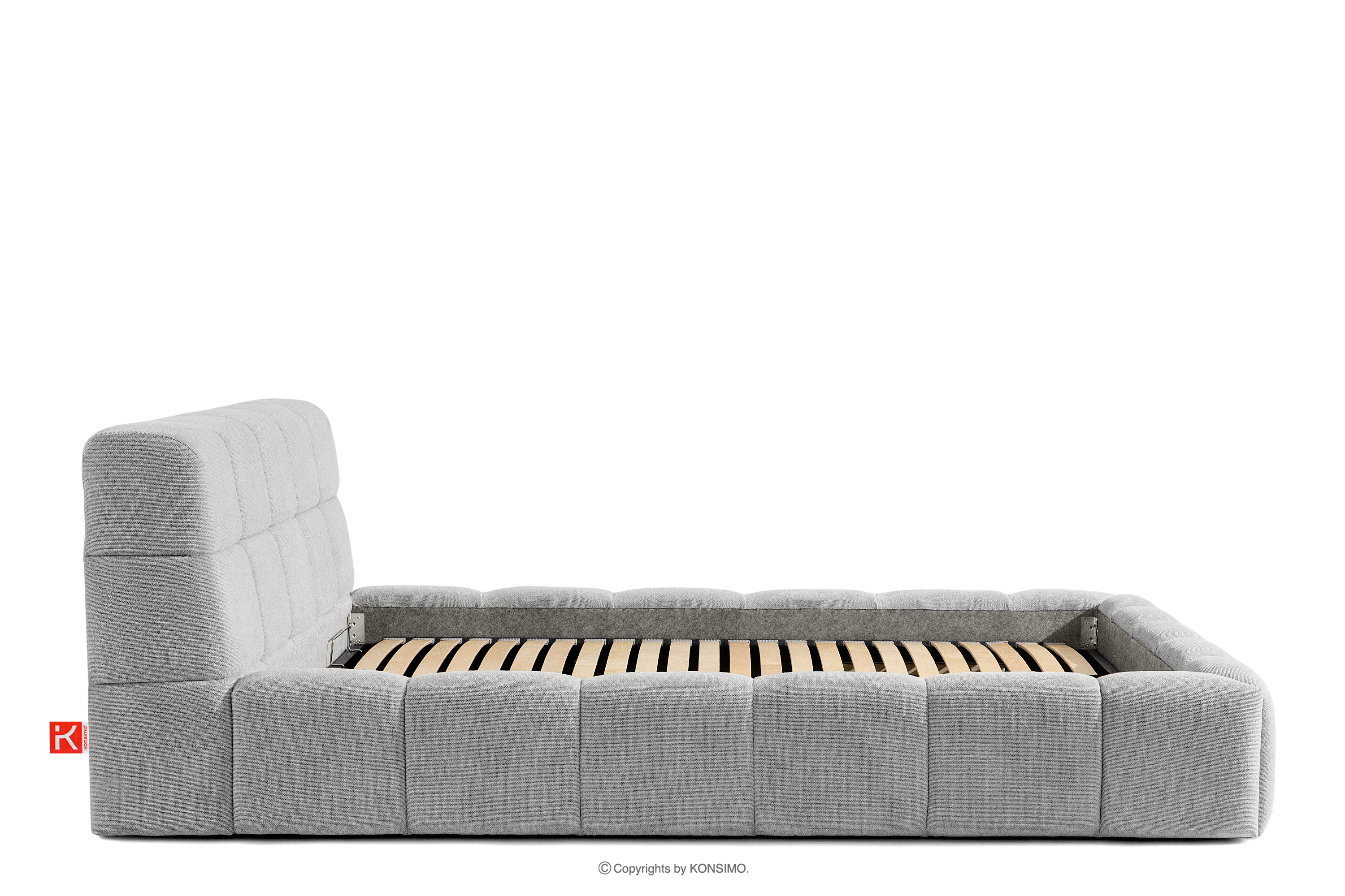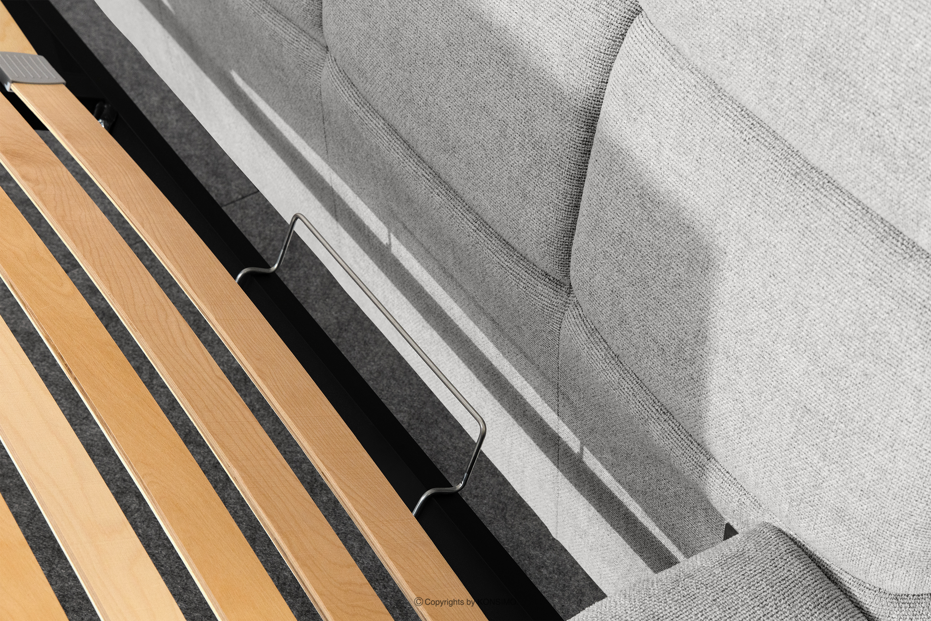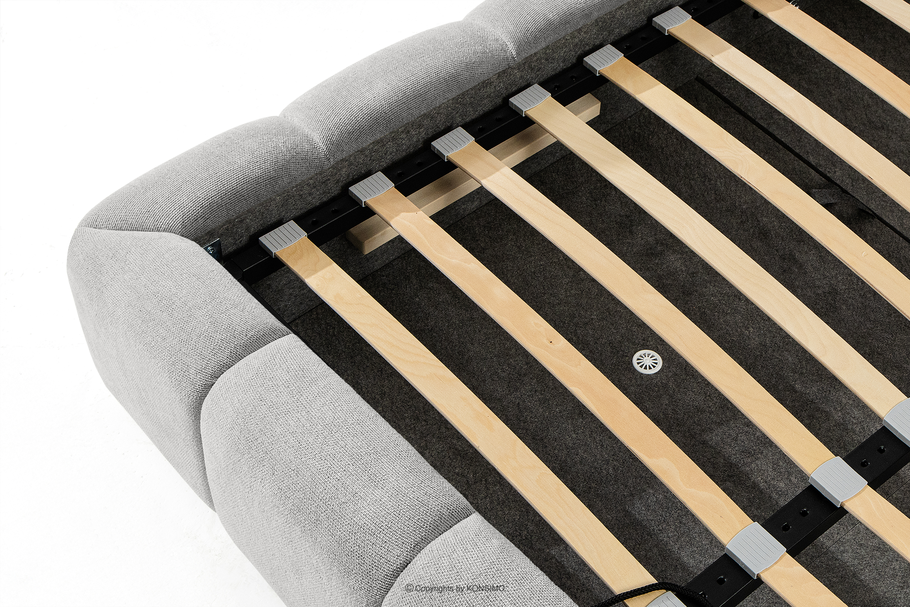 Das Bett 180 mit Kopfteil hellgrau ist eine harmonische Kombination aus der Schlichtheit des skandinavischen Stils und außergewöhnlichem Nutzungskomfort. Seine einzigartige Form, die von der Form einer Wolke inspiriert ist, zieht mit ihrem originellen Design die Aufmerksamkeit auf sich und bietet gleichzeitig Komfort auf höchstem Niveau. Die Konstruktion basiert auf einem flexiblen Rahmen aus Holzlatten, dessen zusätzlicher Vorteil die Möglichkeit ist, die Härte des Bettes einzustellen - dank der herausnehmbaren Latten kann man den Grad der Weichheit den individuellen Vorlieben anpassen.