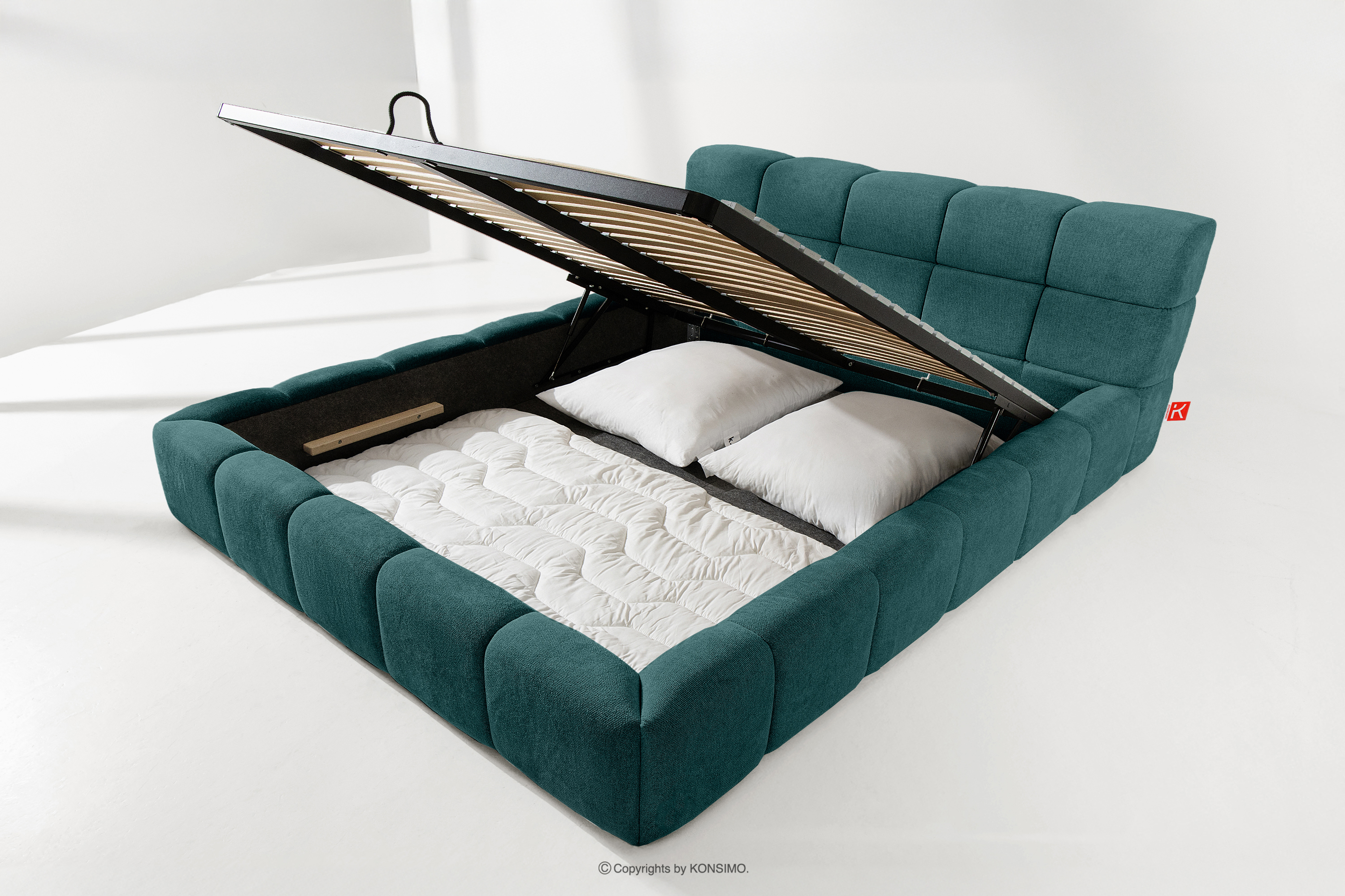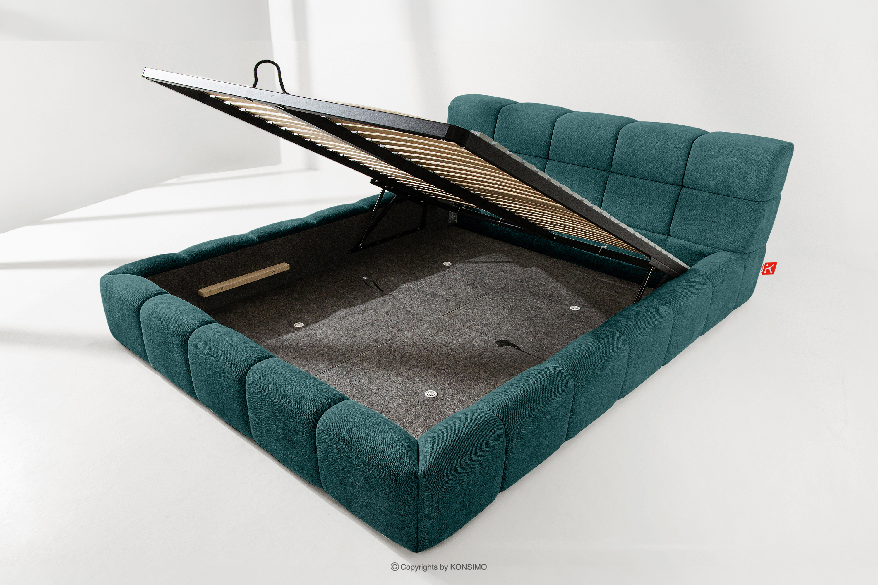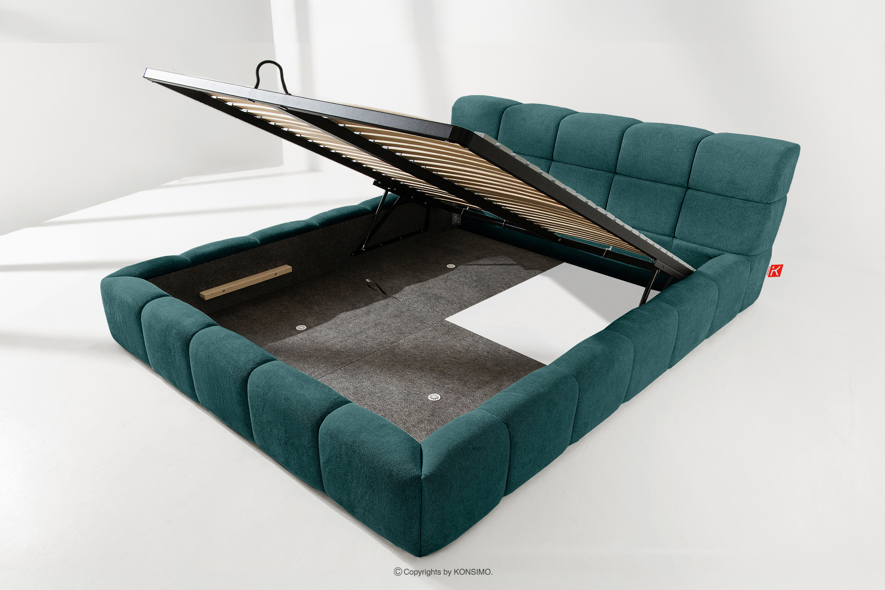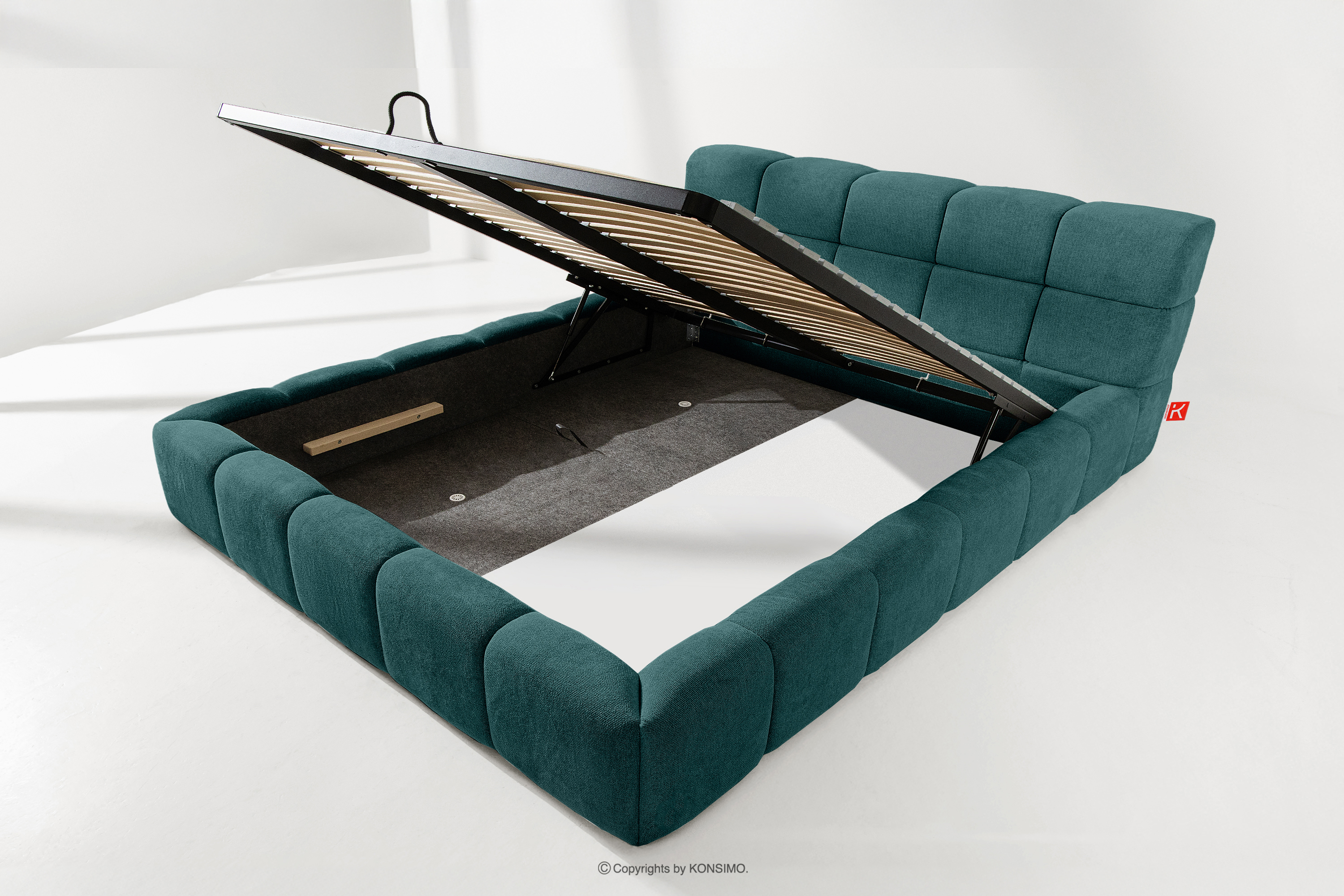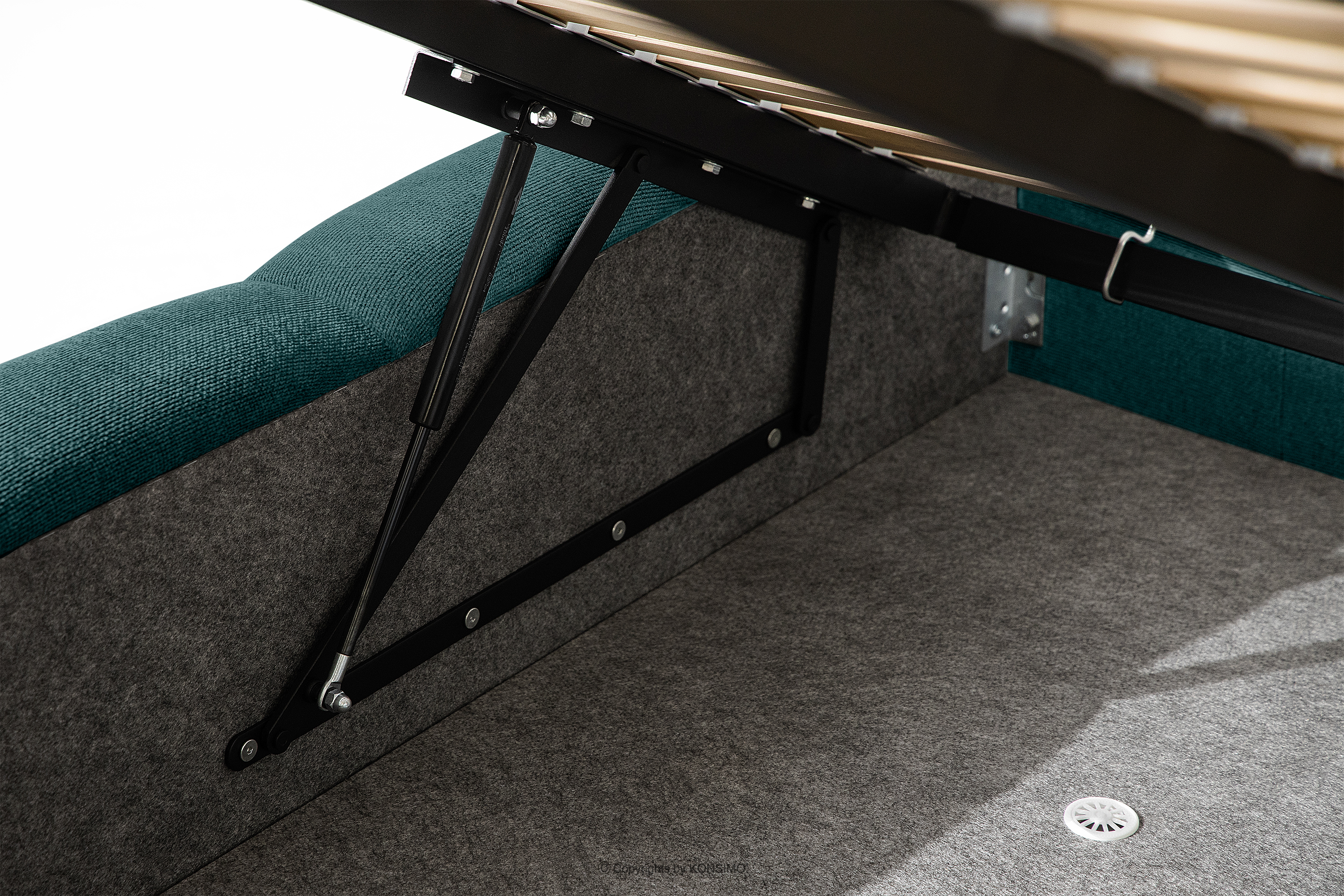 Der praktische Bettkasten, der durch Gasflaschen geöffnet wird, ist eine moderne Lösung, die den Zugang zu den gelagerten Gegenständen ohne großen Aufwand ermöglicht. Dank der Funktionalität dieses Mechanismus lässt sich der Behälter sanft und leicht öffnen, was den Benutzungskomfort weiter erhöht.