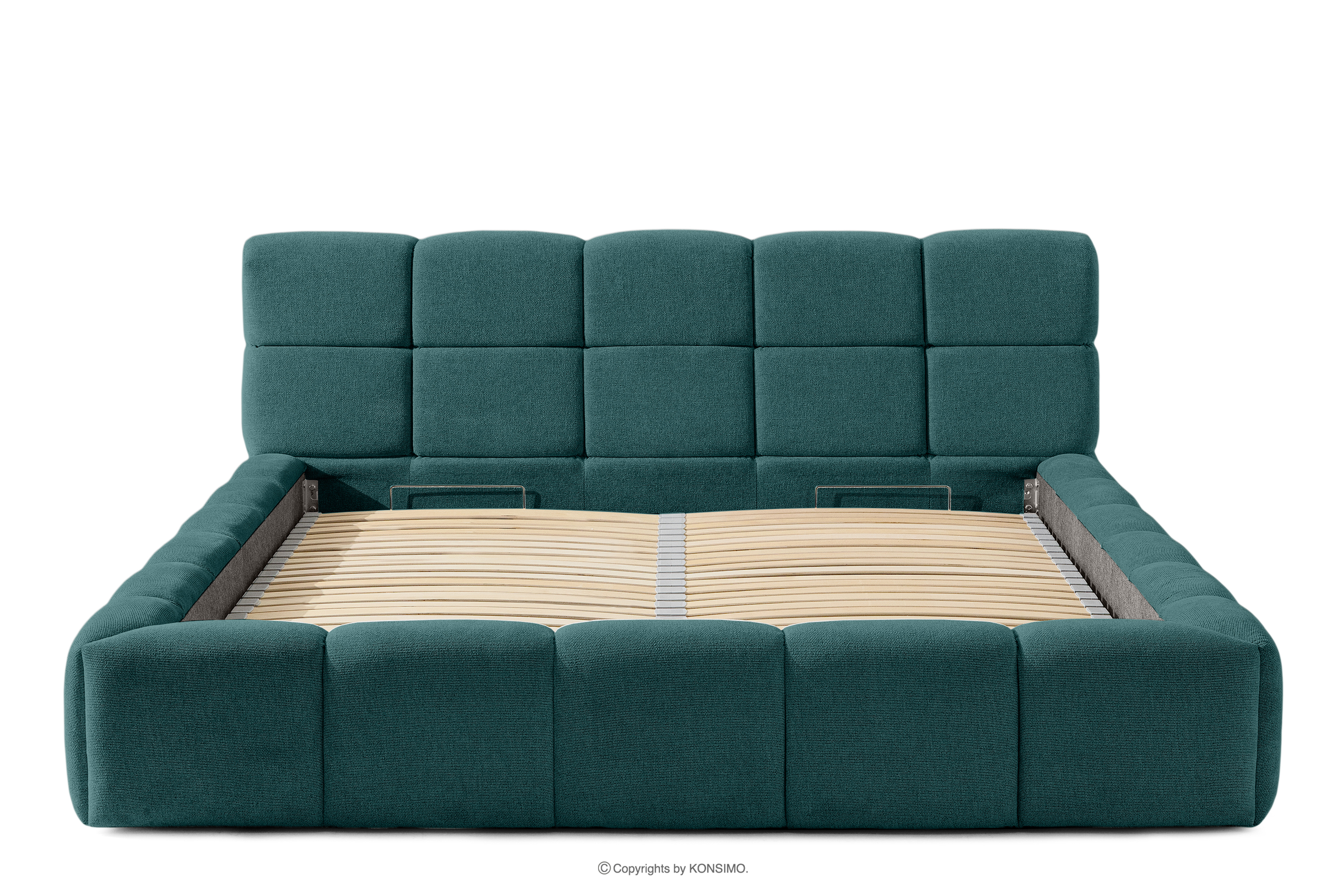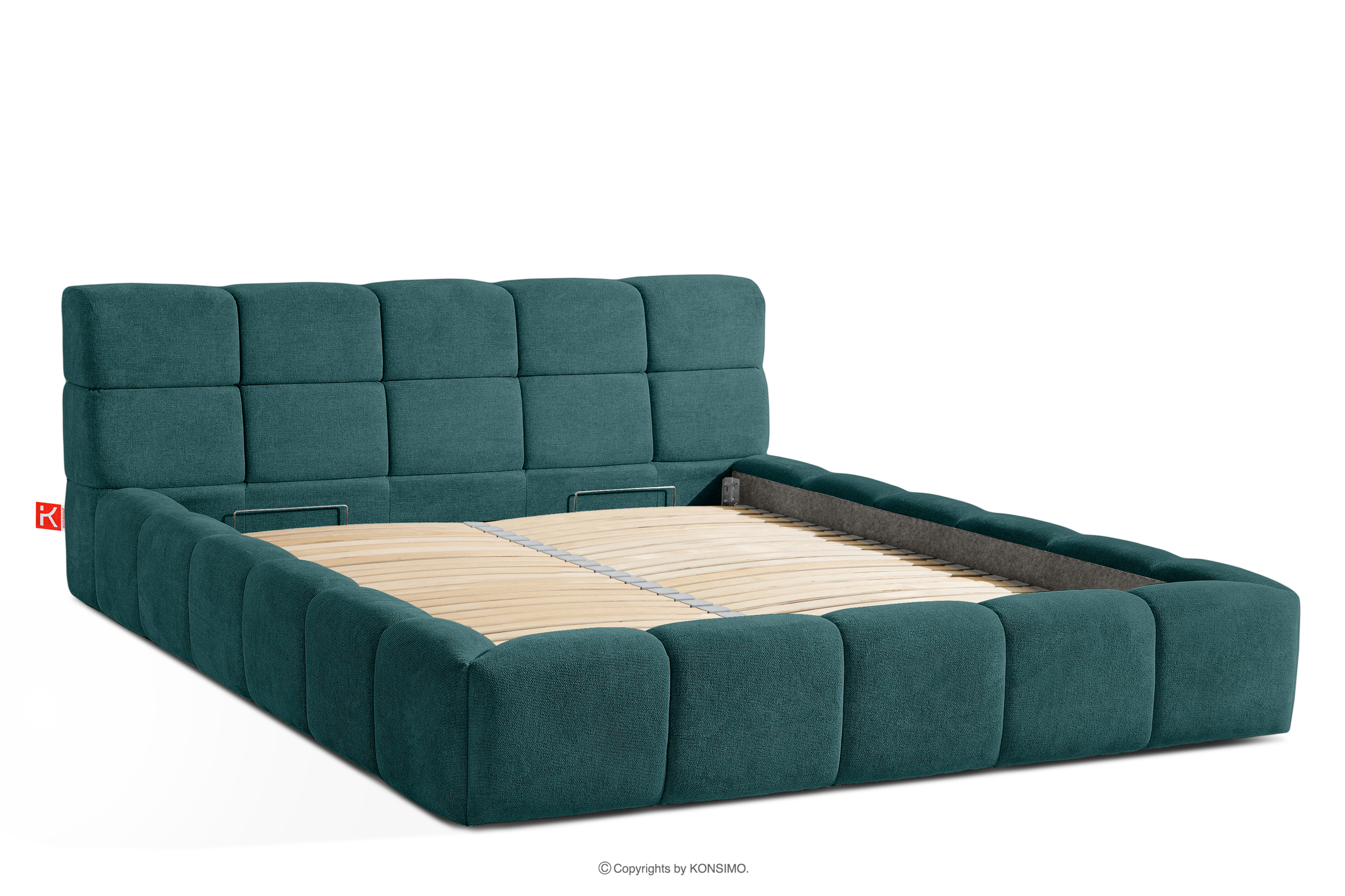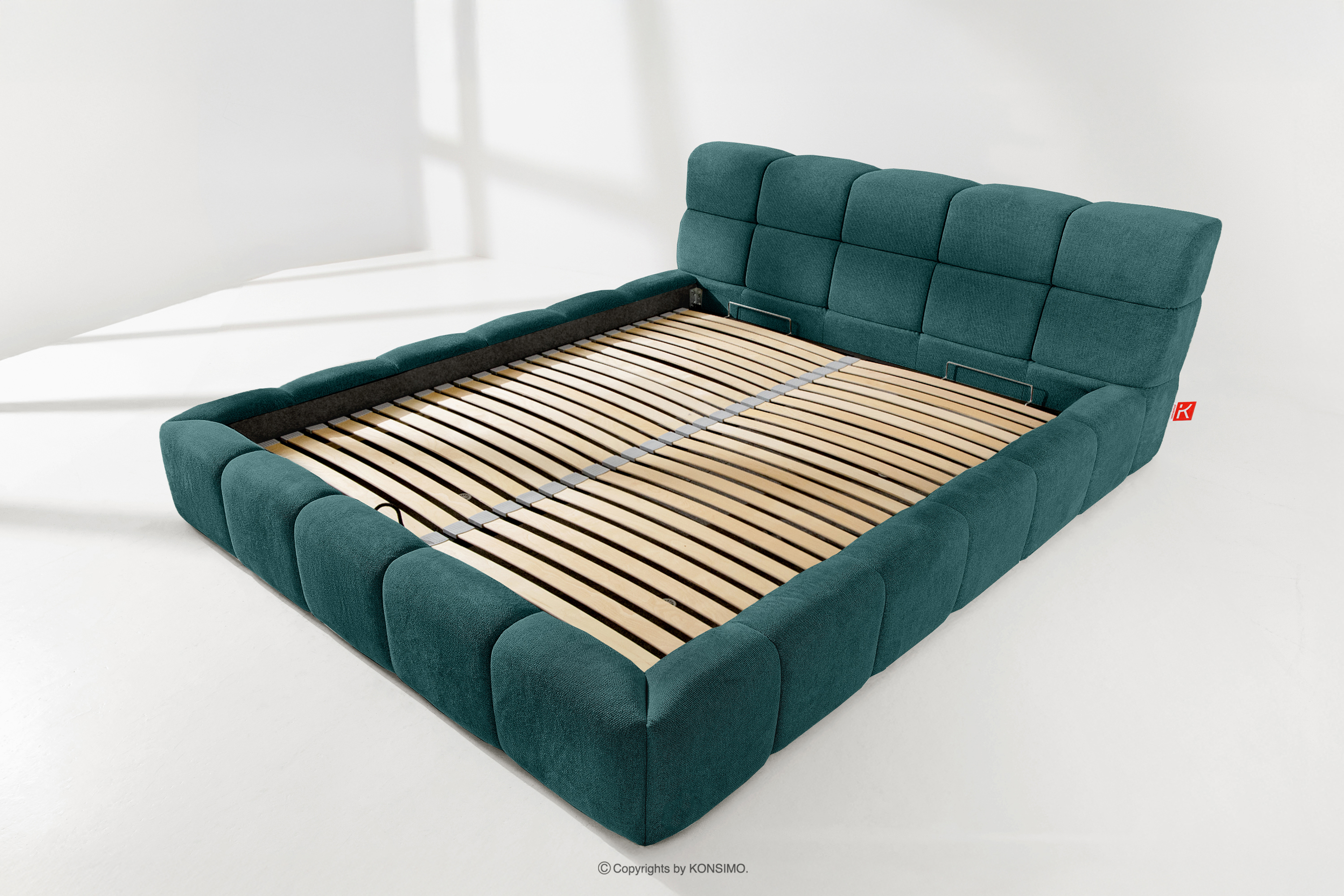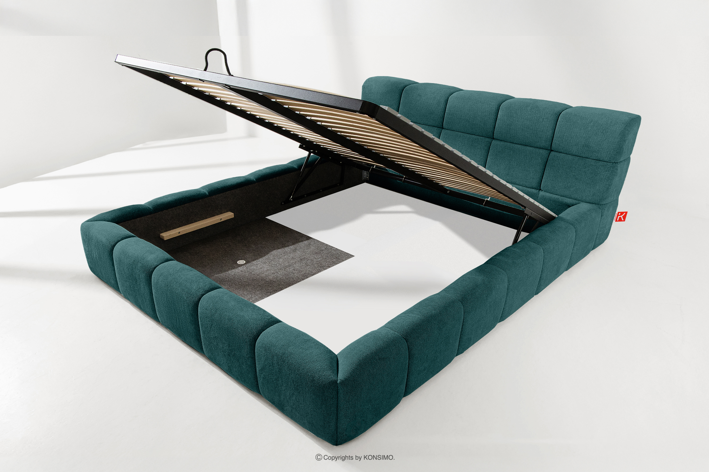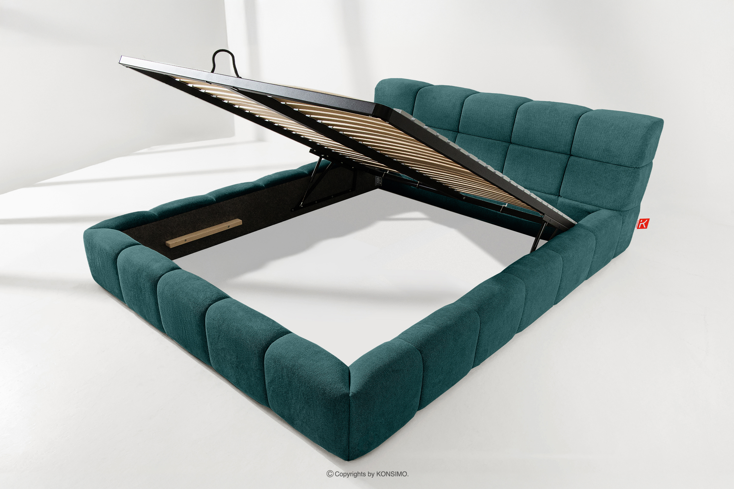 Der praktische Bettkasten, der durch Gasflaschen geöffnet wird, ist eine moderne Lösung, die den Zugang zu den gelagerten Gegenständen ohne großen Aufwand ermöglicht. Dank der Funktionalität dieses Mechanismus lässt sich der Behälter sanft und leicht öffnen, was den Benutzungskomfort weiter erhöht.