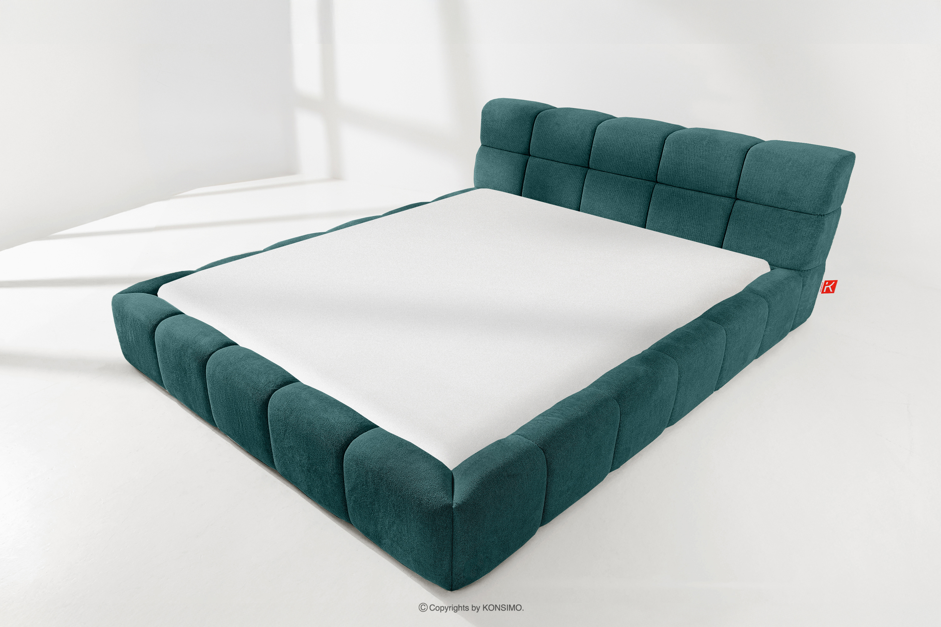 Ein großes Bett mit ausreichend Platz! Die blaue Farbe sieht elegant aus und die Qualität ist beeindruckend. Ich empfehle es jedem, der ein neues Bett braucht.