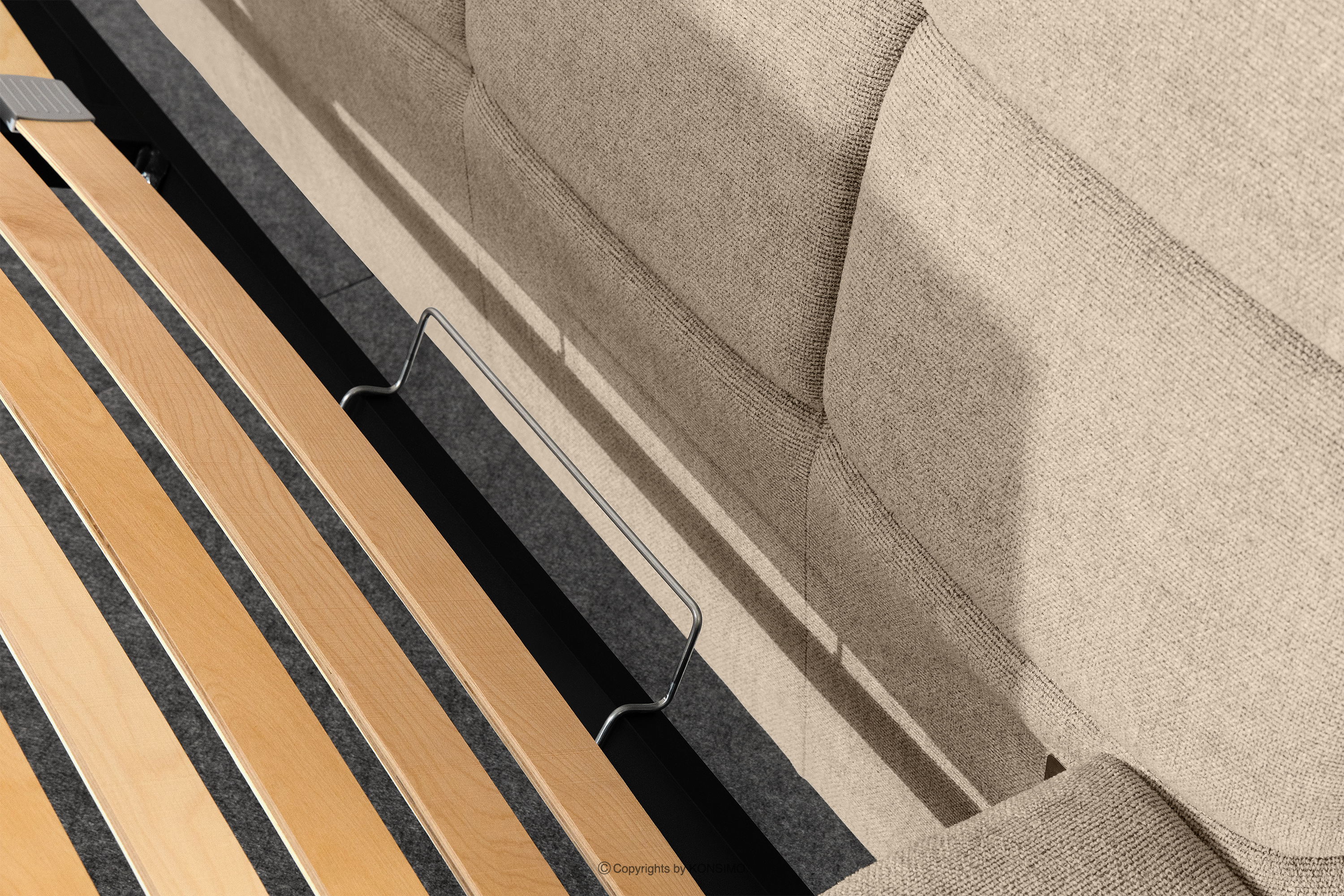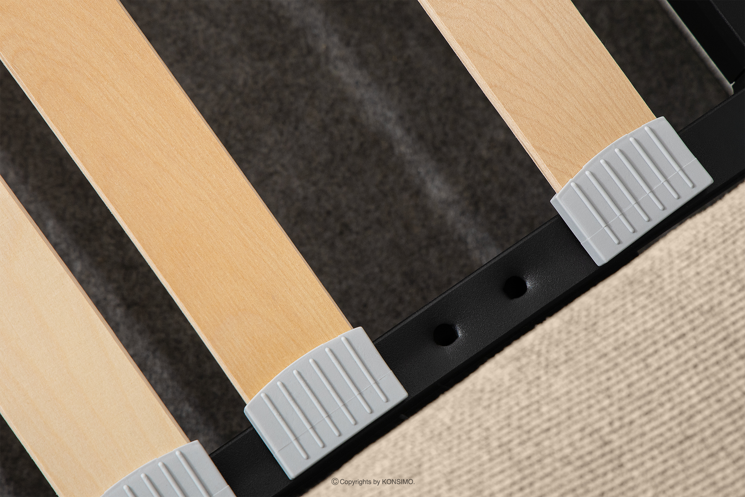 Das Polsterbett mit Kopfteil beige 180 cm ist eine harmonische Kombination aus der Schlichtheit des skandinavischen Stils und außergewöhnlichem Nutzungskomfort. Seine einzigartige Form, die von der Form einer Wolke inspiriert ist, zieht mit ihrem originellen Design die Aufmerksamkeit auf sich und bietet gleichzeitig Komfort auf höchstem Niveau. Die Konstruktion basiert auf einem flexiblen Rahmen aus Holzlatten, dessen zusätzlicher Vorteil die Möglichkeit ist, die Härte des Bettes einzustellen - dank der herausnehmbaren Latten kann man den Grad der Weichheit den individuellen Vorlieben anpassen.