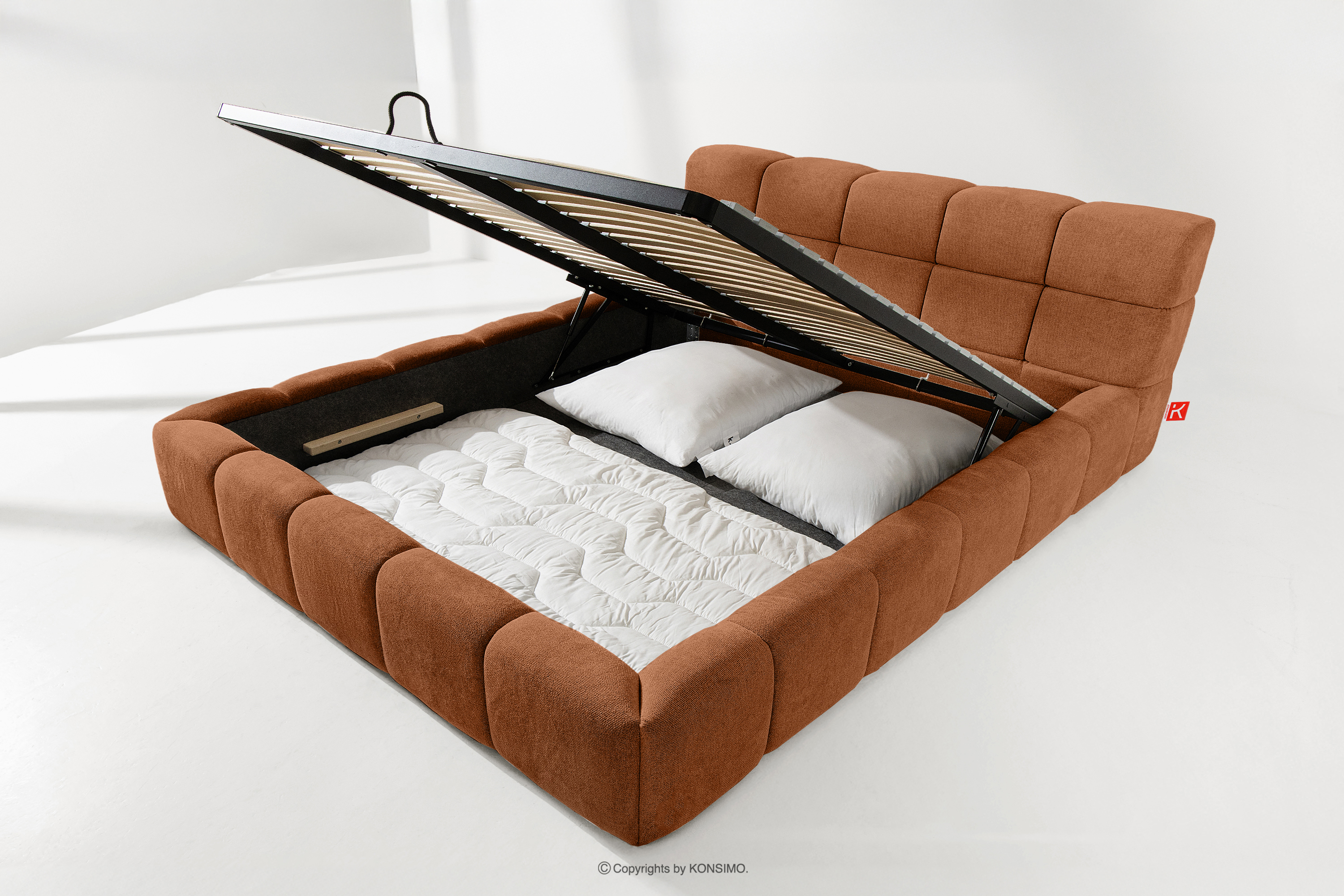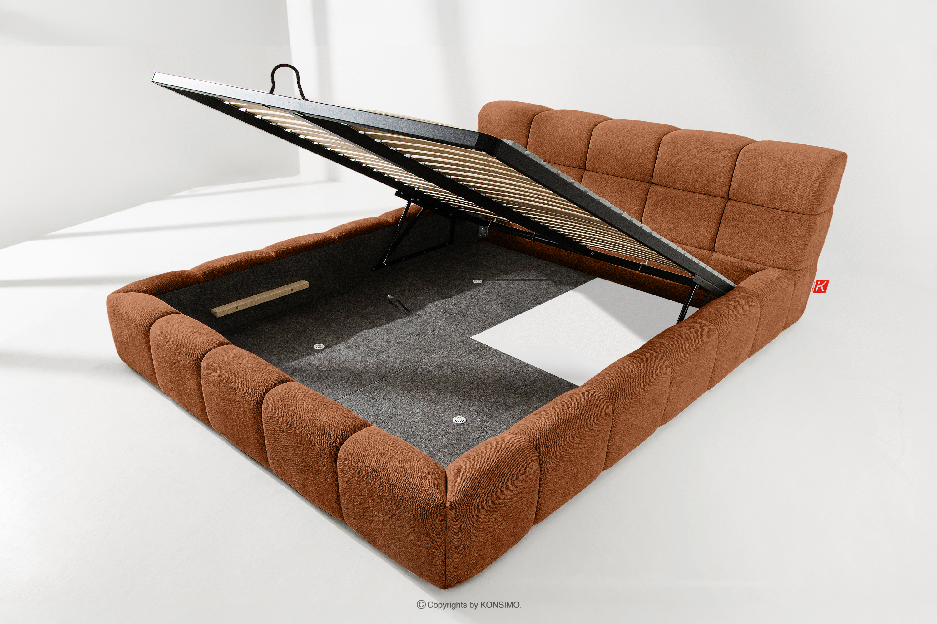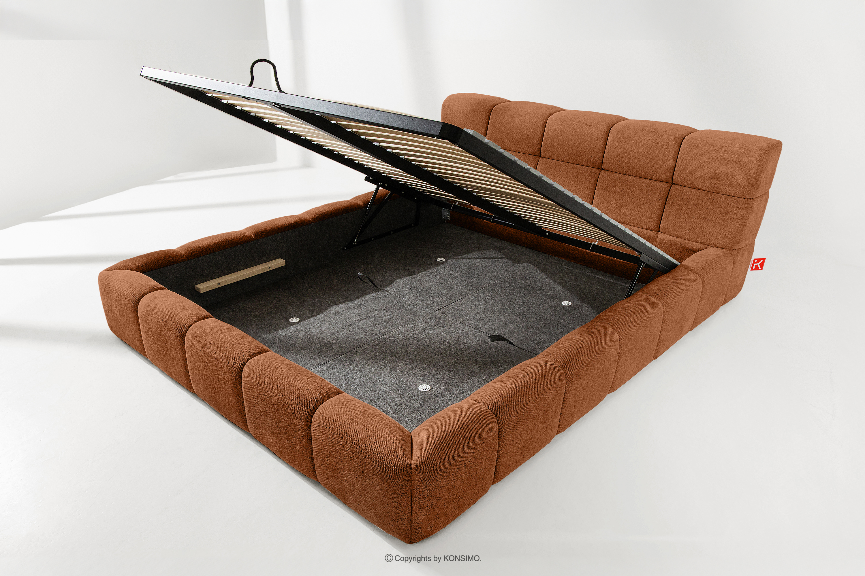 Der praktische Bettkasten, der durch Gasflaschen geöffnet wird, ist eine moderne Lösung, die den Zugang zu den gelagerten Gegenständen ohne großen Aufwand ermöglicht. Dank der Funktionalität dieses Mechanismus lässt sich der Behälter sanft und leicht öffnen, was den Nutzungskomfort weiter erhöht.