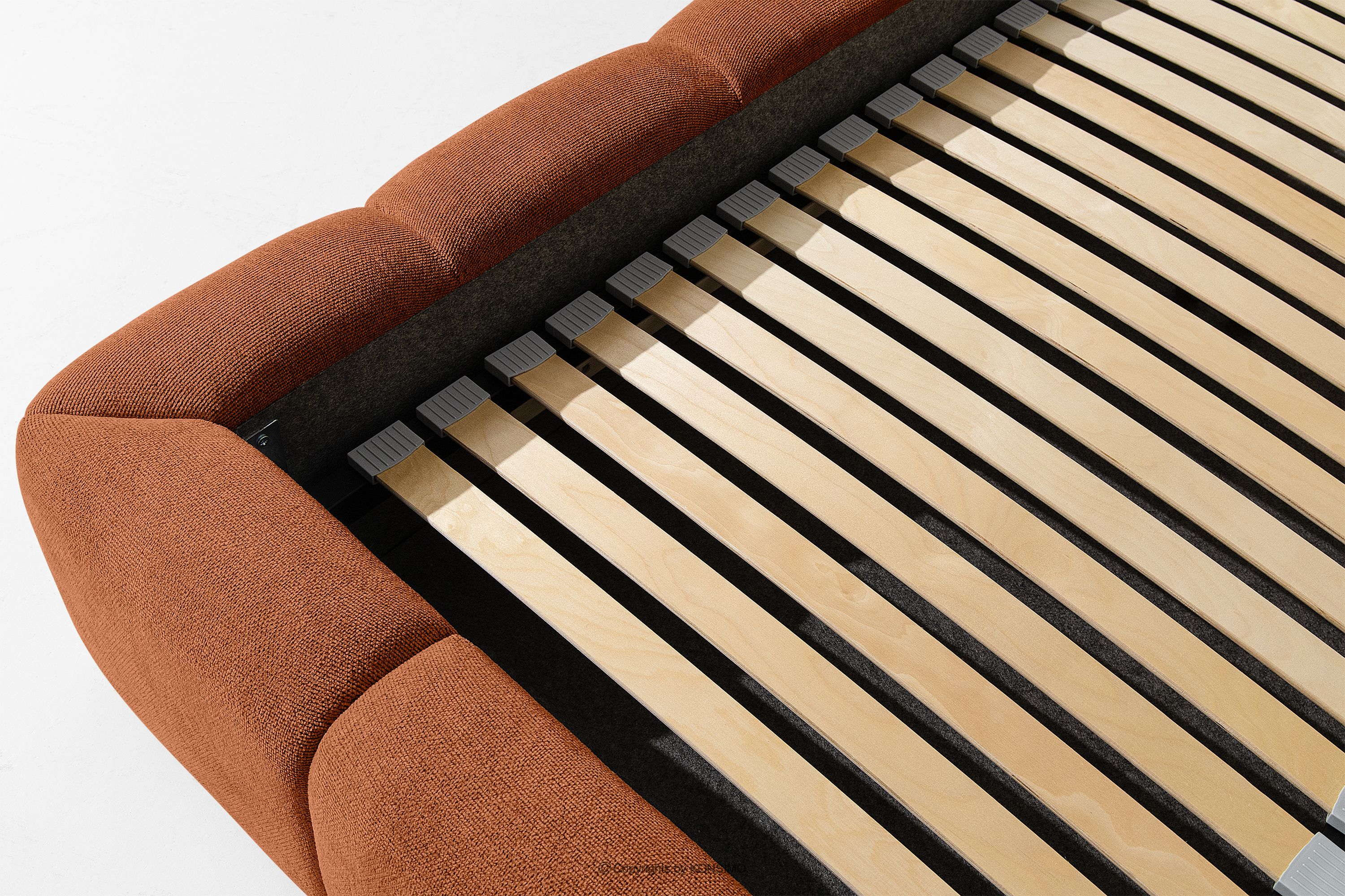 Das Polsterbett Ore 180 cm mit Kopfteil ist eine harmonische Kombination aus der Schlichtheit des skandinavischen Stils und außergewöhnlichem Nutzungskomfort. Seine einzigartige Form, die von der Form einer Wolke inspiriert ist, zieht mit ihrem originellen Design die Aufmerksamkeit auf sich und bietet gleichzeitig Komfort auf höchstem Niveau. Die Konstruktion basiert auf einem flexiblen Rahmen aus Holzlatten, dessen zusätzlicher Vorteil die Möglichkeit ist, die Härte des Bettes einzustellen - dank der herausnehmbaren Latten kann man den Grad der Weichheit den individuellen Vorlieben anpassen.