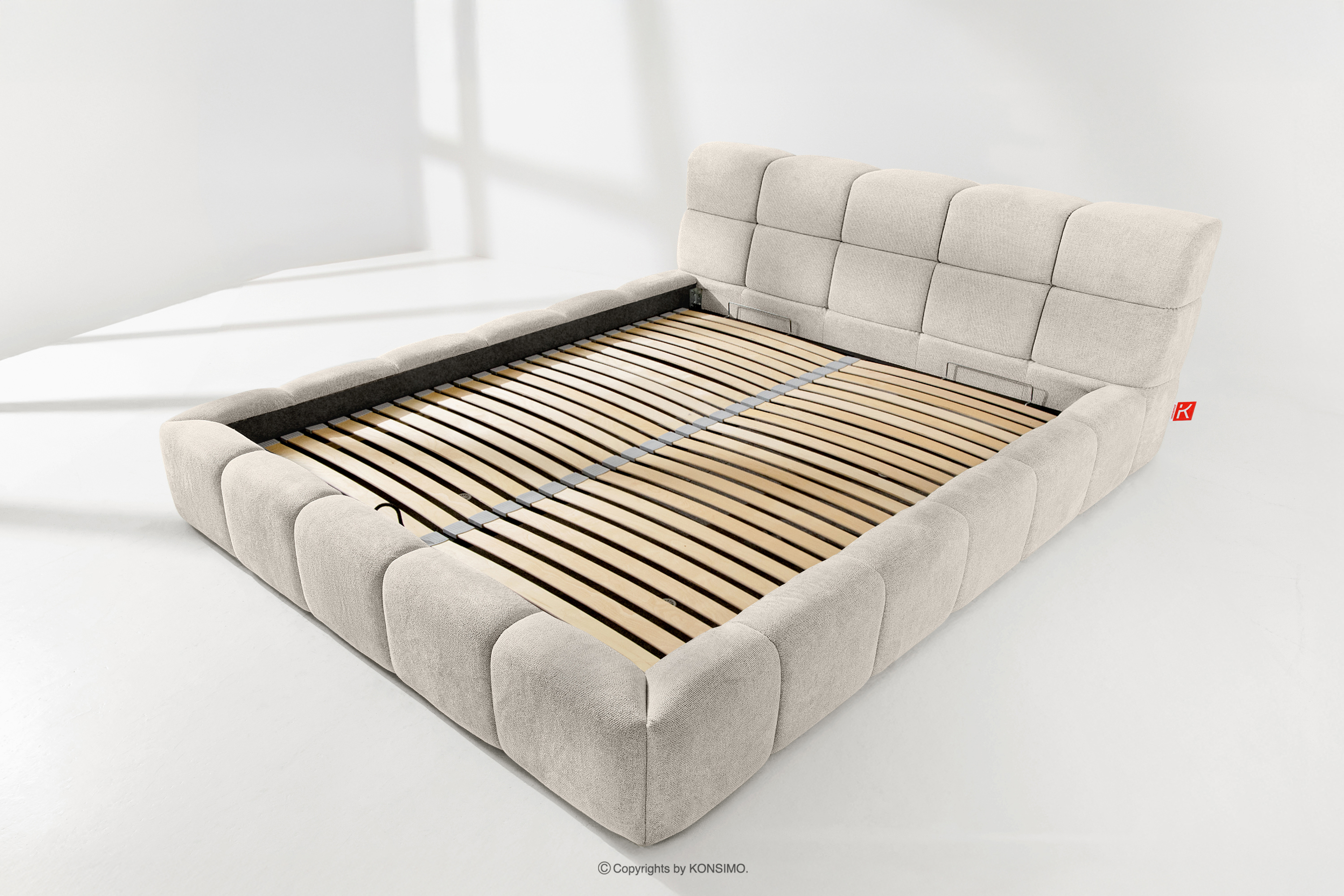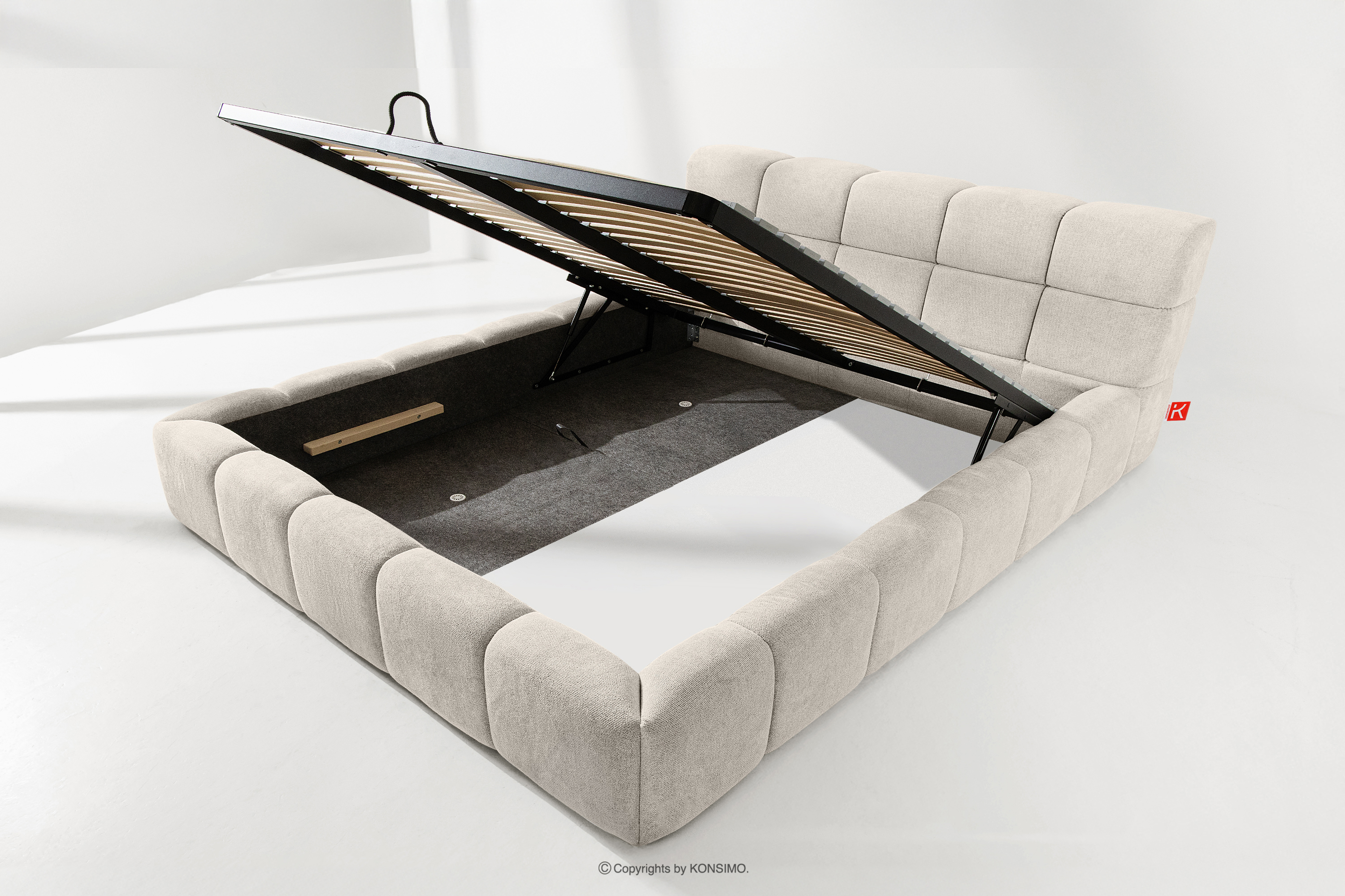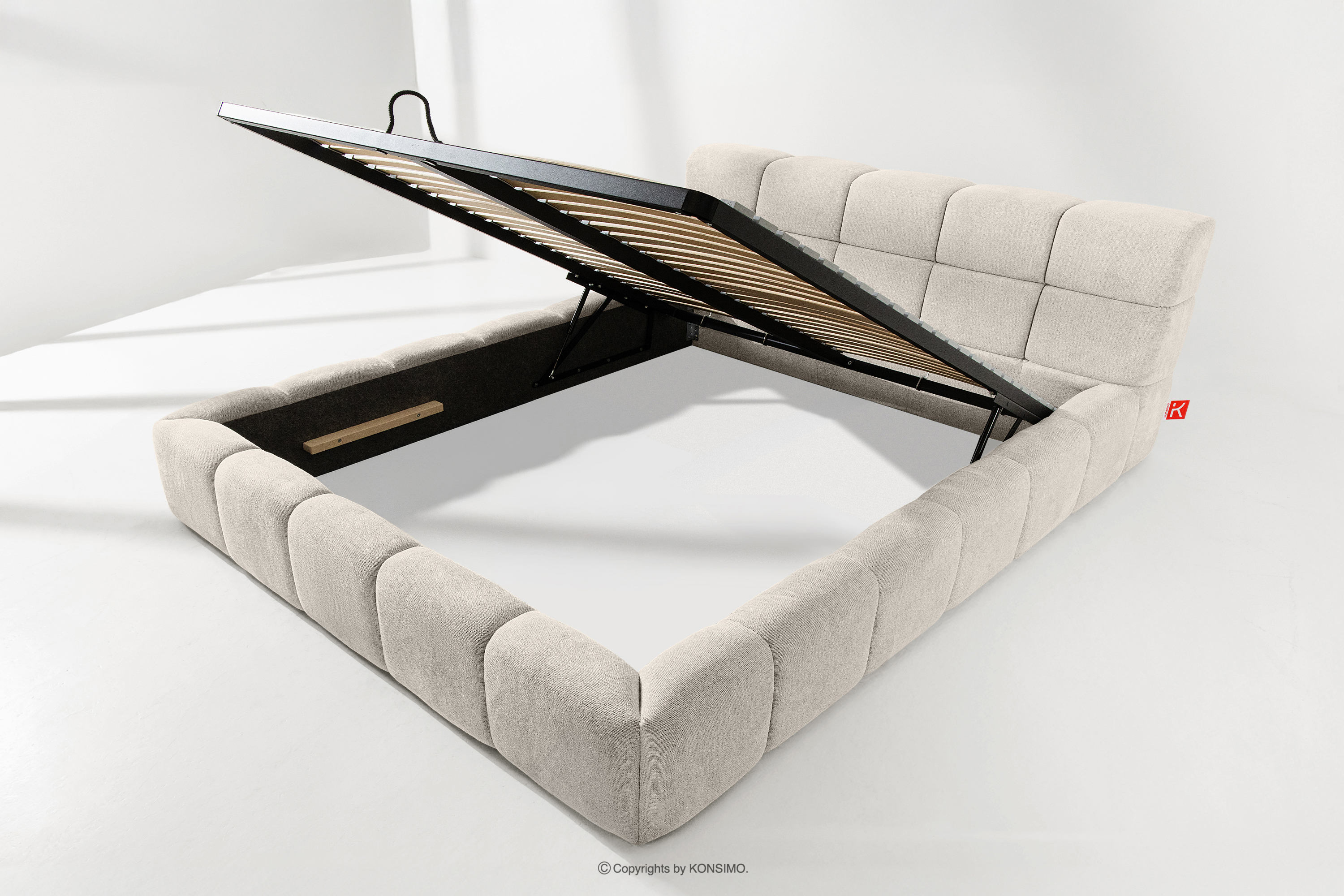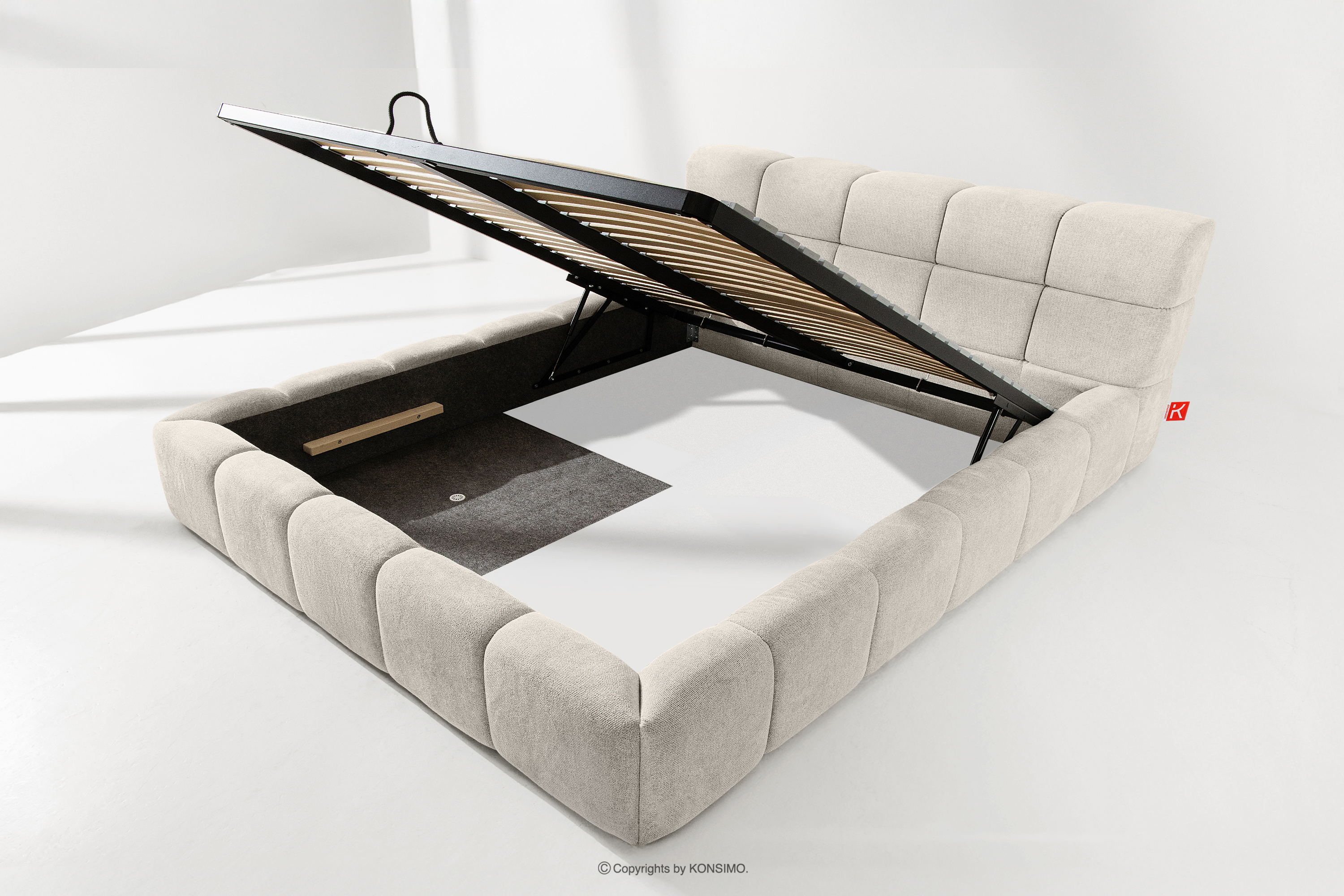 Der praktische Bettkasten, der durch Gasflaschen geöffnet wird, ist eine moderne Lösung, die den Zugriff auf die gelagerten Gegenstände ohne großen Aufwand ermöglicht. Dank der Funktionalität dieses Mechanismus lässt sich der Behälter sanft und leicht öffnen, was den Nutzungskomfort weiter erhöht.