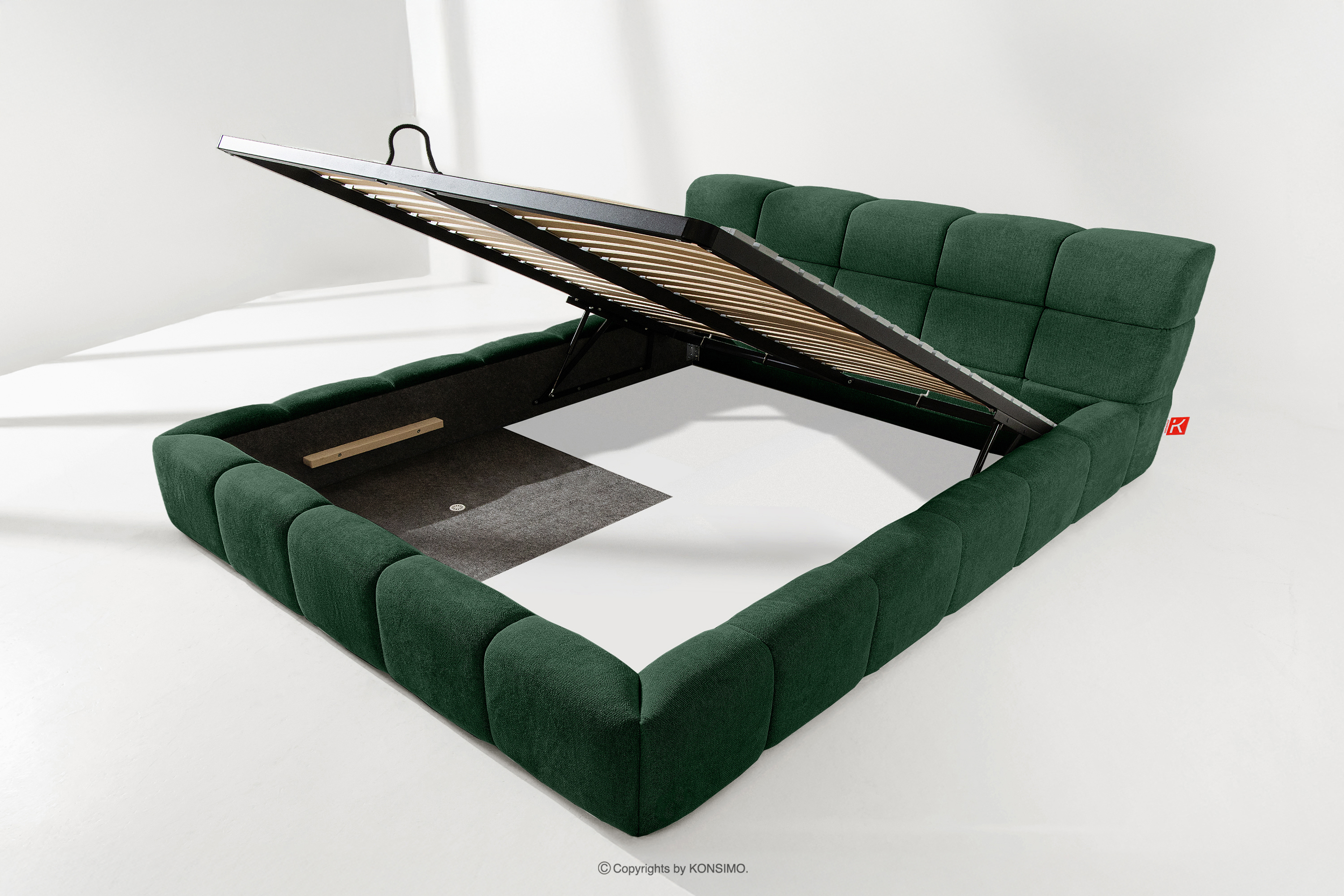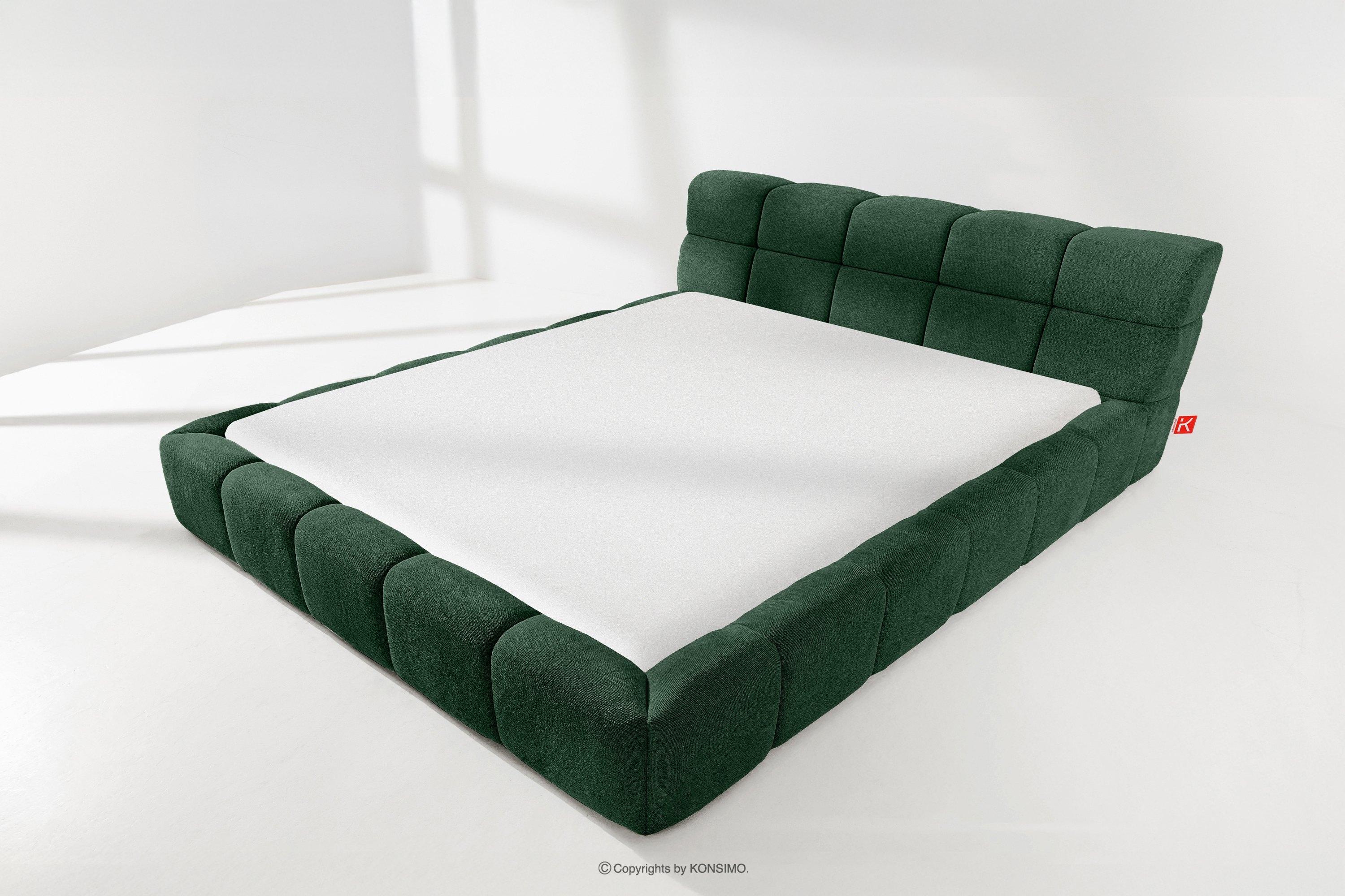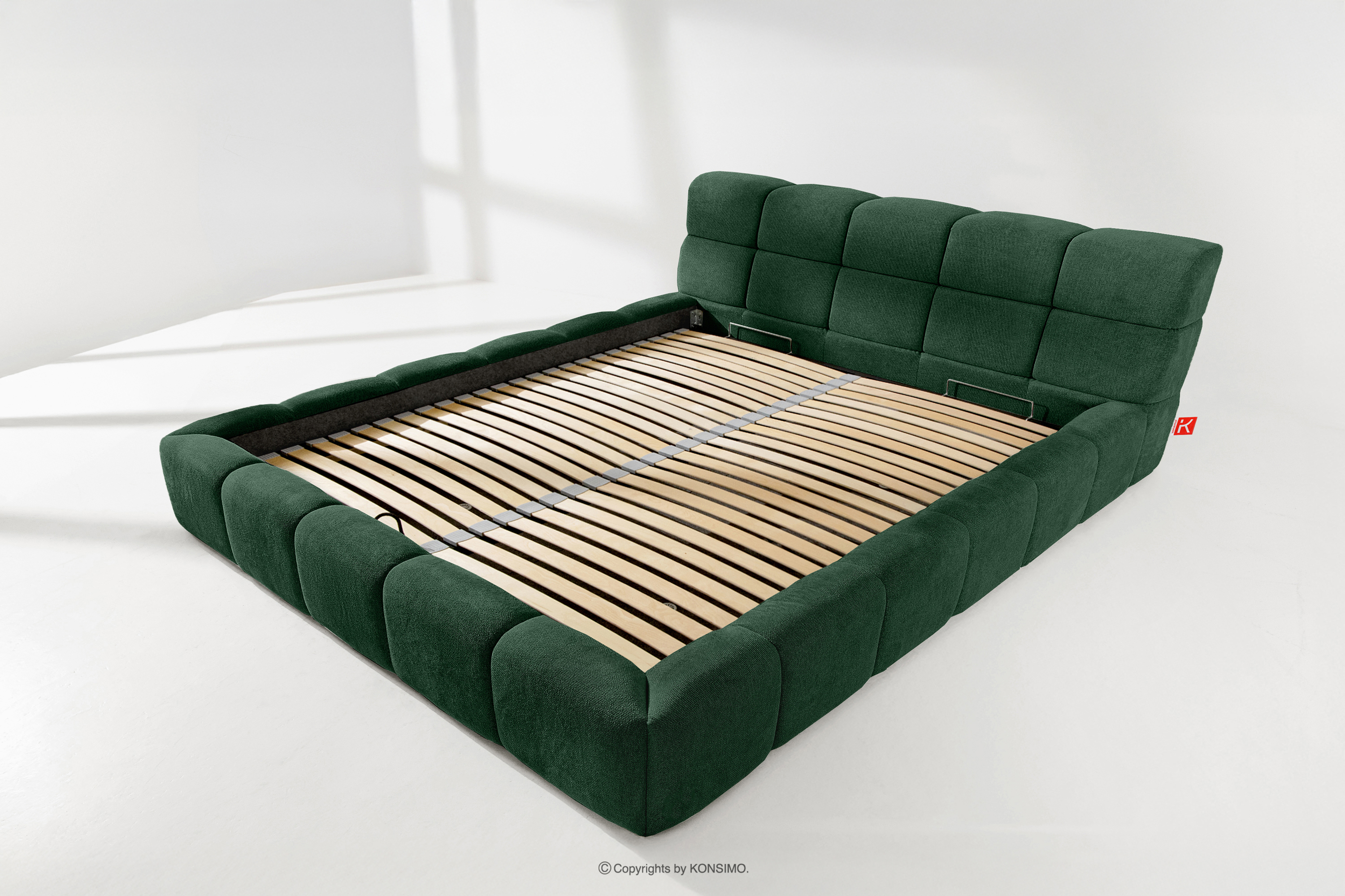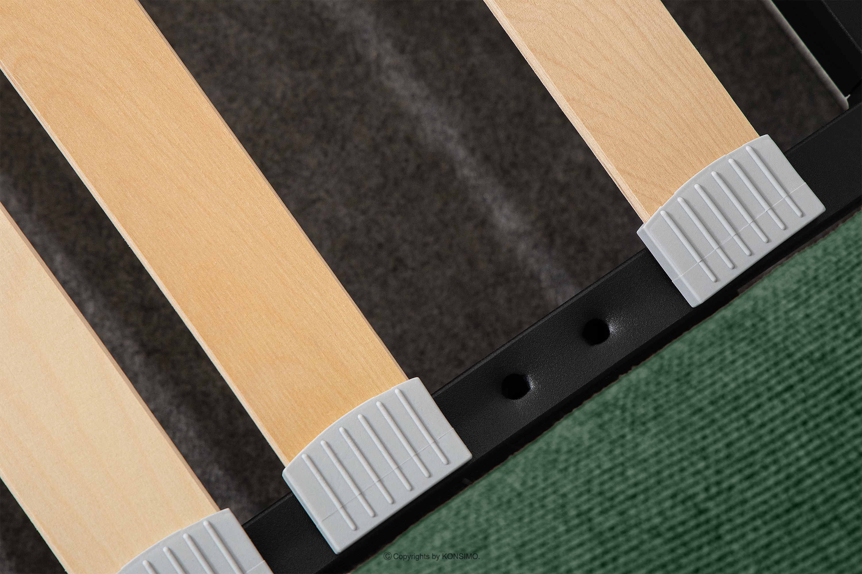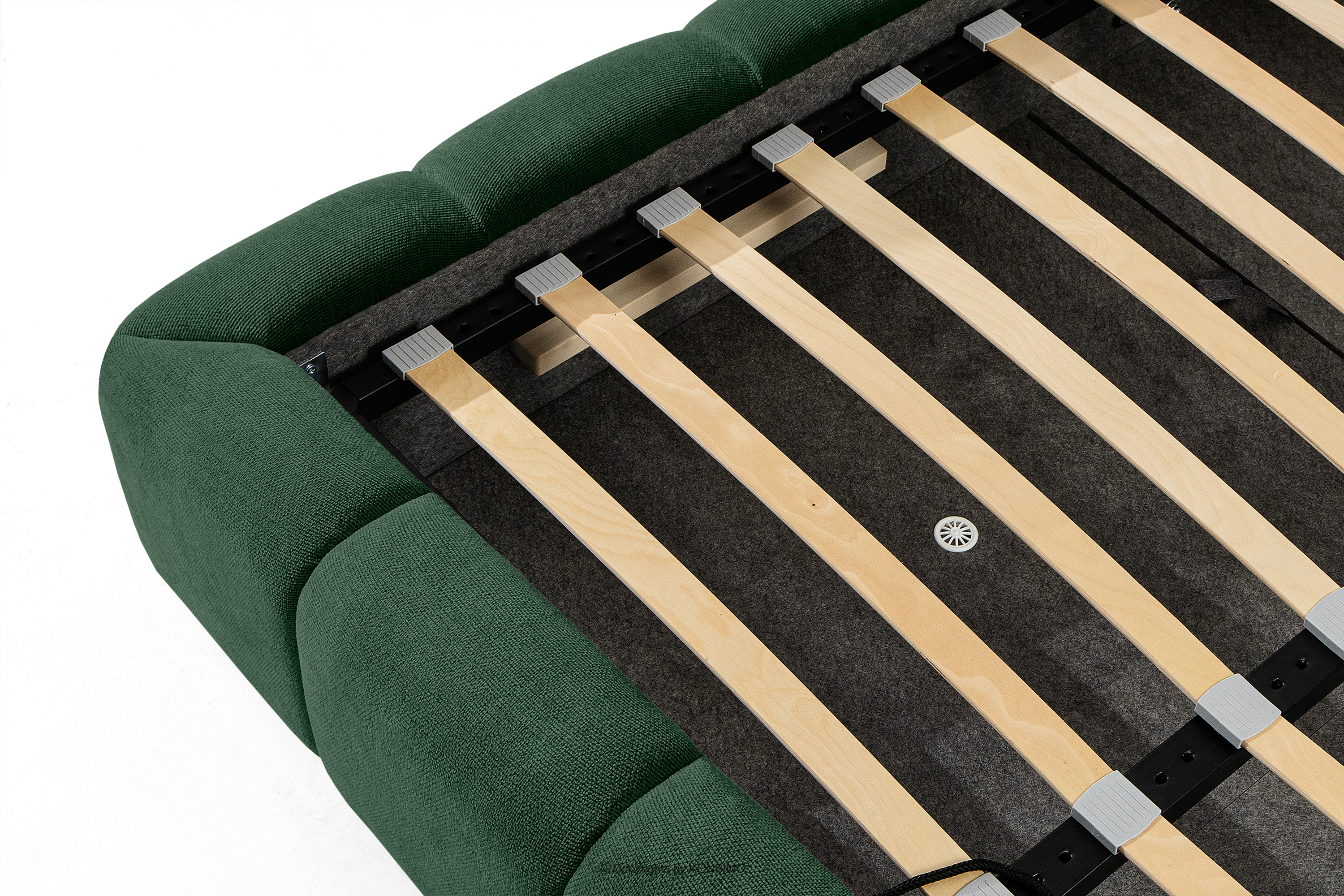 Das Bett 200 mit Kopfstütze dunkelgrün ist eine harmonische Kombination aus der Einfachheit des skandinavischen Stils und außergewöhnlichem Nutzungskomfort. Seine einzigartige Form, die von der Form einer Wolke inspiriert ist, zieht mit ihrem originellen Design die Aufmerksamkeit auf sich und bietet gleichzeitig Komfort auf höchstem Niveau. Die Konstruktion basiert auf einem flexiblen Rahmen aus Holzlatten, dessen zusätzlicher Vorteil die Möglichkeit ist, die Härte des Bettes einzustellen - dank der herausnehmbaren Latten kann man den Grad der Weichheit den individuellen Vorlieben anpassen.