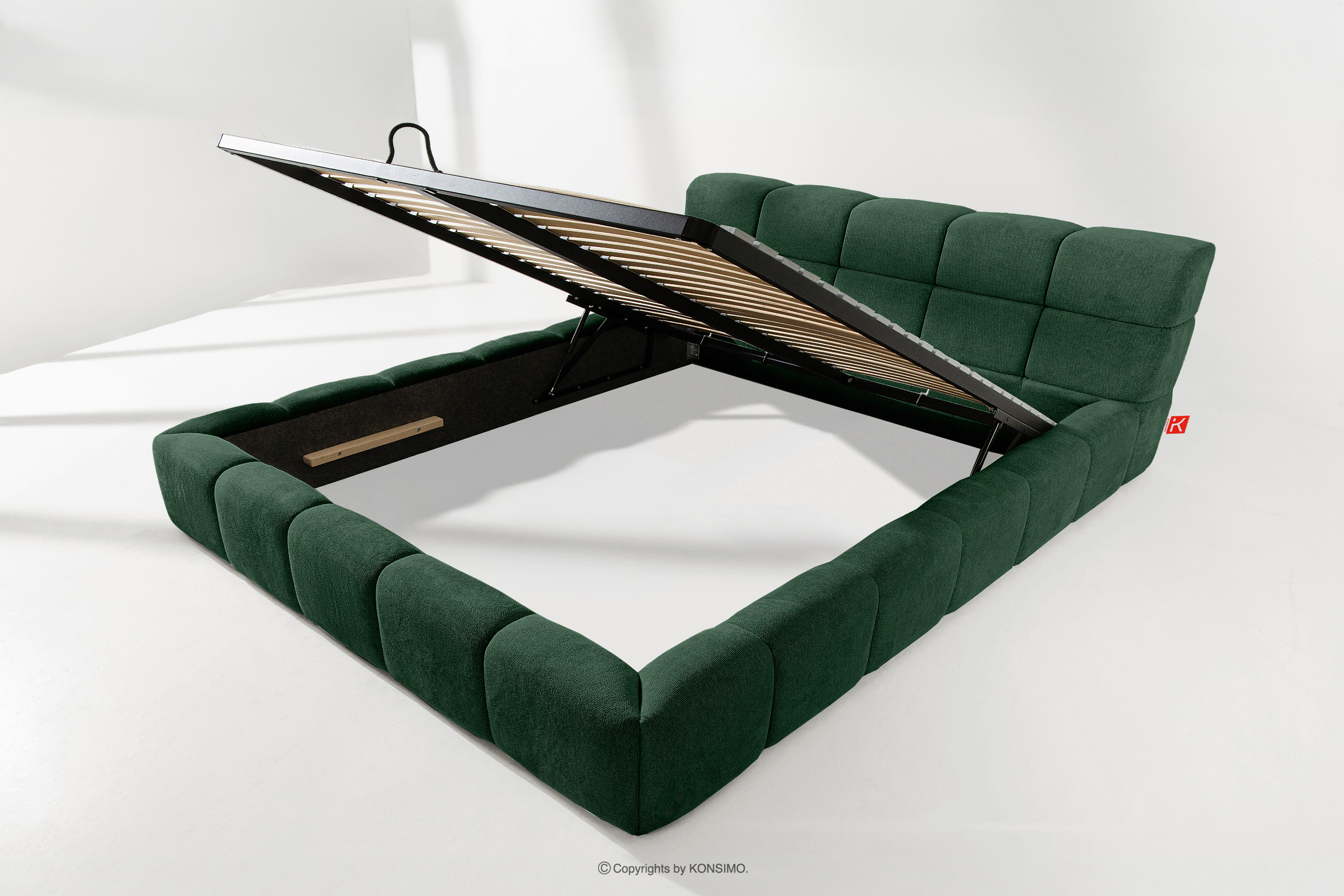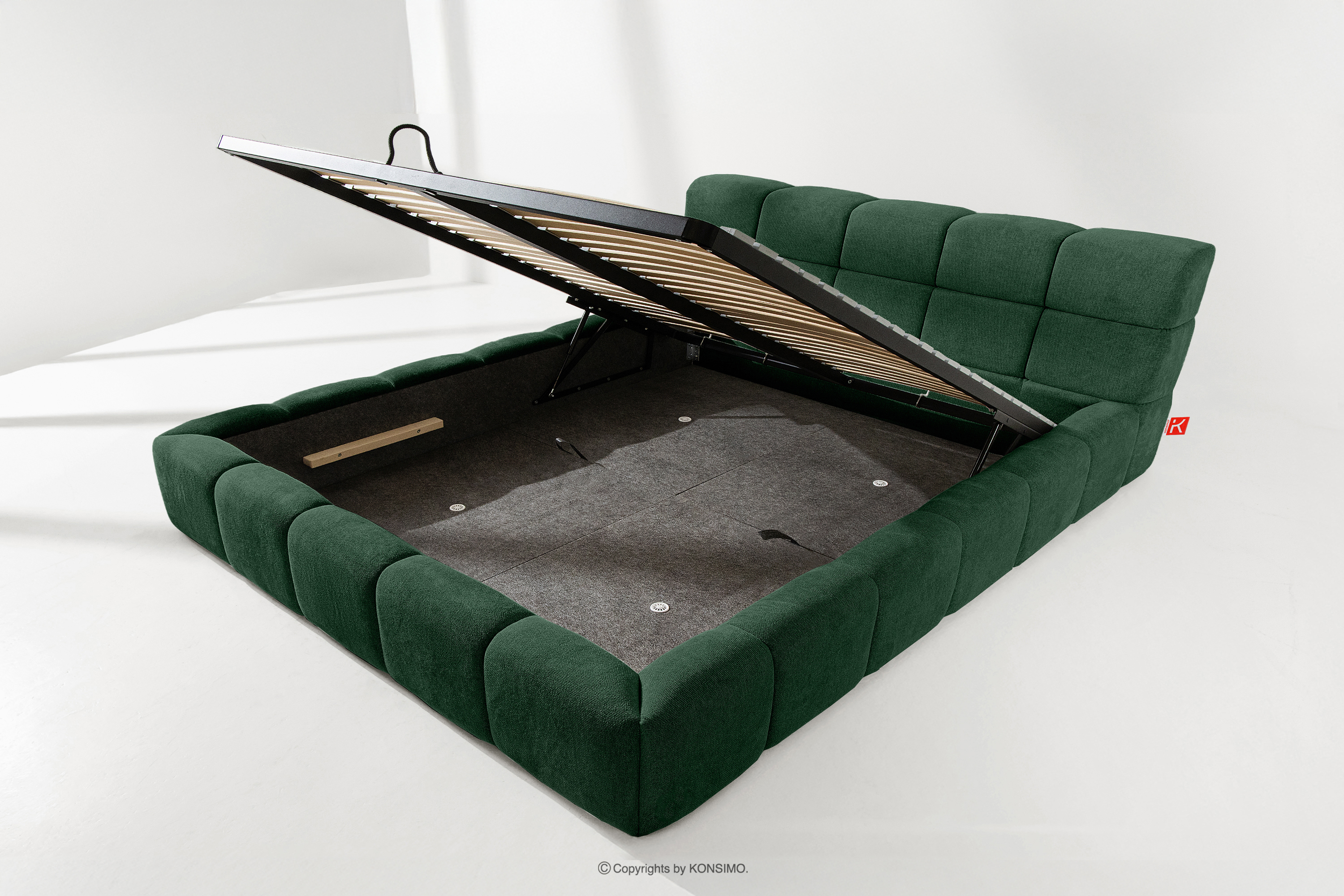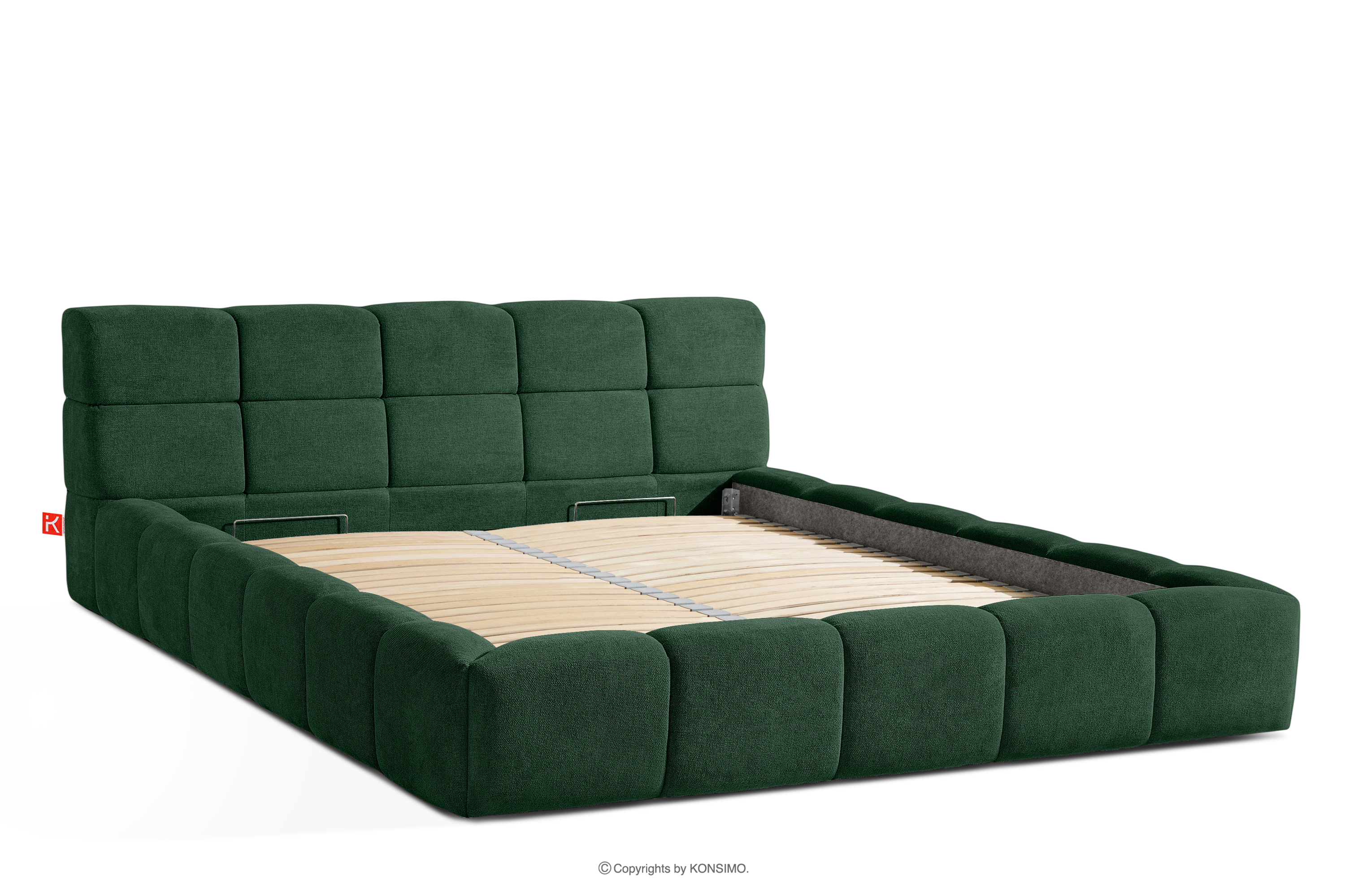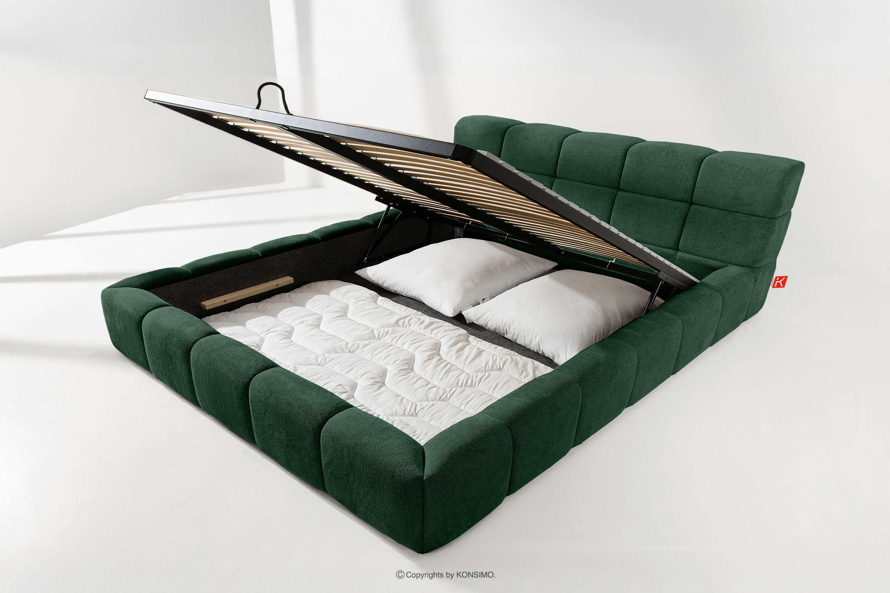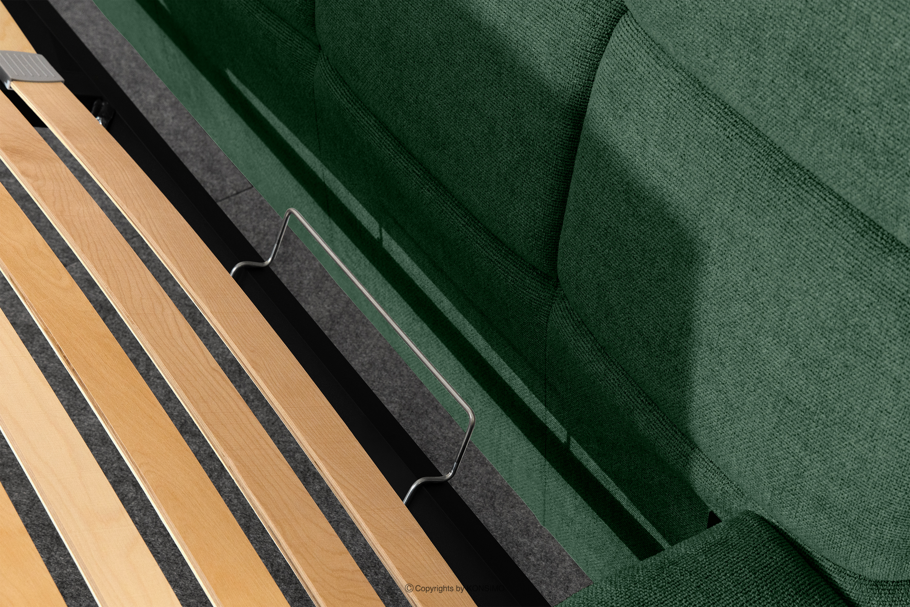 Das Bett 200 mit Kopfstütze dunkelgrün ist eine harmonische Kombination aus der Einfachheit des skandinavischen Stils und außergewöhnlichem Nutzungskomfort. Seine einzigartige Form, die von der Form einer Wolke inspiriert ist, zieht mit ihrem originellen Design die Aufmerksamkeit auf sich und bietet gleichzeitig Komfort auf höchstem Niveau. Die Konstruktion basiert auf einem flexiblen Rahmen aus Holzlatten, dessen zusätzlicher Vorteil die Möglichkeit ist, die Härte des Bettes einzustellen - dank der herausnehmbaren Latten kann man den Grad der Weichheit den individuellen Vorlieben anpassen.