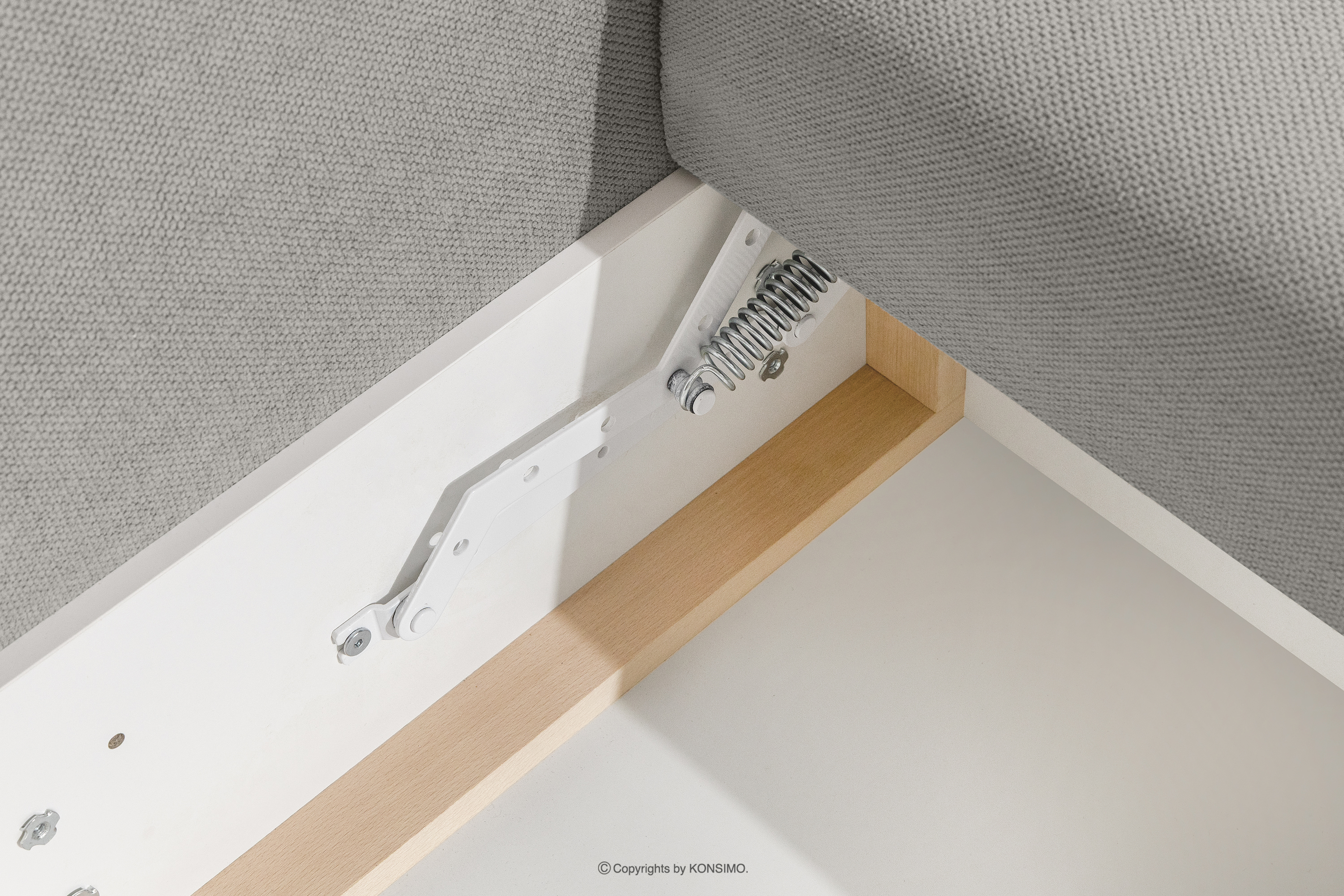Modernes Sofa mit Bettkasten in Grau ist eine Kombination aus Eleganz und Funktionalität, die für die anspruchsvollsten Nutzer entwickelt wurde. Der Bezug aus hochwertigem Gewebestoff besticht nicht nur durch seine Ästhetik, sondern ist auch äußerst praktisch. Die atmungsaktive Struktur des Materials sorgt für ganzjährigen Komfort, und dank seiner einfachen Reinigung ist es ein Kinderspiel, das Sofa in einem einwandfreien Zustand zu halten.