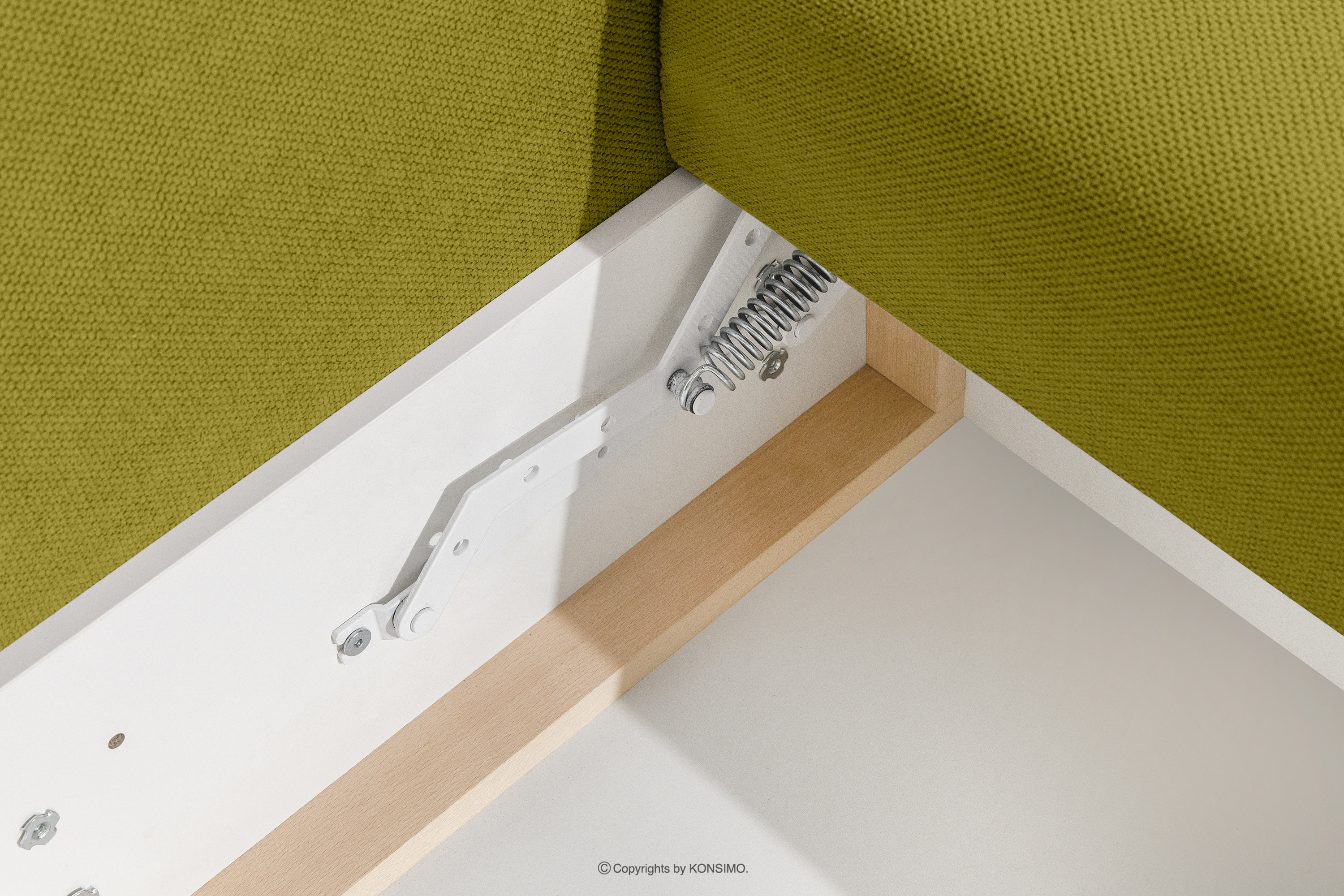 Modernes Sofa mit Bettkasten in Oliv ist eine Kombination aus Eleganz und Funktionalität, die für die anspruchsvollsten Nutzer entwickelt wurde. Der Bezug aus hochwertigem Gewebestoff besticht nicht nur durch seine Ästhetik, sondern ist auch äußerst praktisch. Die atmungsaktive Struktur des Materials sorgt für ganzjährigen Komfort, und dank seiner einfachen Reinigung ist es ein Kinderspiel, das Sofa in einem einwandfreien Zustand zu halten.