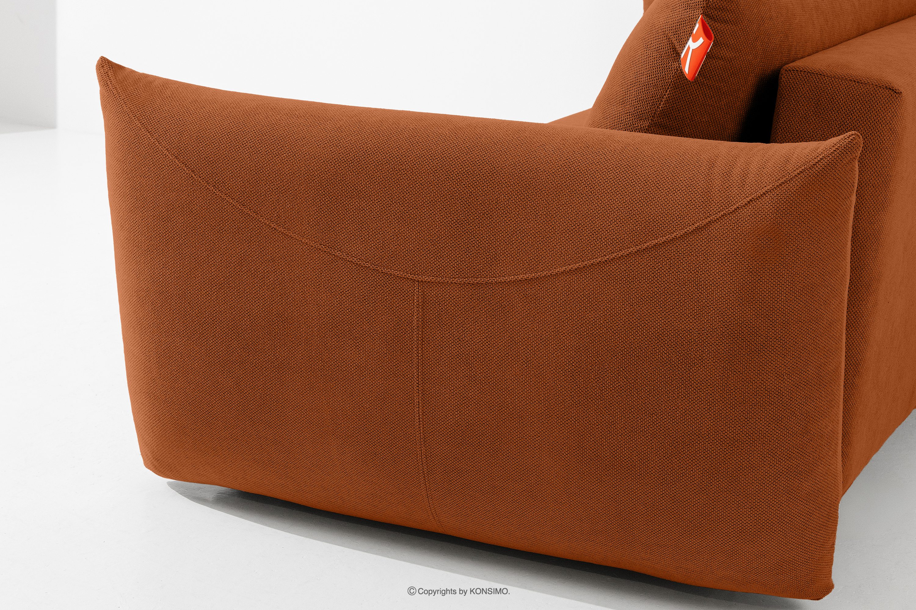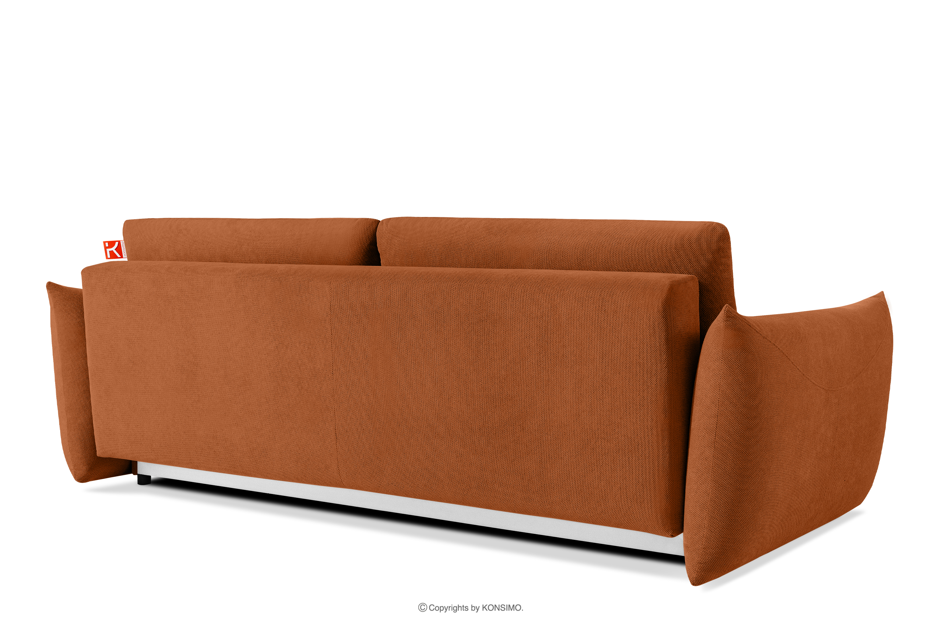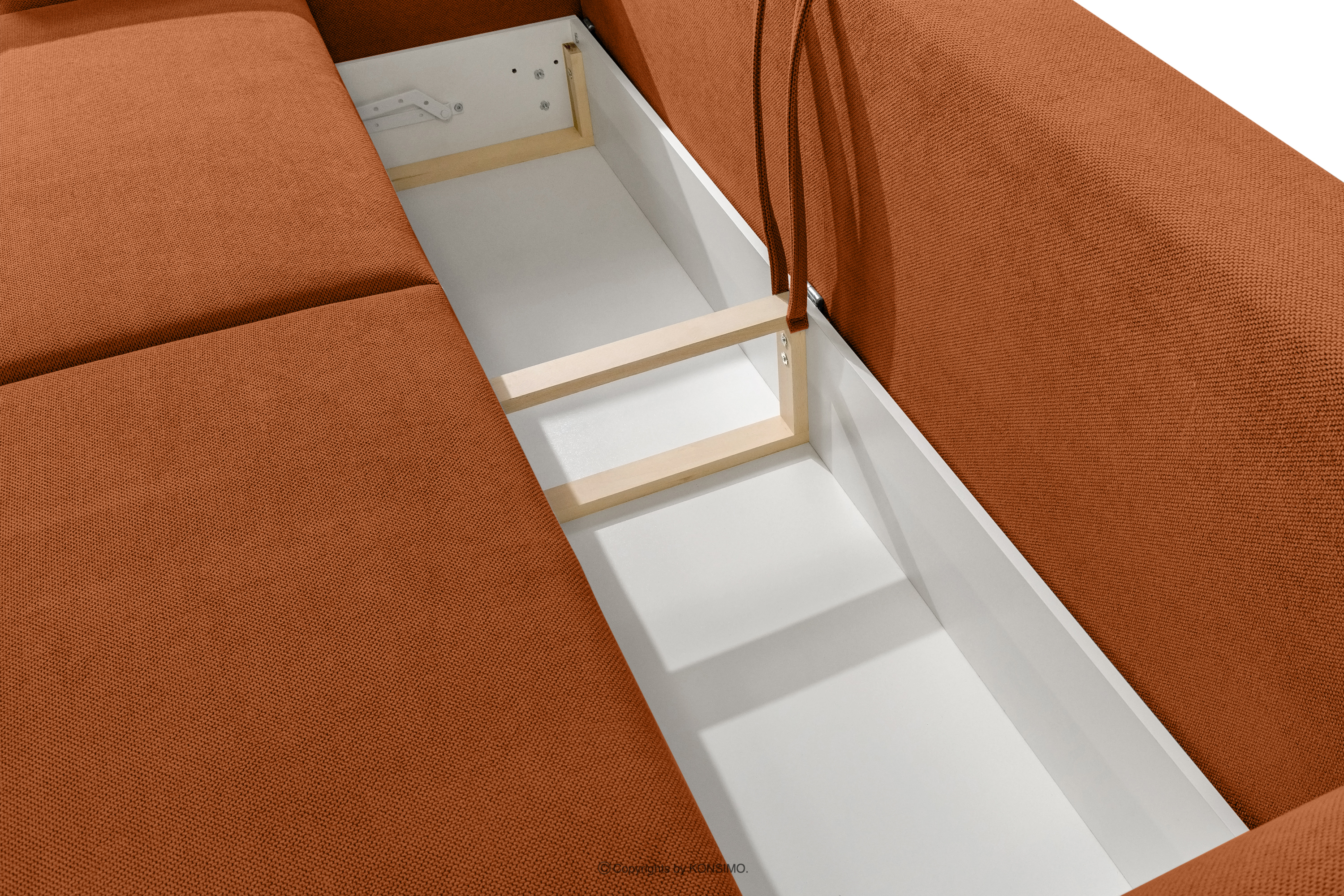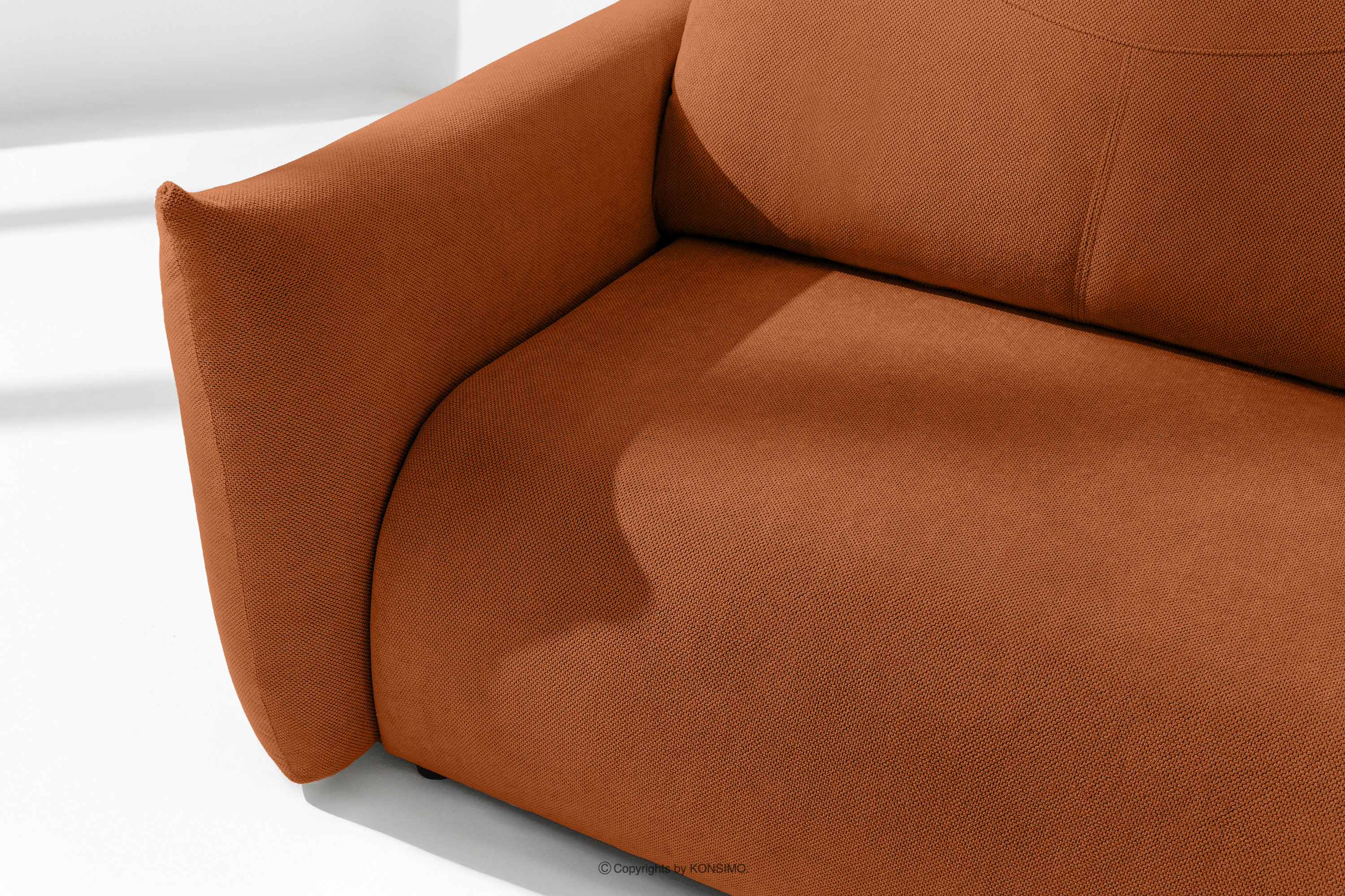 Modernes Sofa mit Bettkasten in Rostrot ist eine Kombination aus Eleganz und Funktionalität, die für die anspruchsvollsten Nutzer entwickelt wurde. Der Bezug aus hochwertigem Gewebestoff besticht nicht nur durch seine Ästhetik, sondern ist auch äußerst praktisch. Die atmungsaktive Struktur des Materials sorgt für ganzjährigen Komfort, und dank seiner einfachen Reinigung ist es ein Kinderspiel, das Sofa in einem einwandfreien Zustand zu halten.