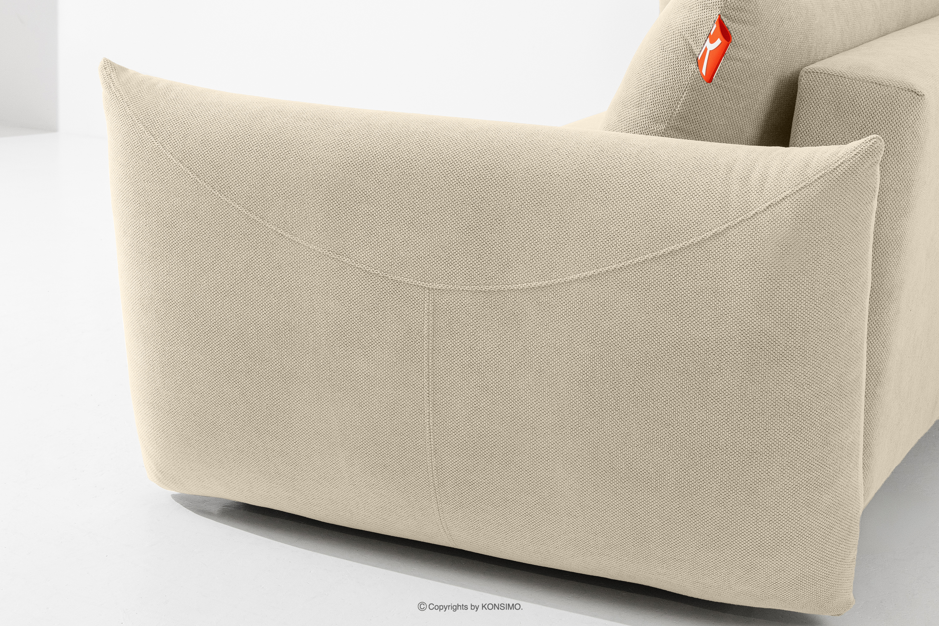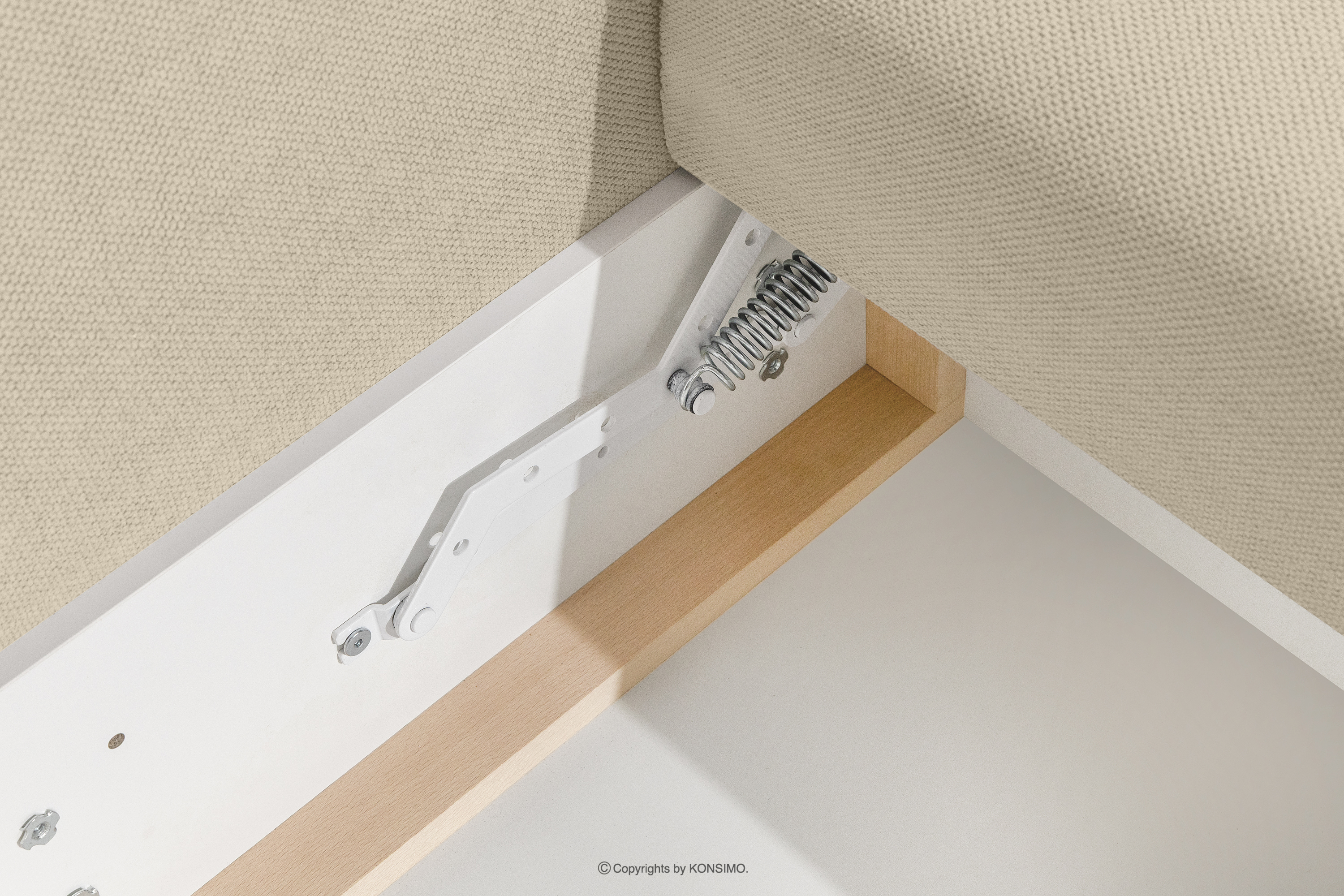 Modernes Sofa mit Bettkasten in Ecru ist eine Kombination aus Eleganz und Funktionalität, die für die anspruchsvollsten Nutzer entwickelt wurde. Der Bezug aus hochwertigem Gewebestoff besticht nicht nur durch seine Ästhetik, sondern ist auch äußerst praktisch. Die atmungsaktive Struktur des Materials sorgt für ganzjährigen Komfort, und dank seiner einfachen Reinigung ist es ein Kinderspiel, das Sofa in einem einwandfreien Zustand zu halten.