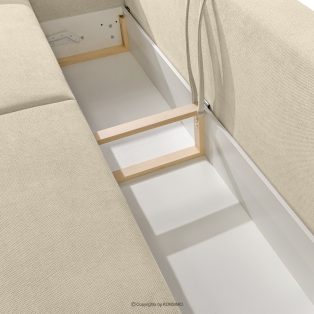 Modernes Sofa mit Bettkasten in Ecru ist eine Kombination aus Eleganz und Funktionalität, die für die anspruchsvollsten Nutzer entwickelt wurde. Der Bezug aus hochwertigem Gewebestoff besticht nicht nur durch seine Ästhetik, sondern ist auch äußerst praktisch. Die atmungsaktive Struktur des Materials sorgt für ganzjährigen Komfort, und dank seiner einfachen Reinigung ist es ein Kinderspiel, das Sofa in einem einwandfreien Zustand zu halten.