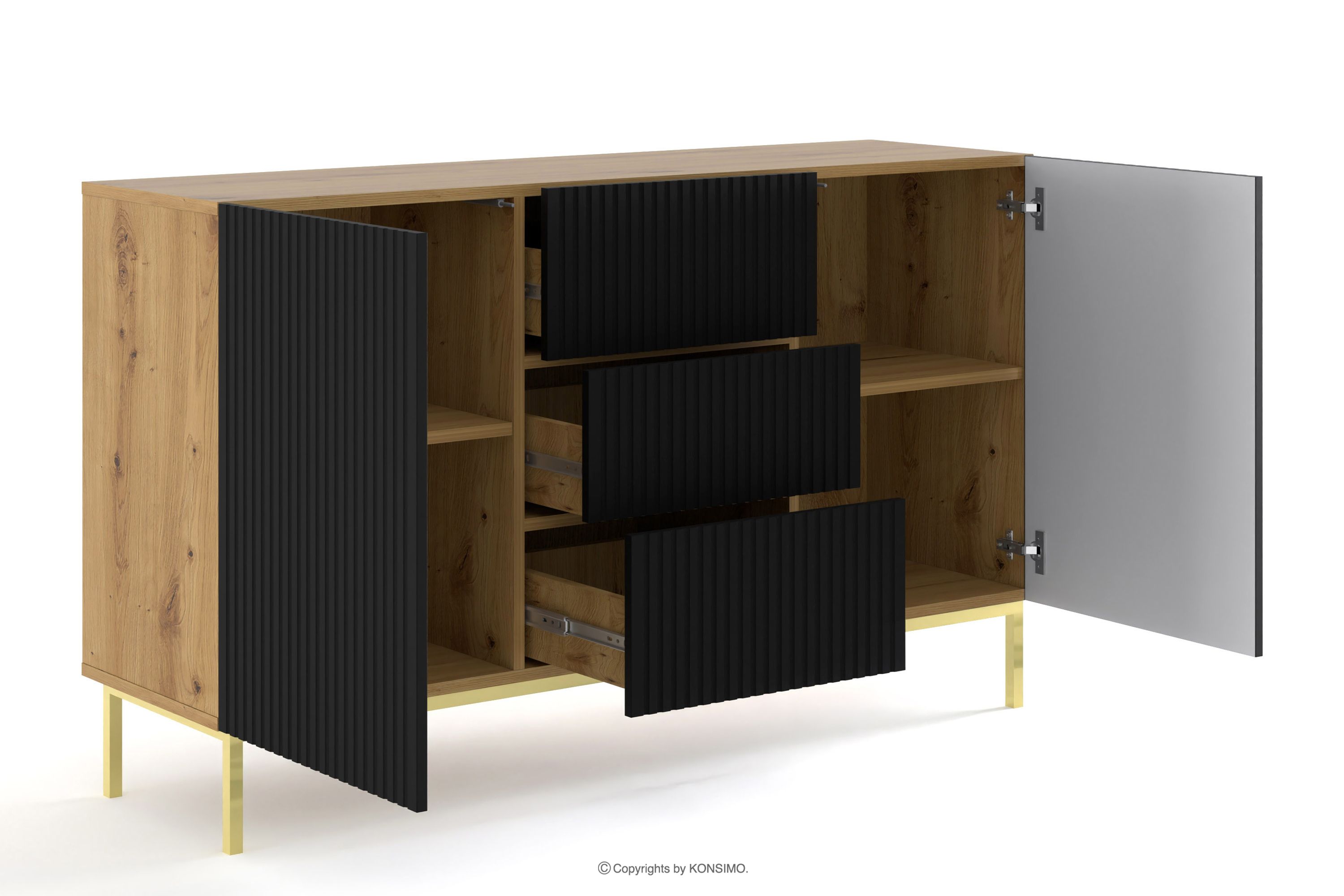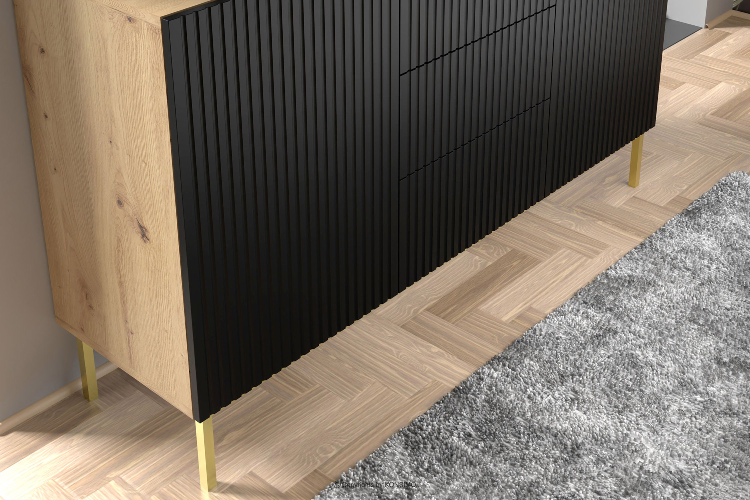 REMO Elegante Kommode für das Wohnzimmer auf goldenen Beinen artisan eiche/schwarz