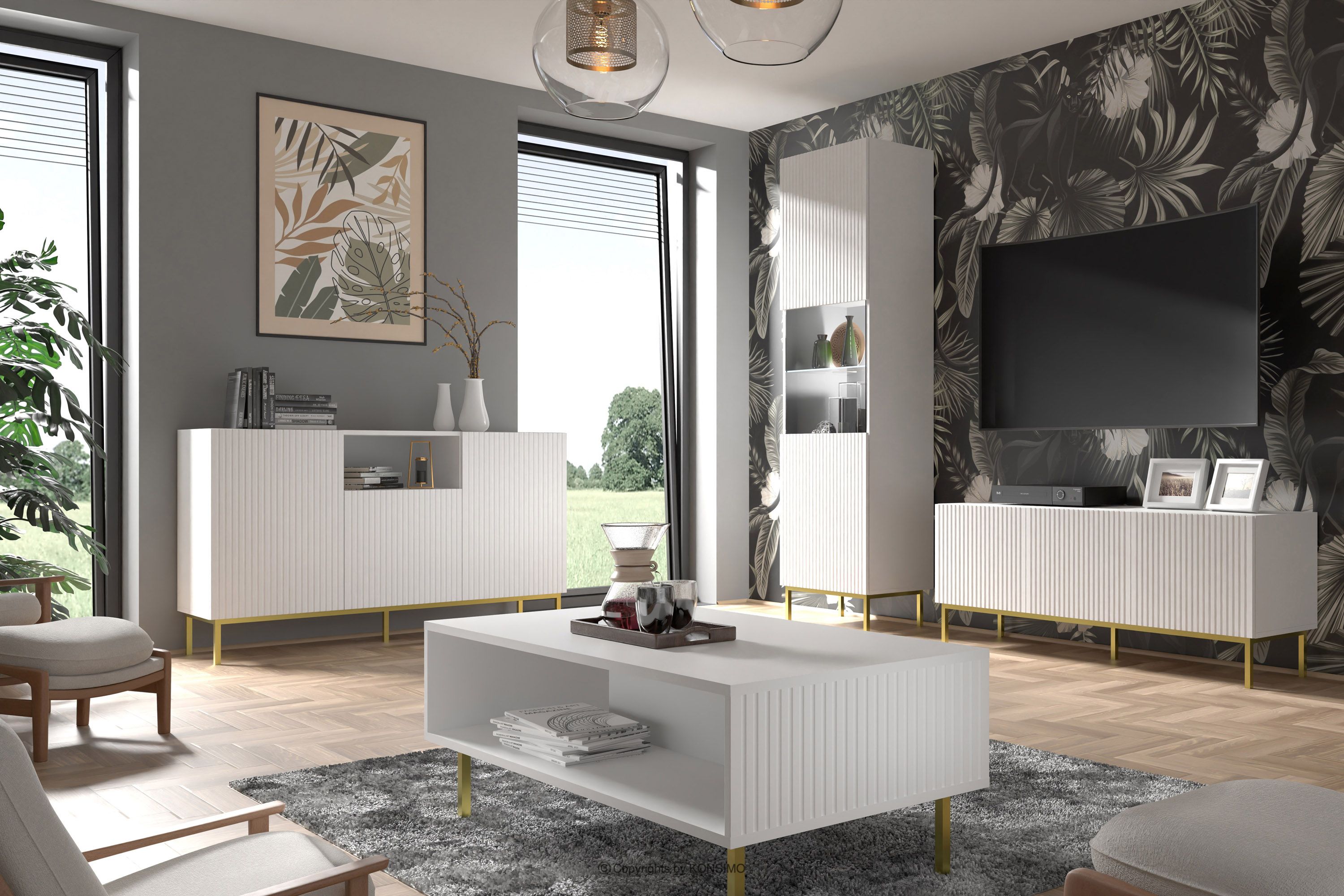 REMO Mehr aus der Kollektion Weiße Kommode für Zimmer auf goldenen Beinen- Farbe weiß