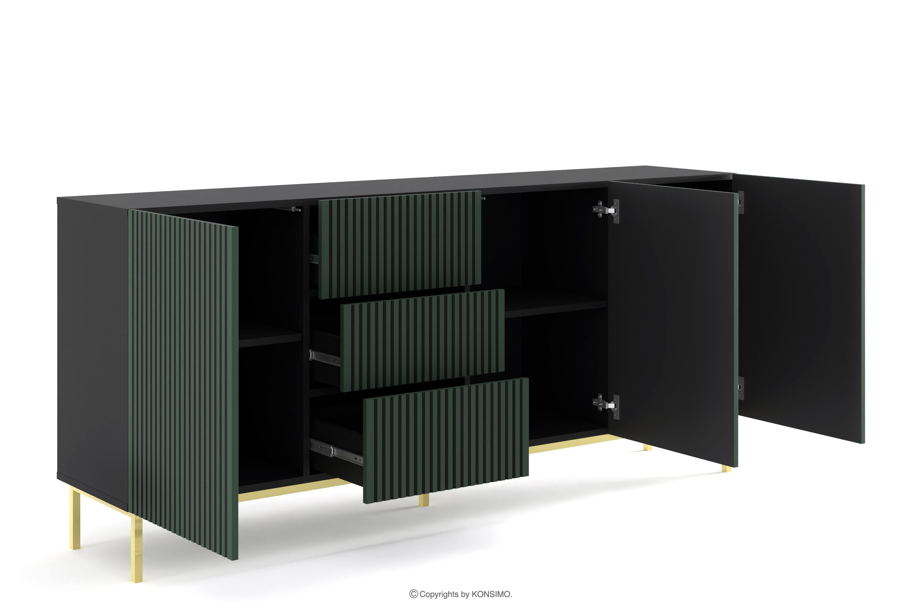 REMO Mehr aus der Kollektion Kommode mit goldenen Beinen Schwarz/Grün- Farbe schwarz/grün