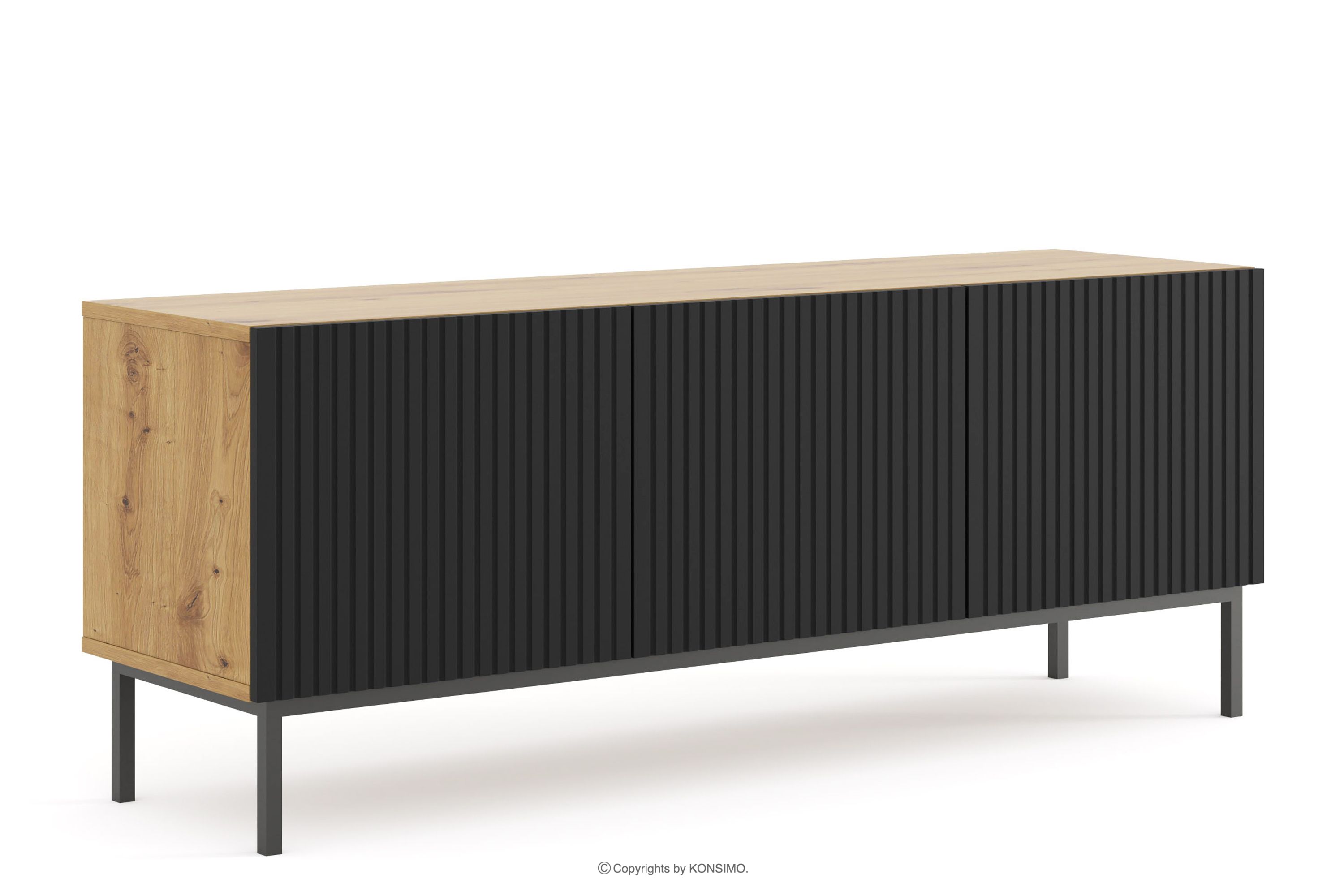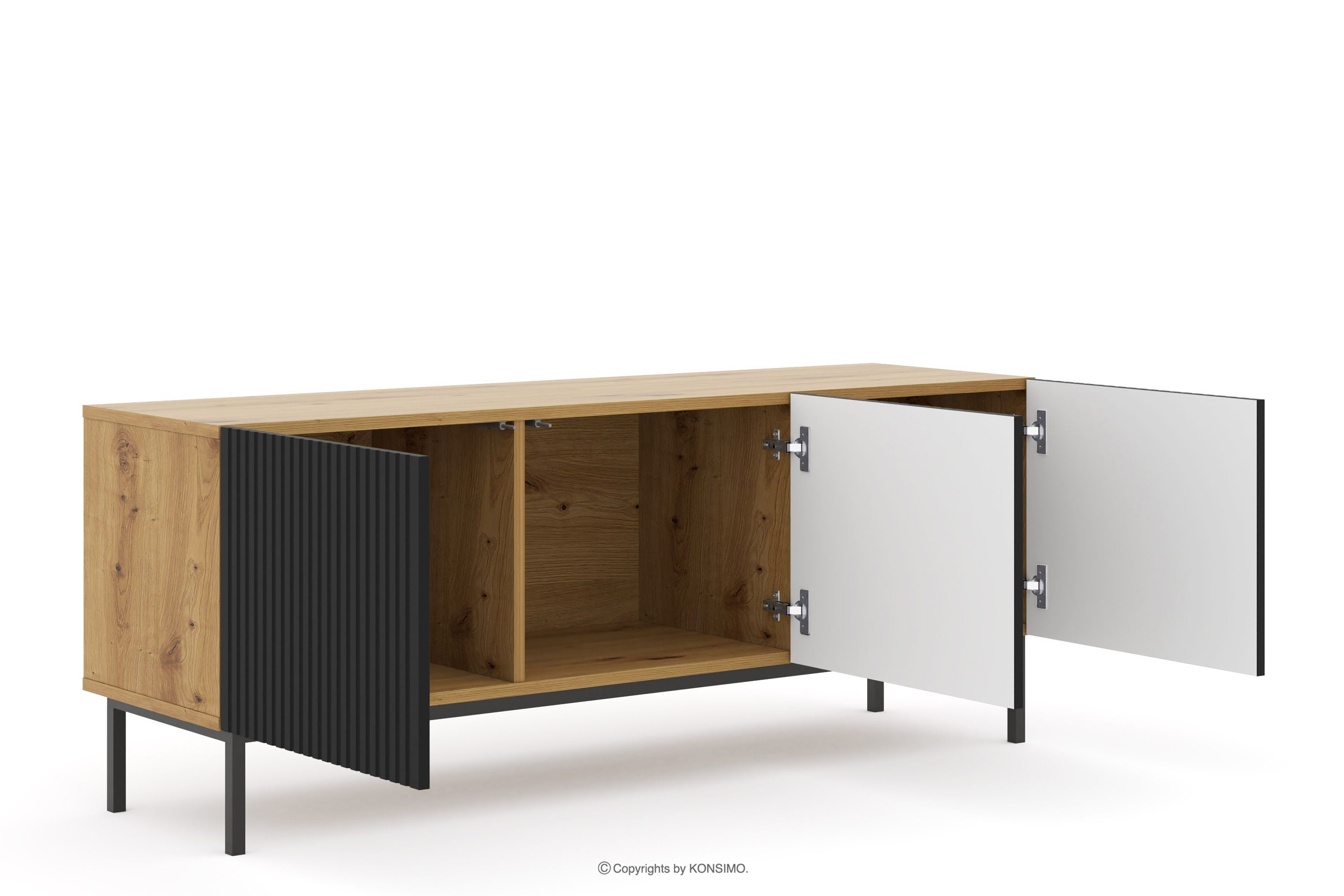 REMO Mehr aus der Kollektion Großer TV-Schrank auf handwerklich gefertigten Beinen aus Eiche/Schwarz- Farbe artisan eiche/schwarz