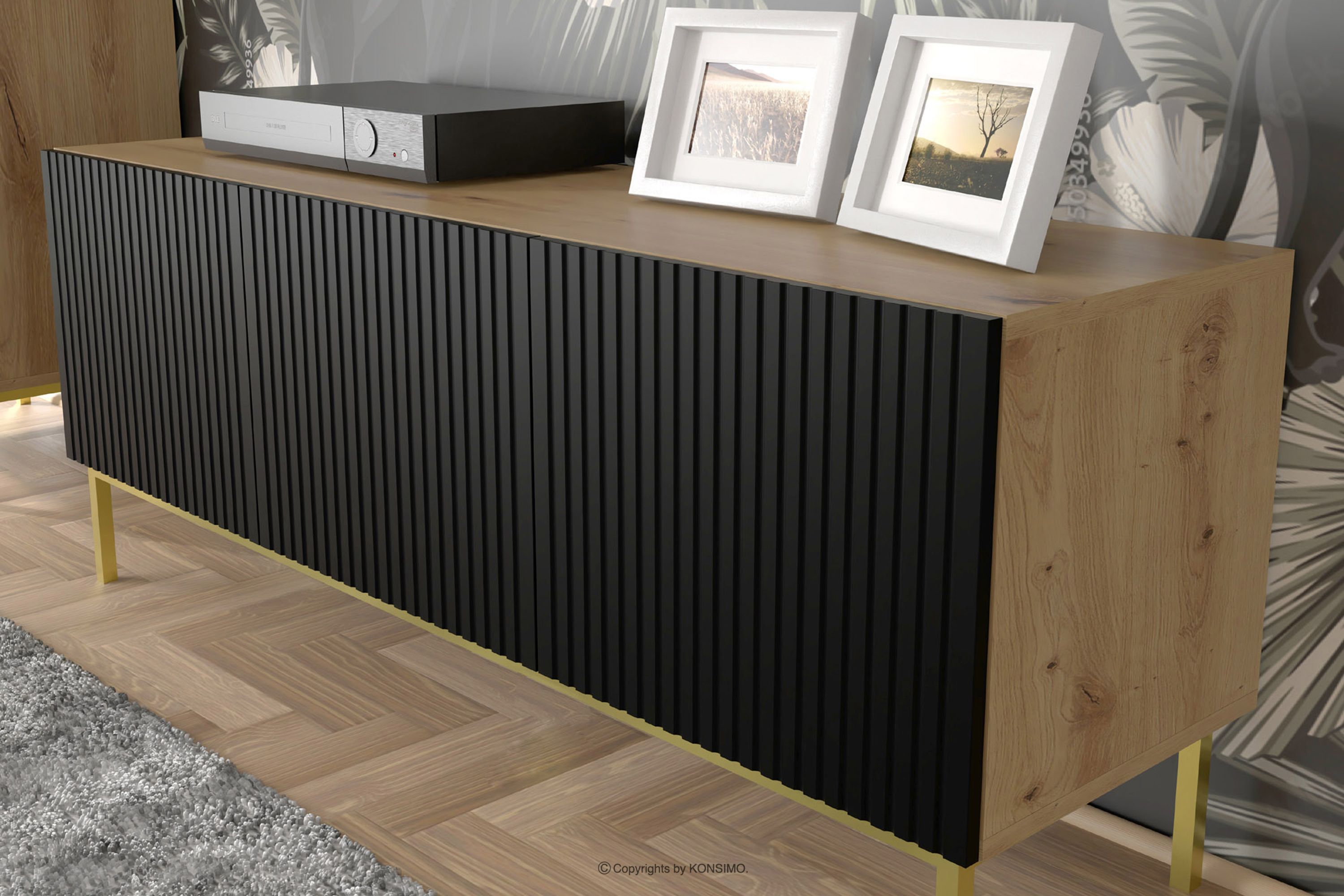 REMO Mehr aus der Kollektion Breiter TV-Schrank auf goldenen Beinen artisan eiche/schwarz- Farbe artisan eiche/schwarz