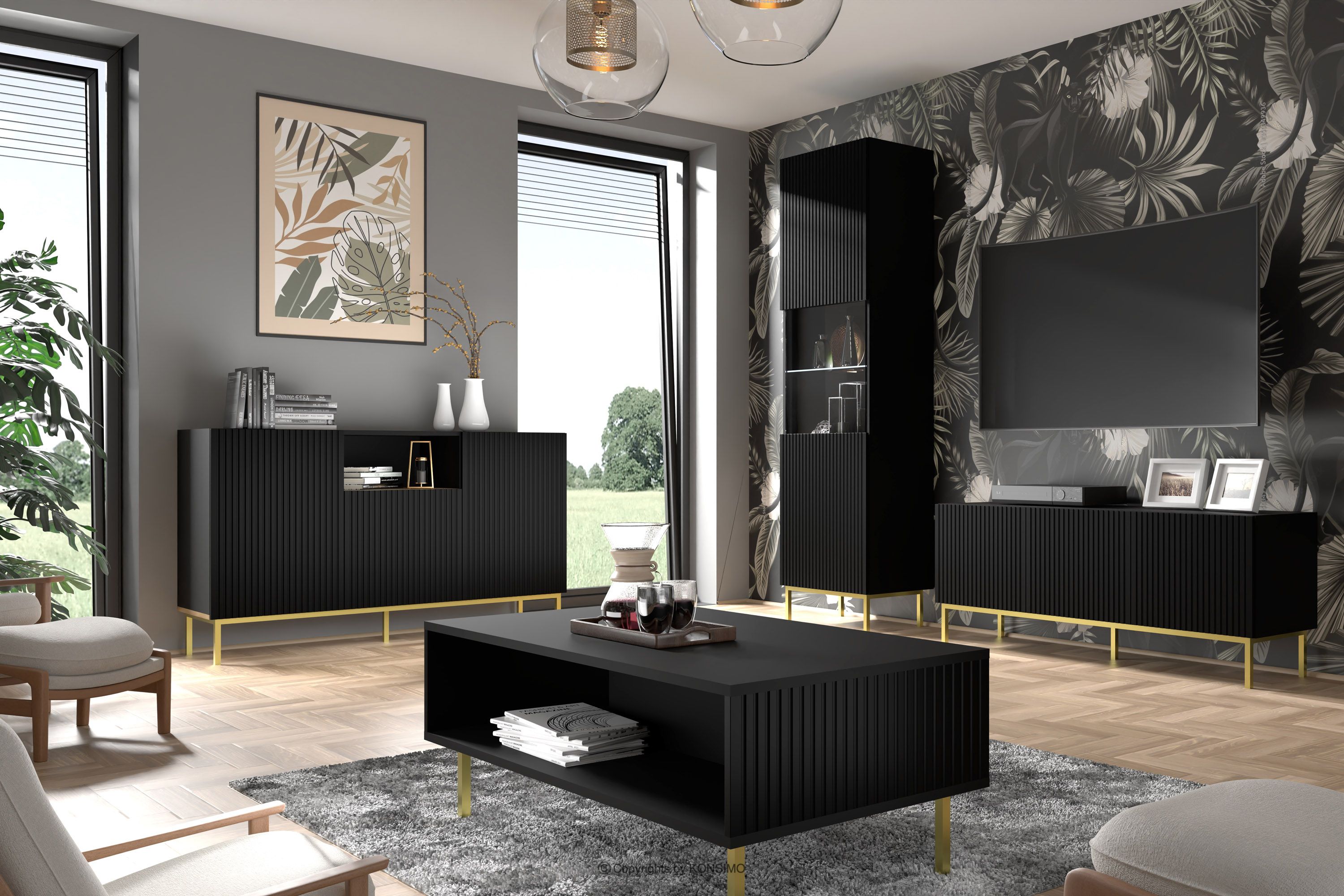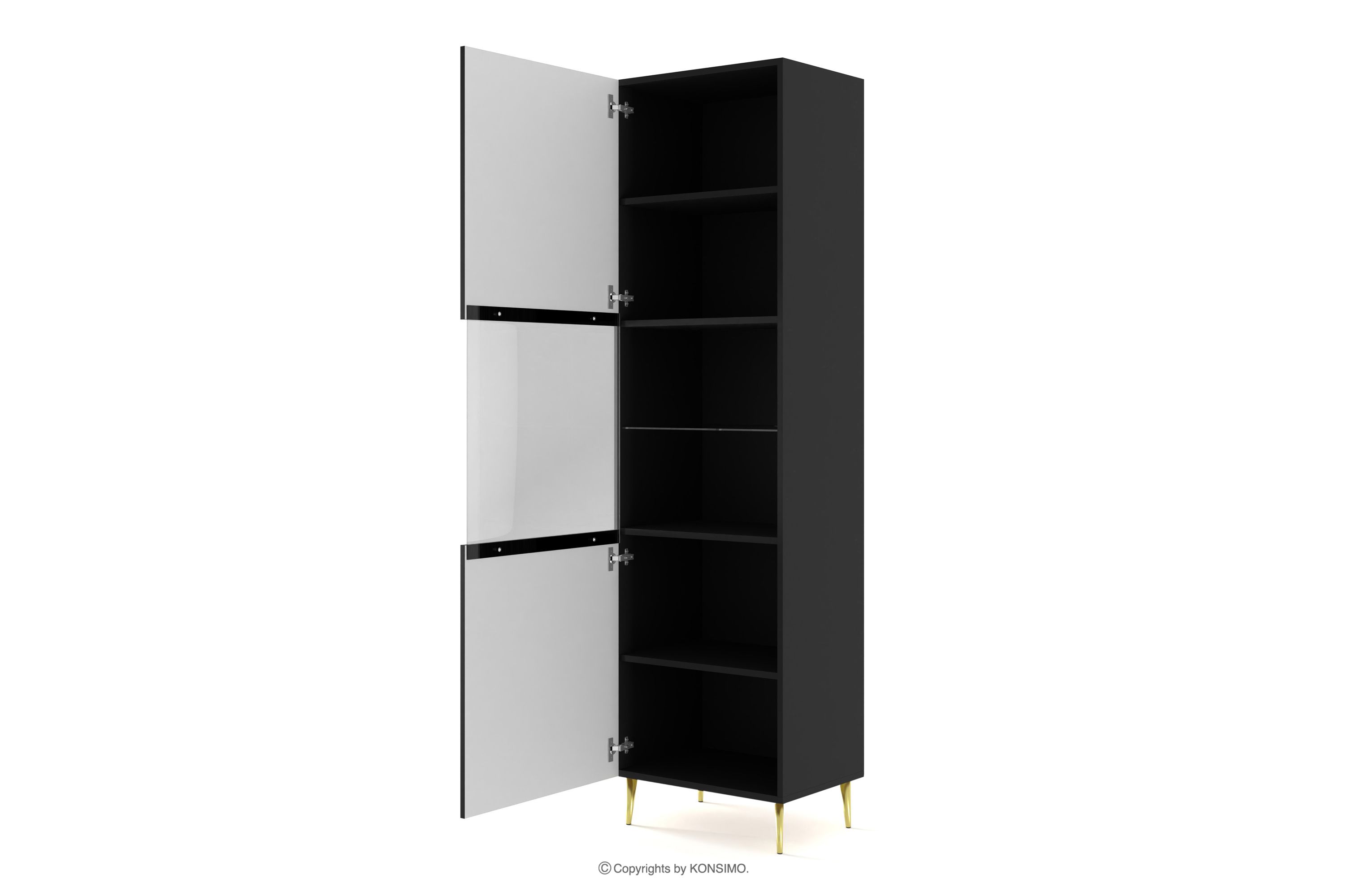 Die schwarz-hochgoldene Beinvitrine ist eine Kombination aus außergewöhnlichem Design, solider Verarbeitung und Funktionalität. Sie wurden für Menschen geschaffen, die Wert auf Ästhetik und Komfort im täglichen Gebrauch legen. Schlichte, minimalistische Formen, angereichert mit subtilen Details, entsprechen den neuesten Trends in der Inneneinrichtung und fügen sich harmonisch in eine Vielzahl von Arrangements ein.