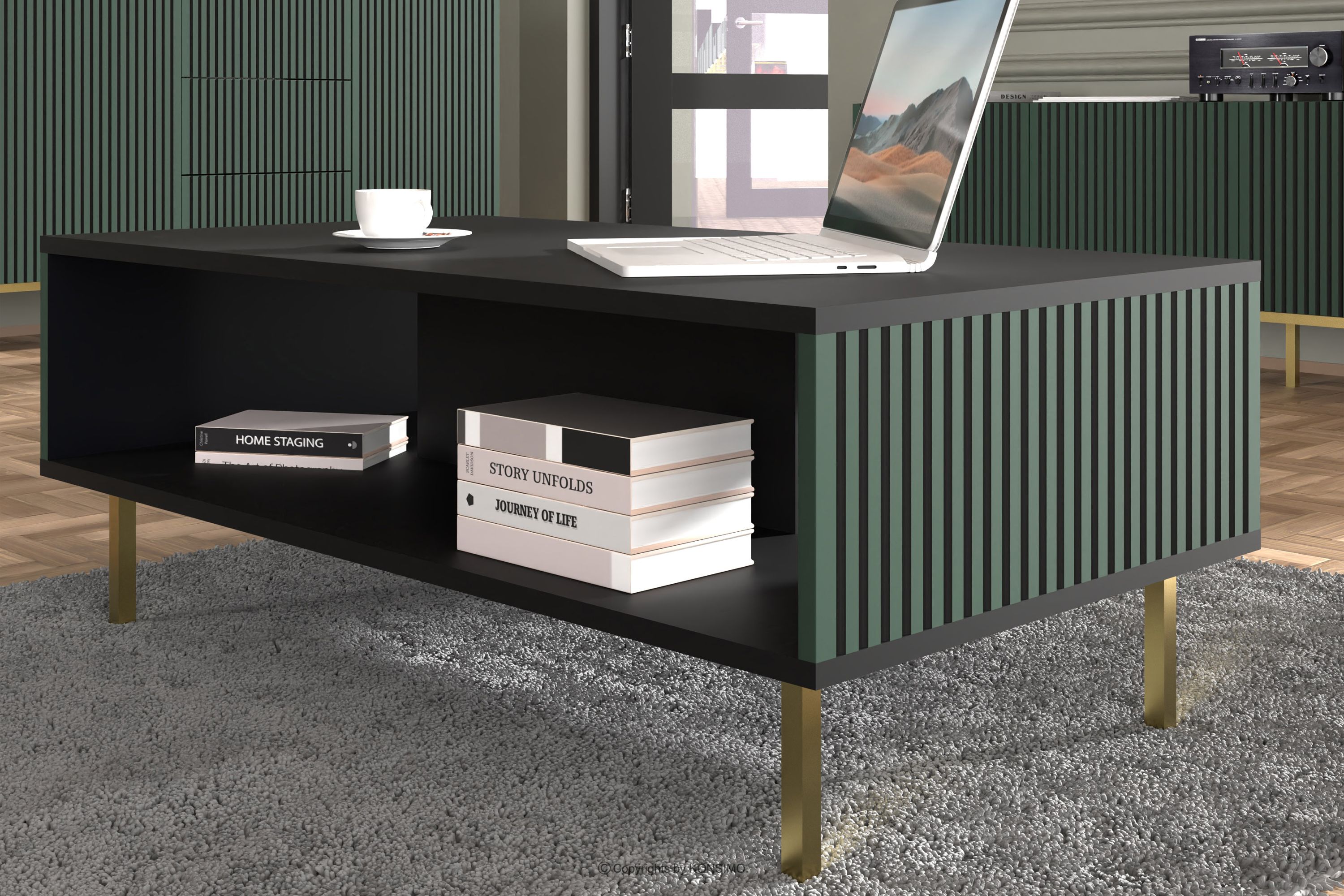 für das Produkt Couchtisch auf goldenen Beinen mit Flossen schwarz/grün
