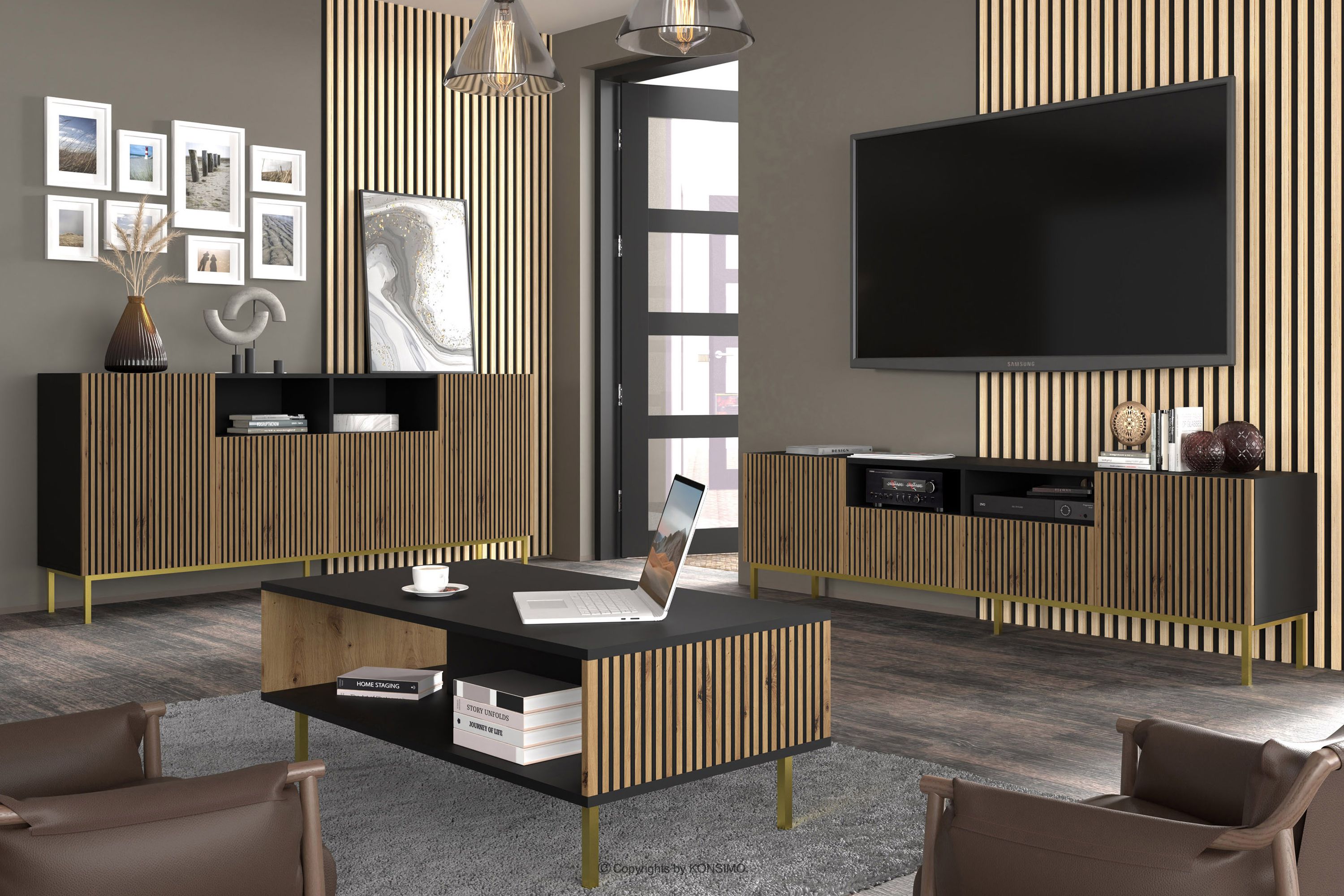 REMO Mehr aus der Kollektion Esstisch auf goldenen Beinen mit Flossen schwarz/eiche artisan- Farbe schwarz/eiche artisan