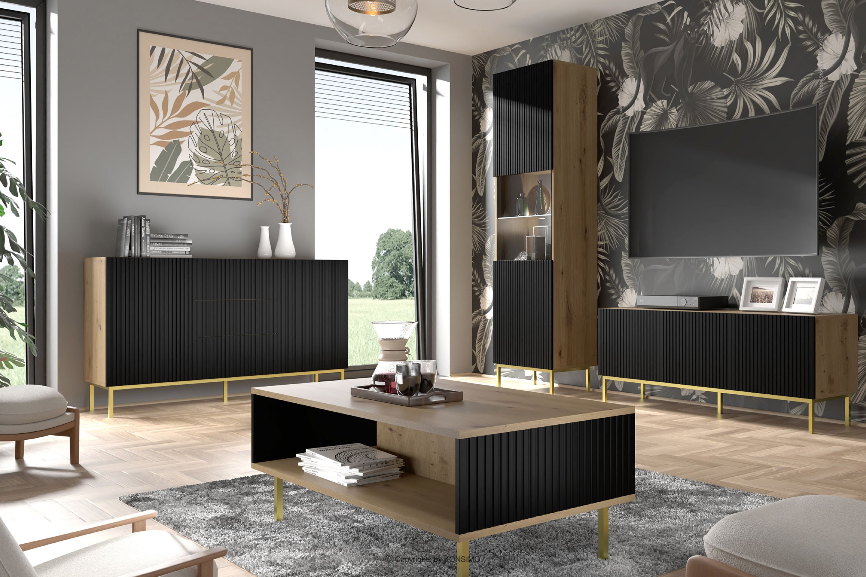 REMO Couchtisch auf schwarzen Beinen mit Einlegeböden artisan eiche/schwarz