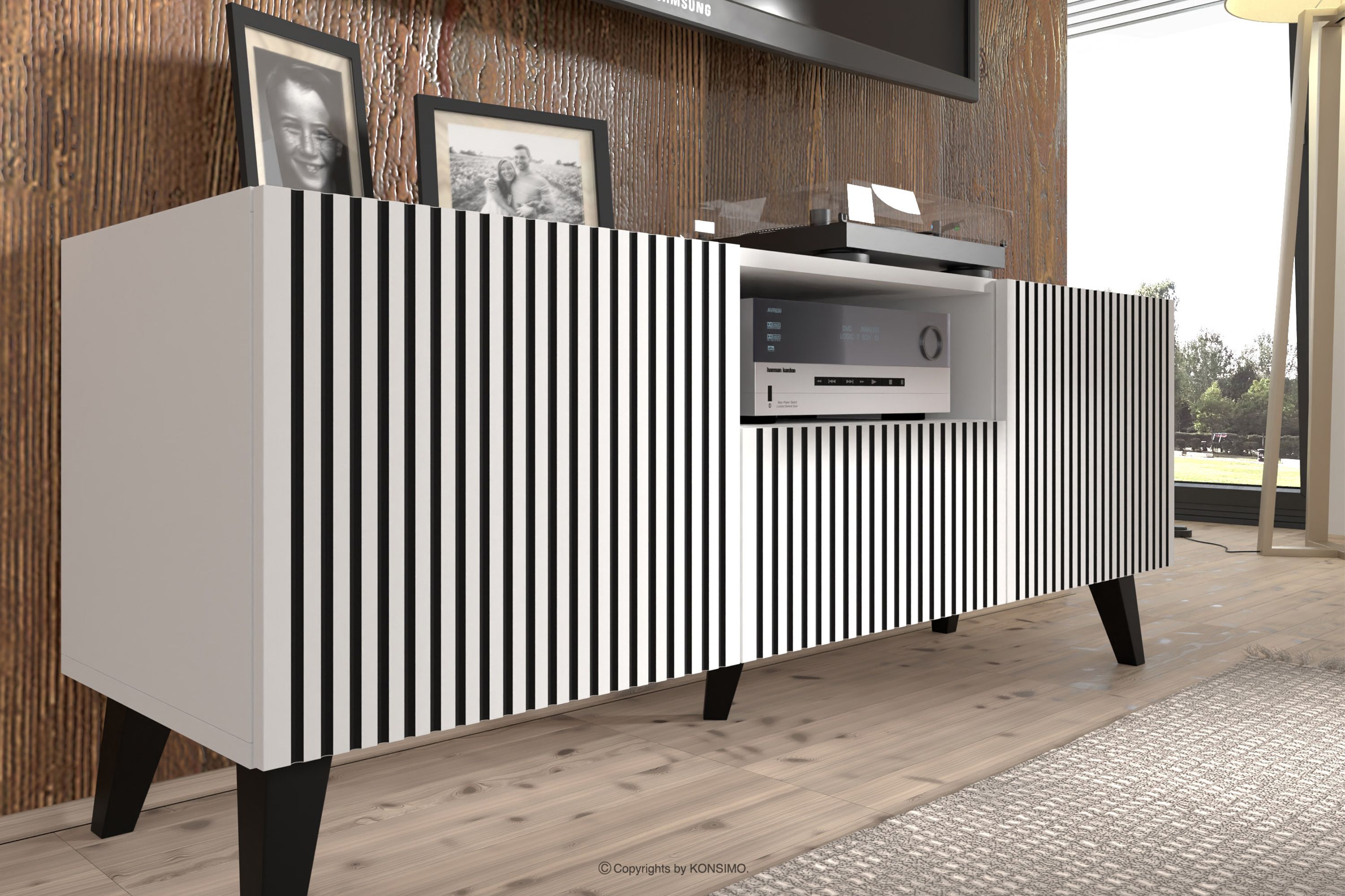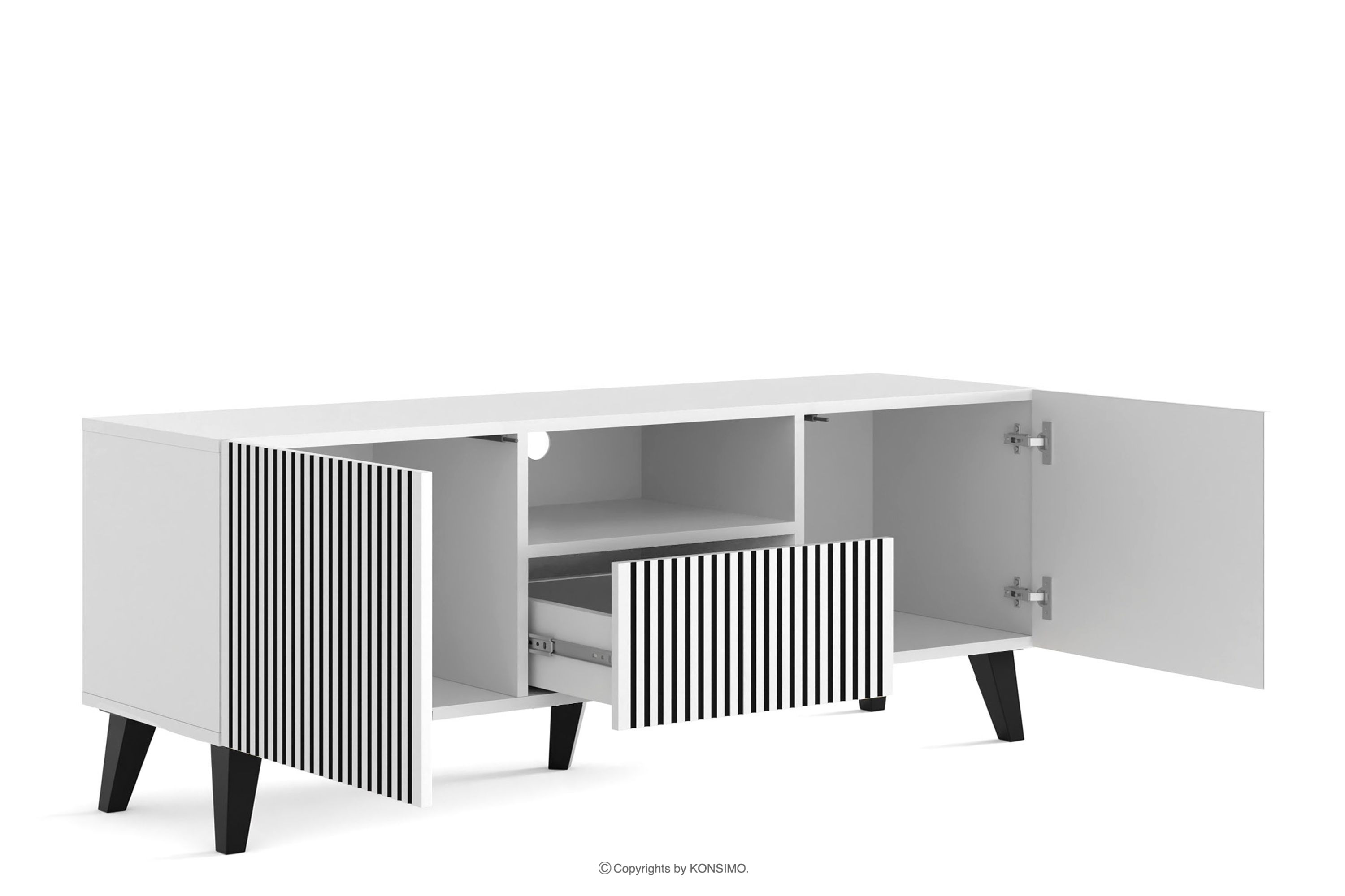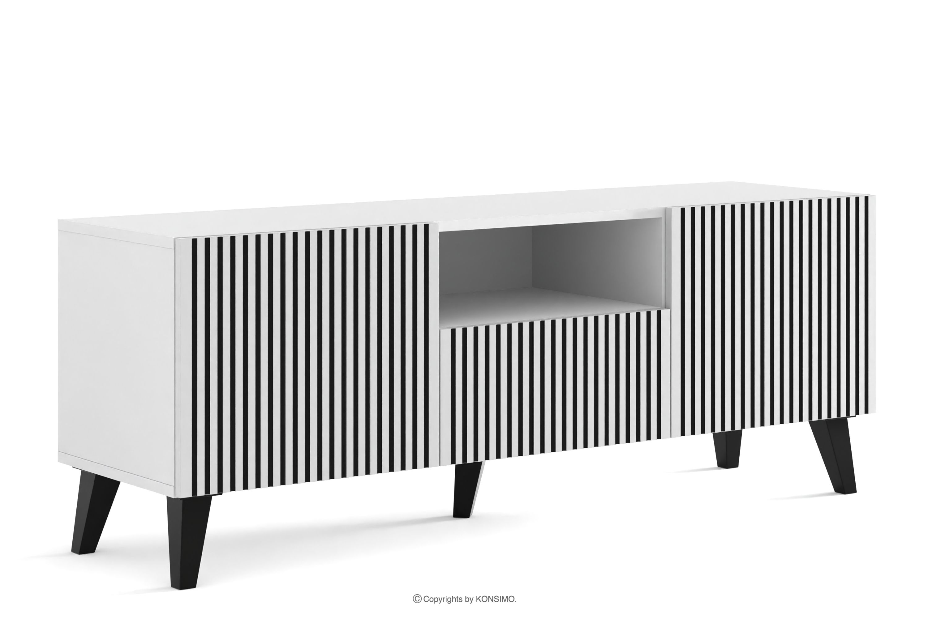 REMO Mehr aus der Kollektion TV-Schrank modern mit Rippen weiß/schwarz- Farbe weiß/schwarz