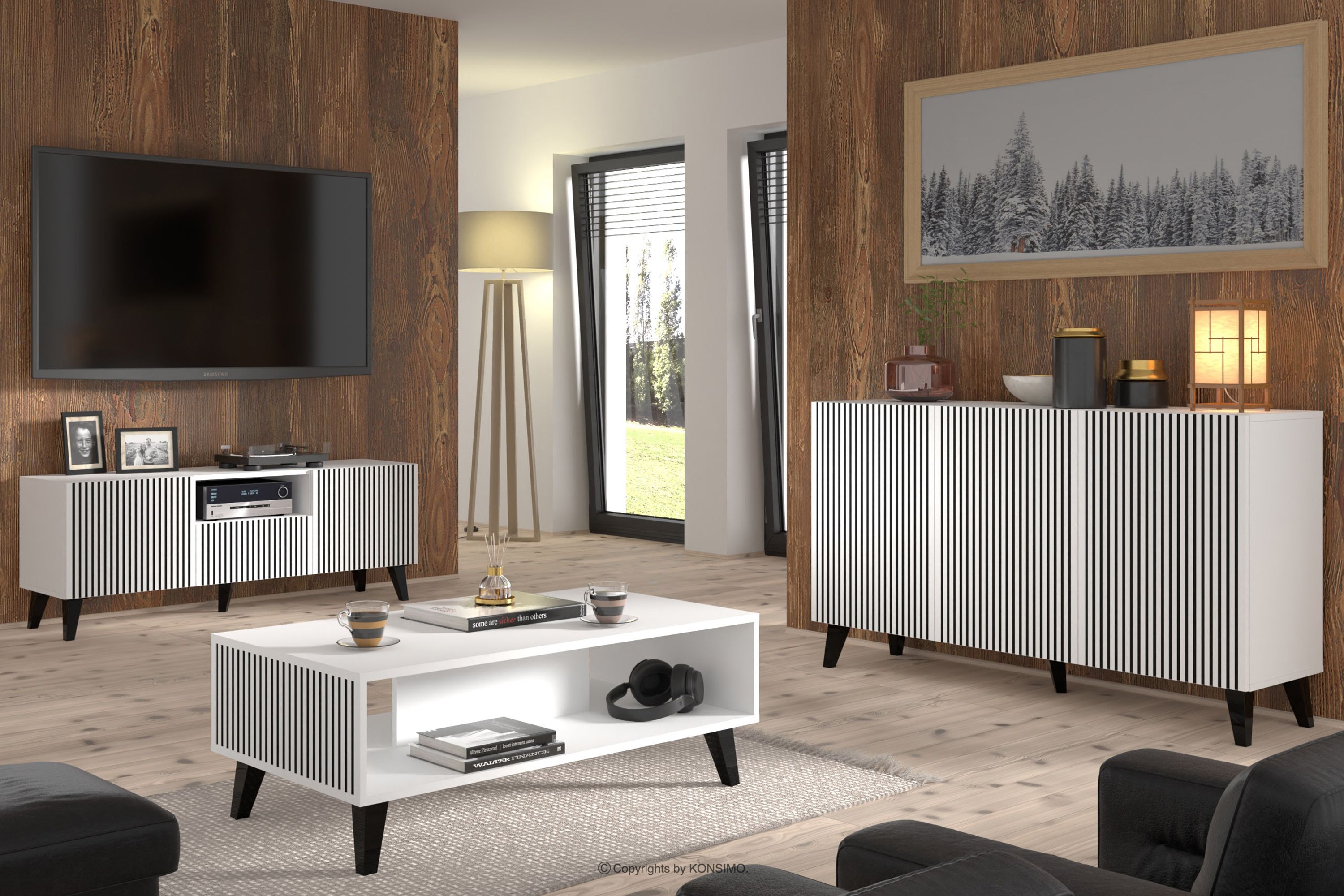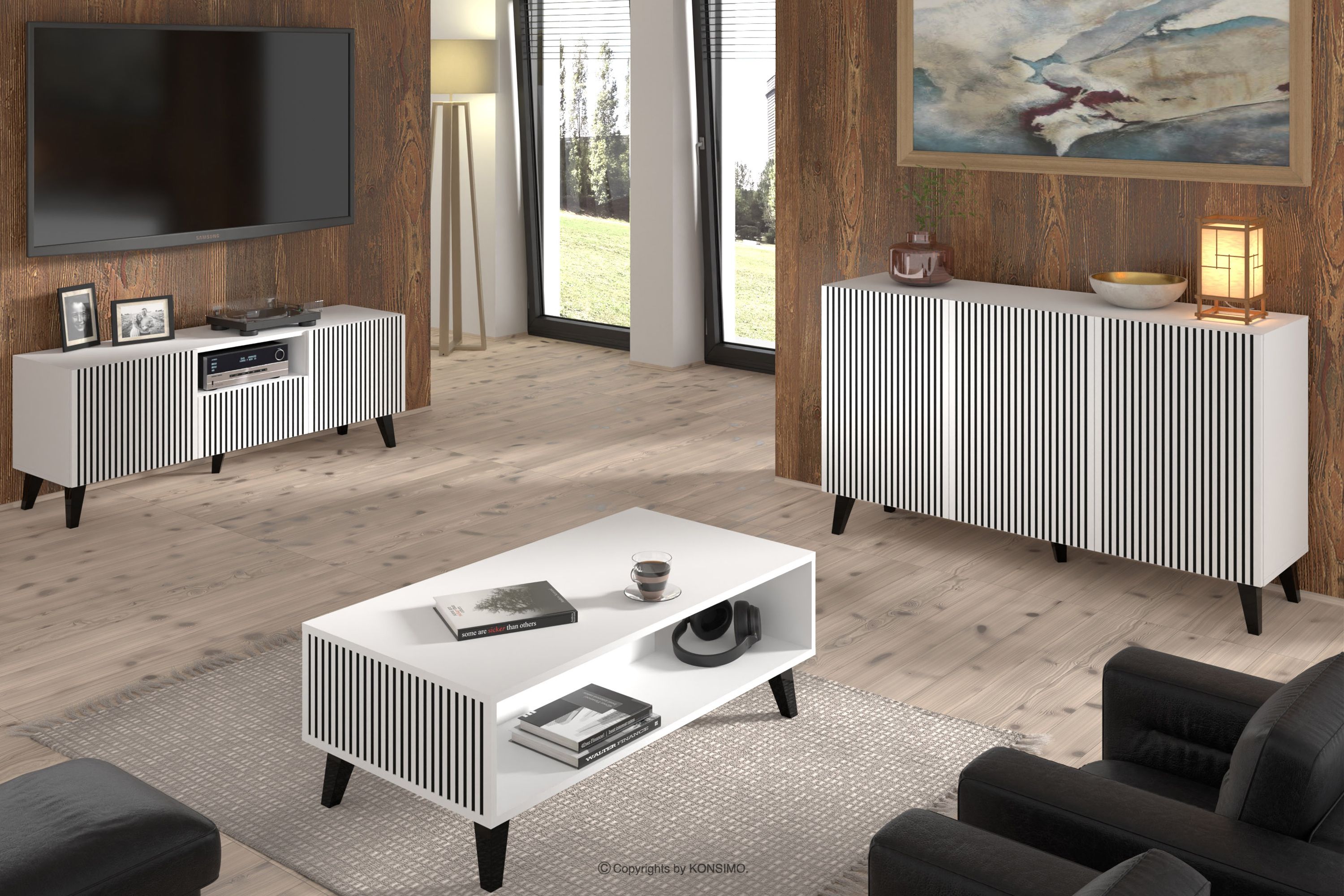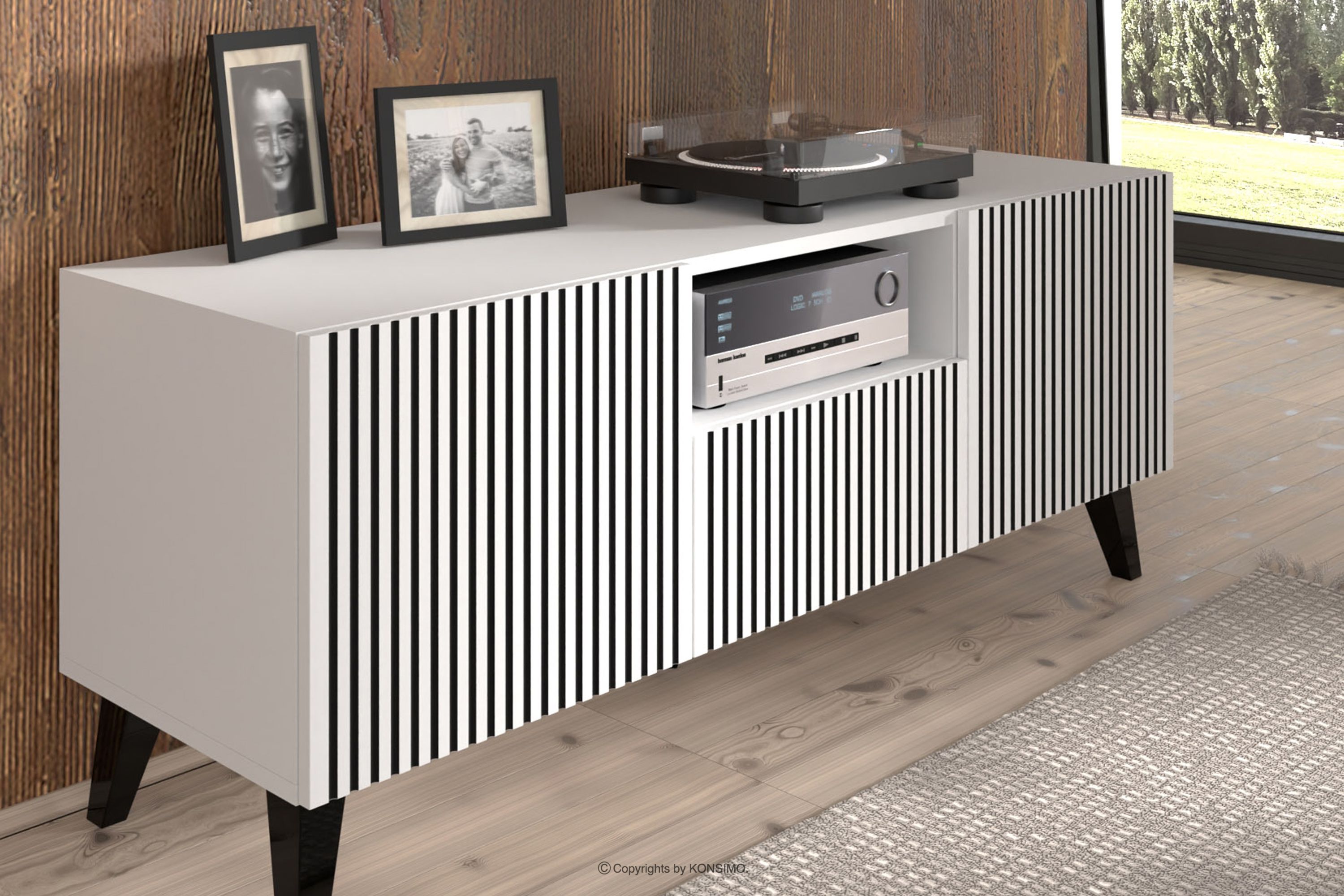 REMO Mehr aus der Kollektion TV-Schrank modern mit Rippen weiß/schwarz- Farbe weiß/schwarz
