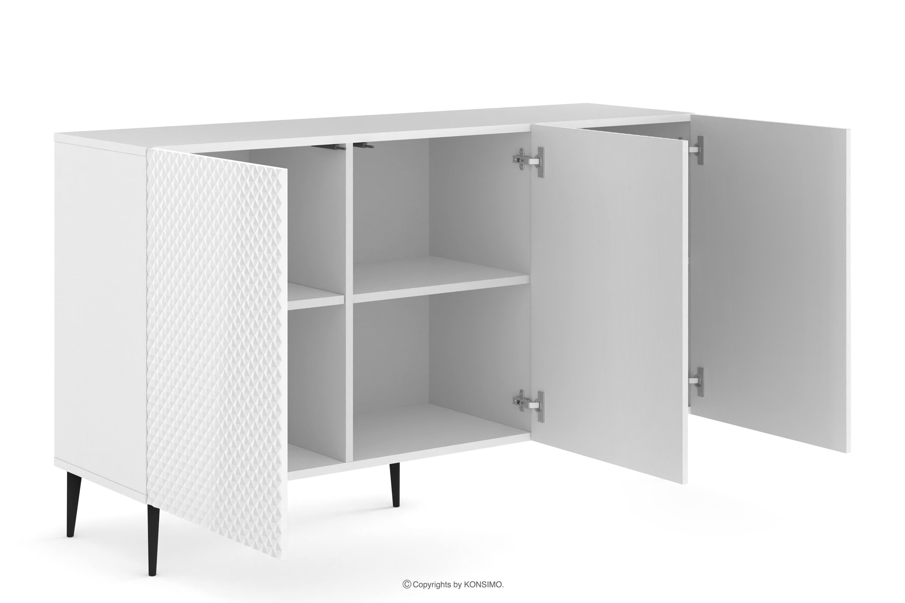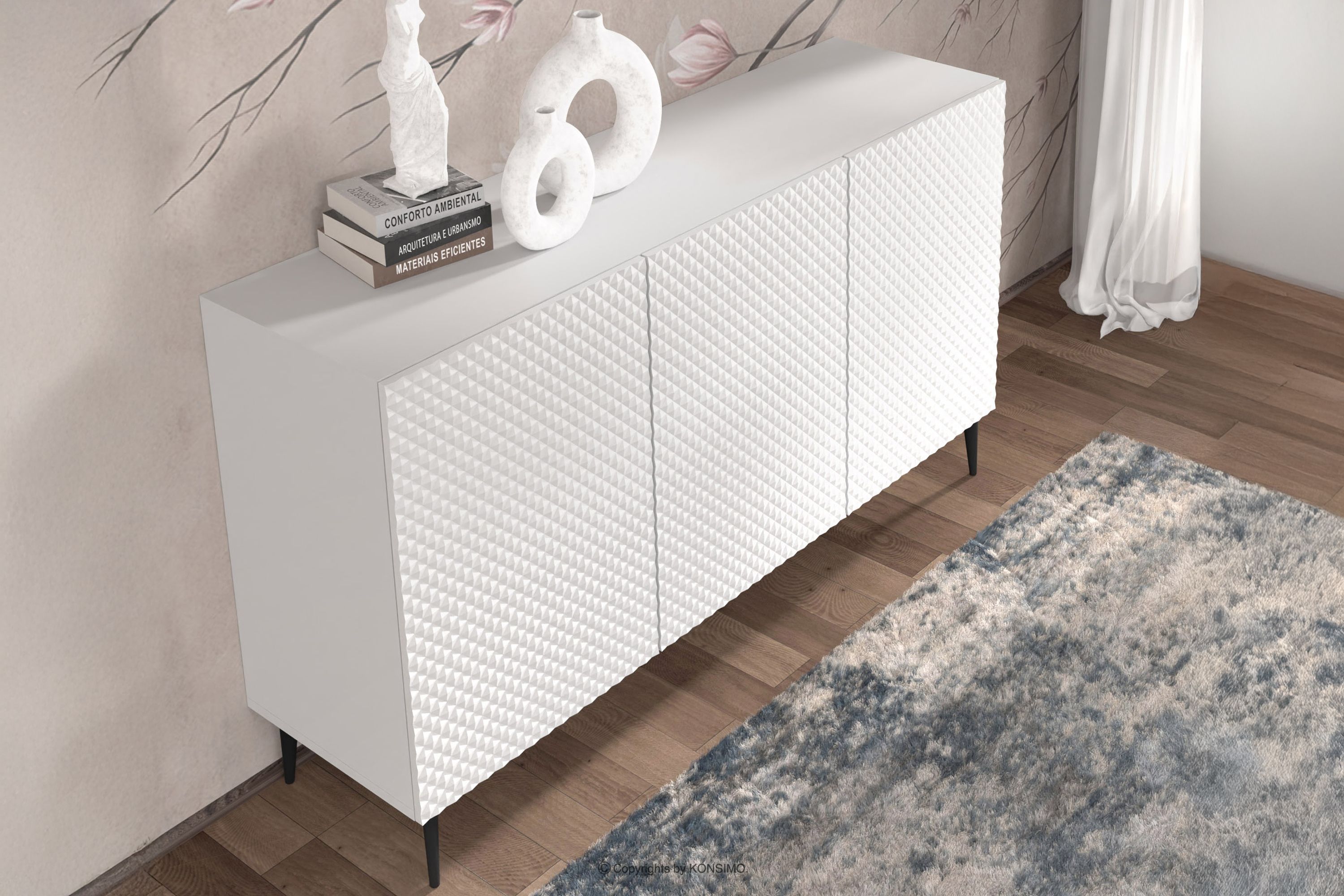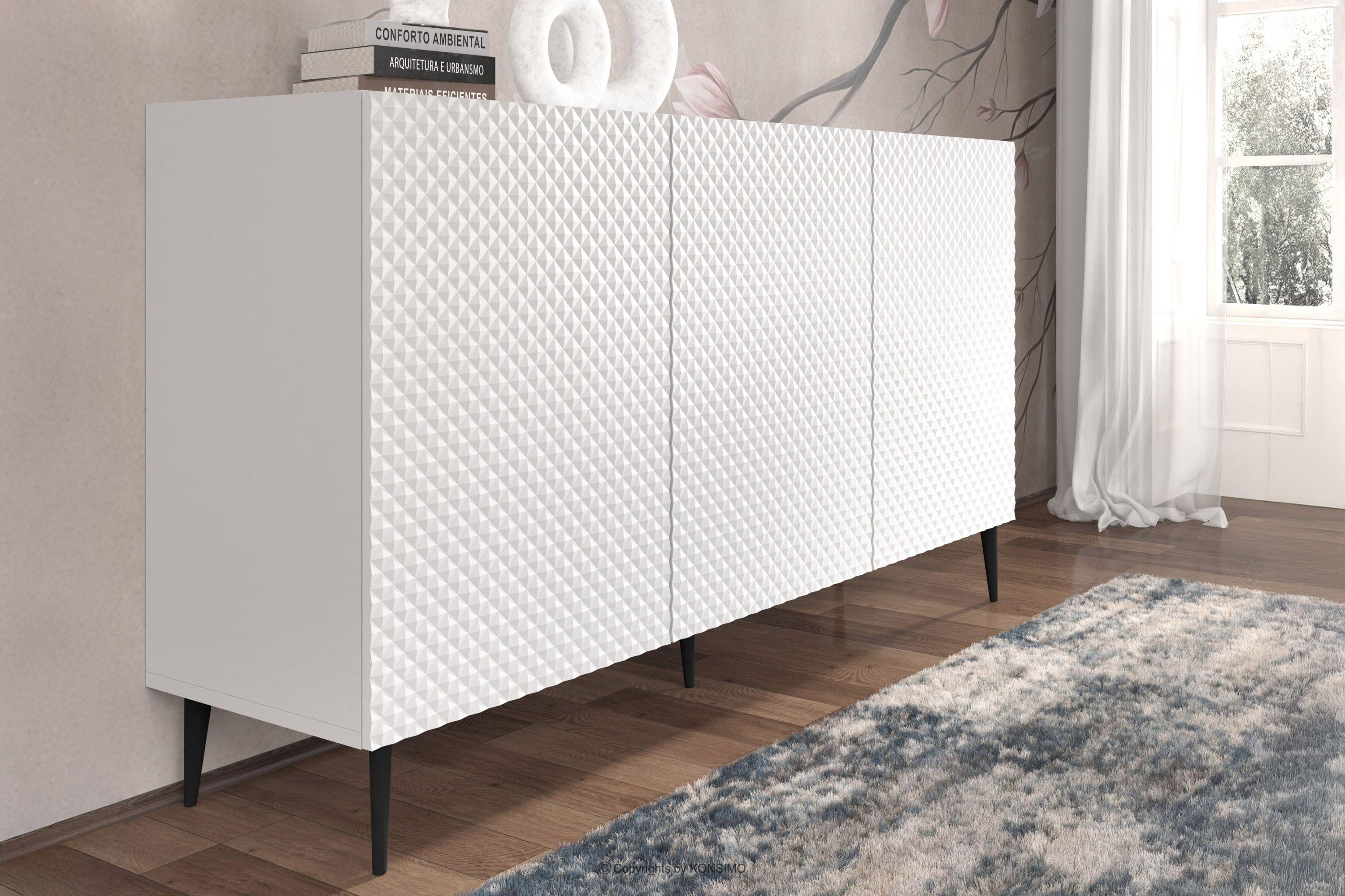 Die moderne Kommode mit weißen Beinen ist eine Kombination aus außergewöhnlichem Design, solider Verarbeitung und Funktionalität. Sie wurde für Menschen geschaffen, die Wert auf Ästhetik und Komfort im täglichen Gebrauch legen. Schlichte, minimalistische Formen, die mit subtilen Details angereichert sind, entsprechen den neuesten Trends in der Inneneinrichtung und fügen sich harmonisch in eine Vielzahl von Arrangements ein.