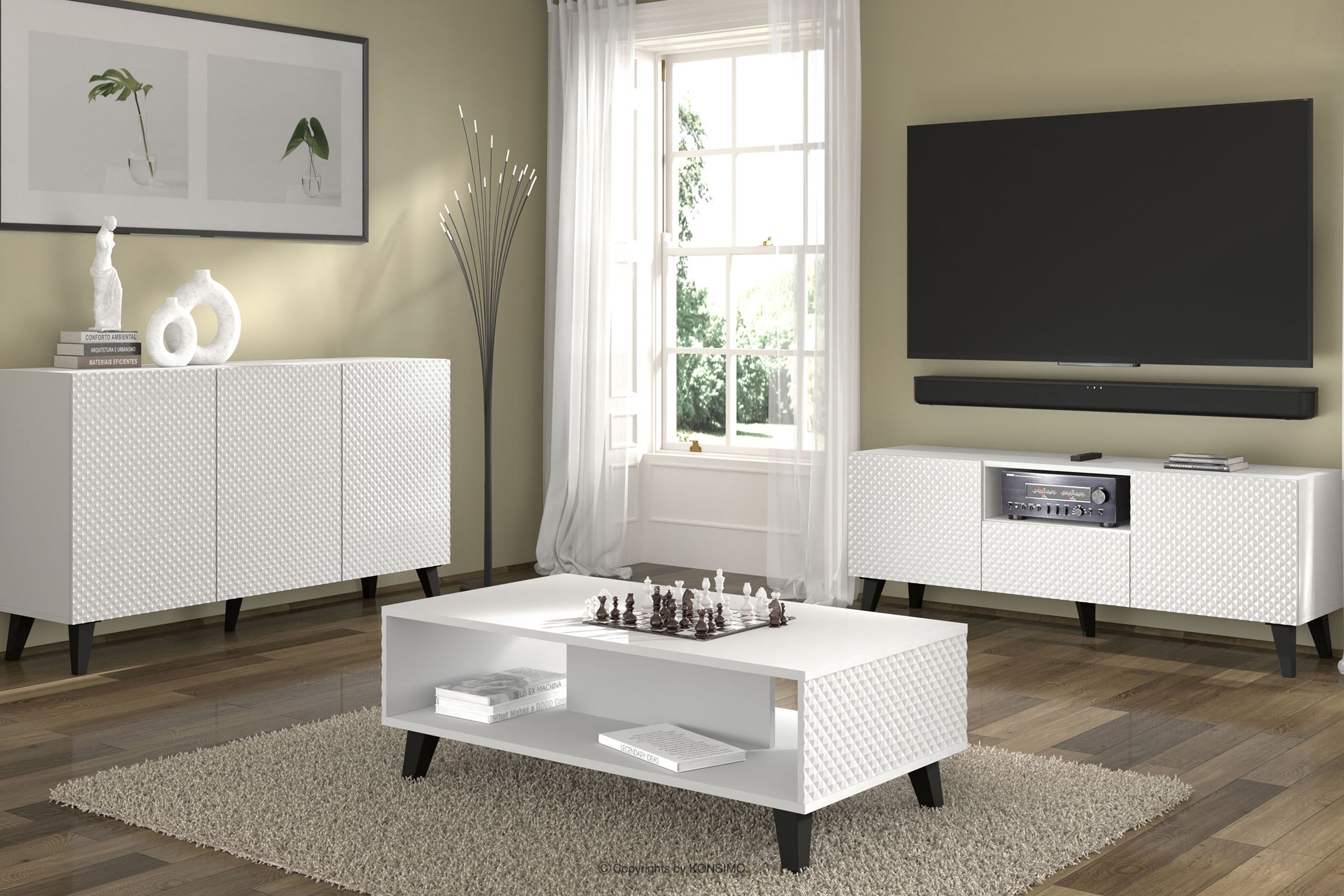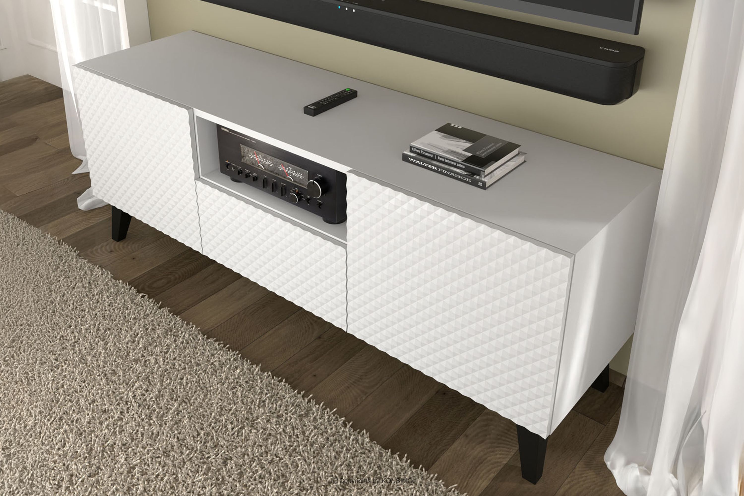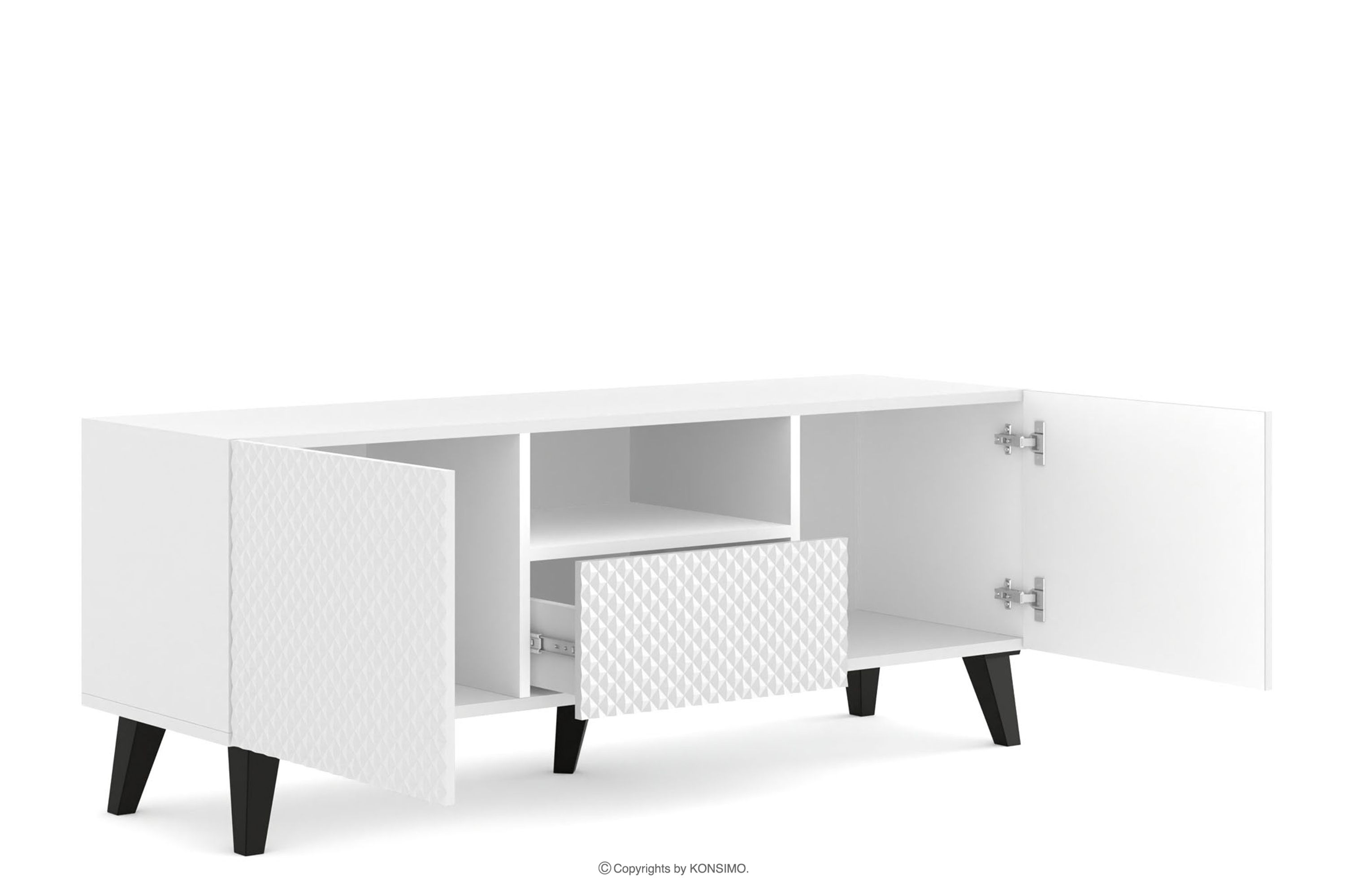 REMUS Mehr aus der Kollektion TV-Schrank auf Schwarzch-Beinen weiß- Farbe weiß