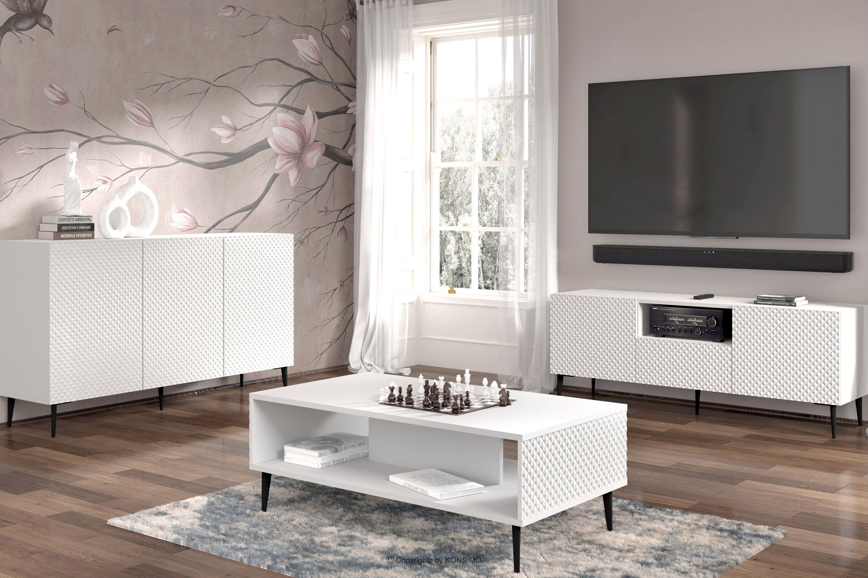 REMUS Mehr aus der Kollektion Weißer Couchtisch mit Einlegeböden- Farbe weiß