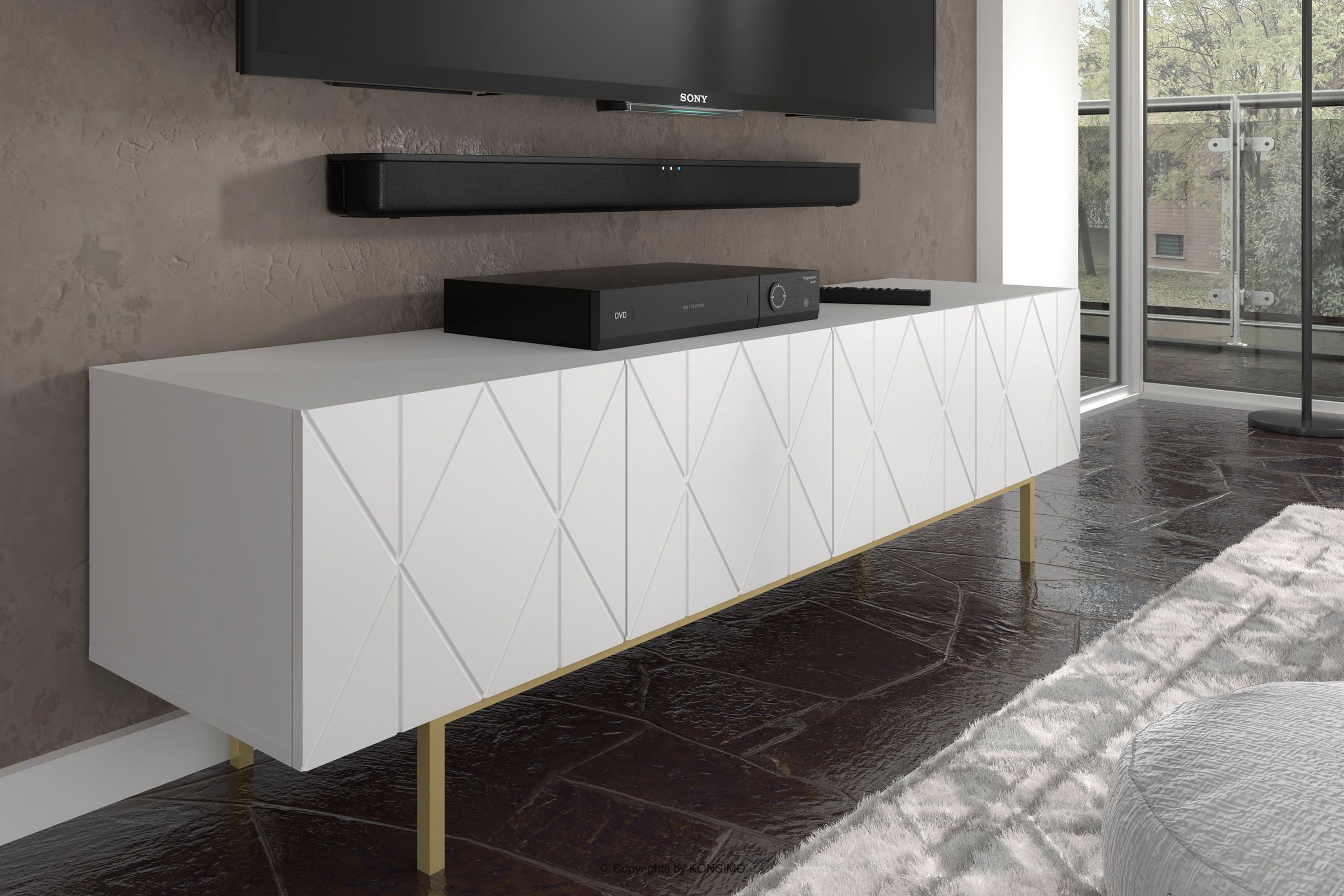 für das Produkt TV Kommode modern auf goldenen Beinen weiß matt