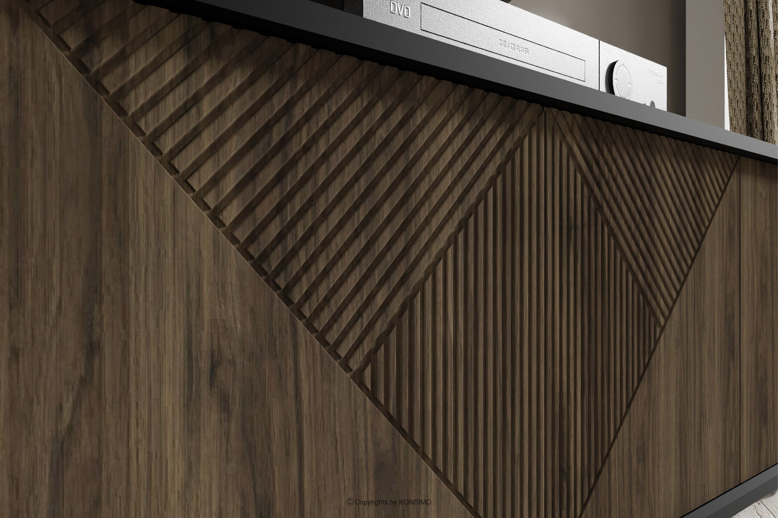 Der RTV-Schrank für TV schwarz/Walnuss ist eine Kombination aus außergewöhnlichem Design, solider Verarbeitung und Funktionalität. Er wurde für Menschen geschaffen, die Wert auf Ästhetik und Komfort im täglichen Gebrauch legen. Schlichte, minimalistische Formen, die mit subtilen Details angereichert sind, entsprechen den neuesten Einrichtungstrends und fügen sich harmonisch in eine Vielzahl von Arrangements ein.