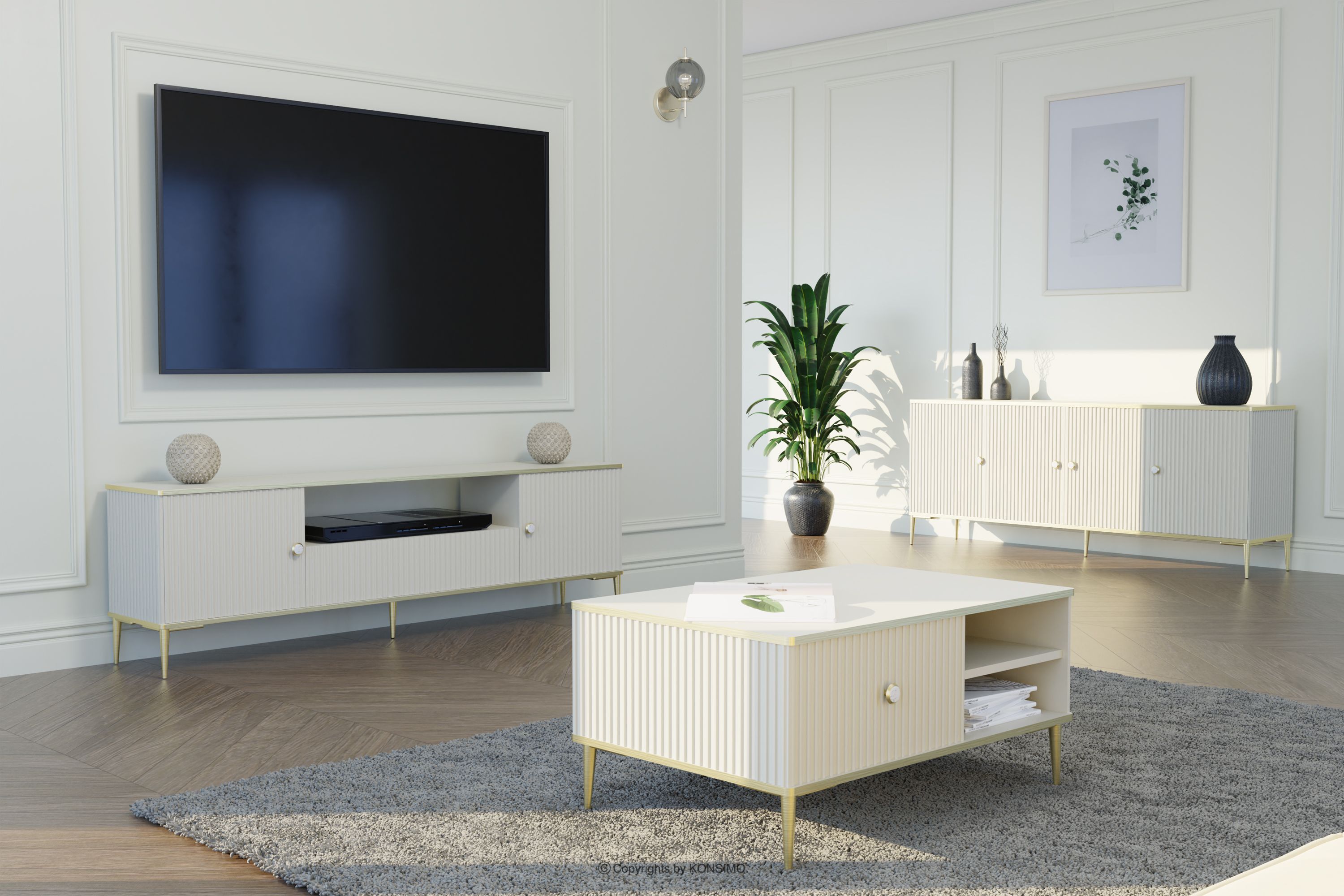 Esstisch im Glamour-Stil auf goldenen Beinen creme TULA - Farbe Creme