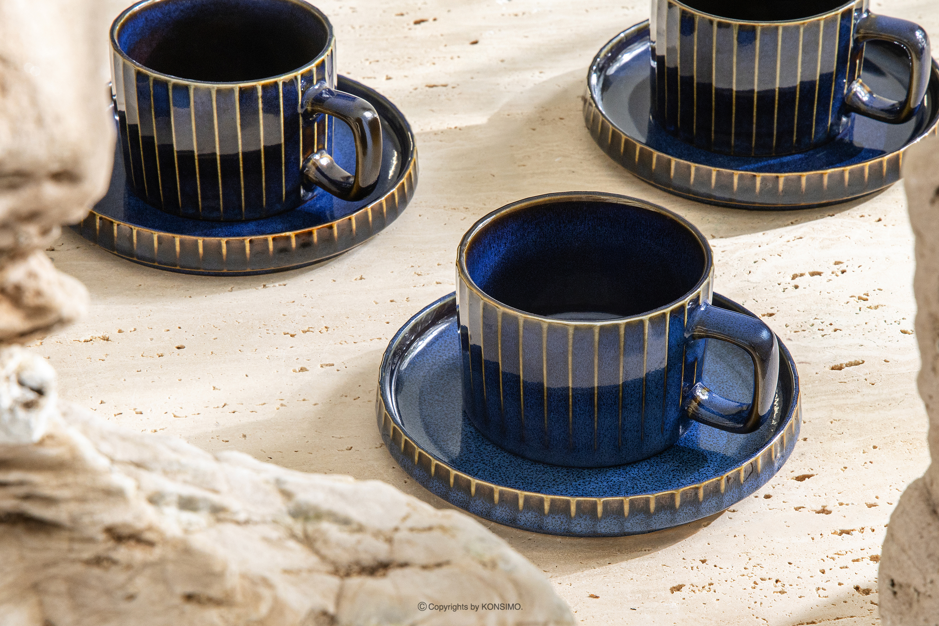AD STRIPES Kaffeetasse 6 tlg. aus reaktivem Porzellan dunkelblau