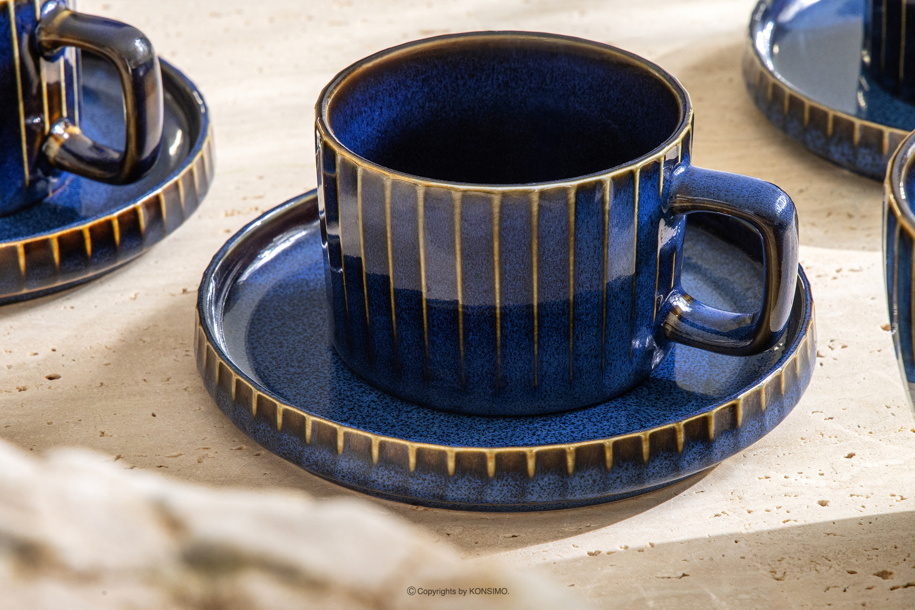 AD STRIPES Kaffeeservice 6 Personen (18 tlg.) aus reaktivem Porzellan dunkelblau
