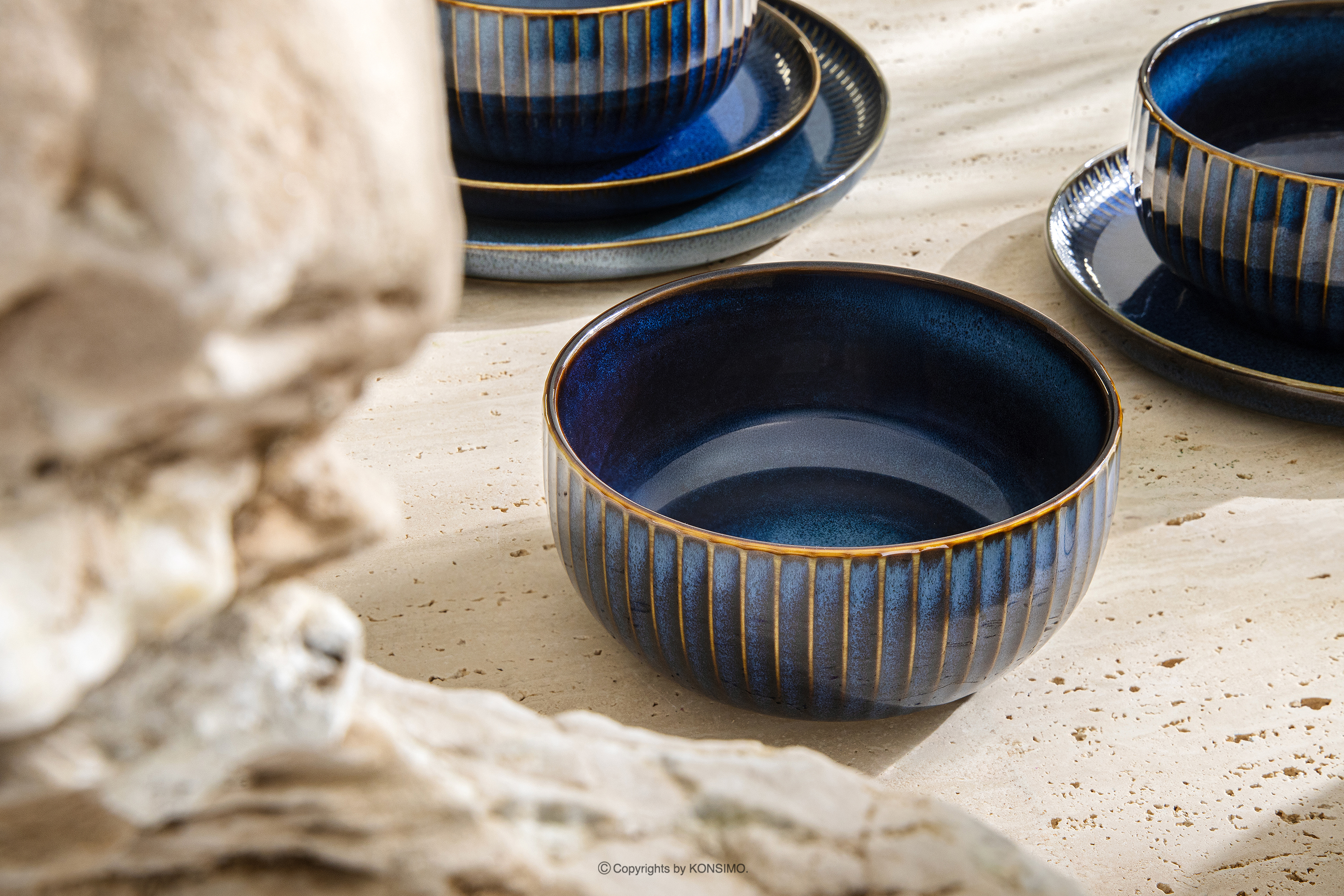 AD STRIPES Frühstücksset 6 Personen (12 tlg.) aus reaktivem Porzellan dunkelblau