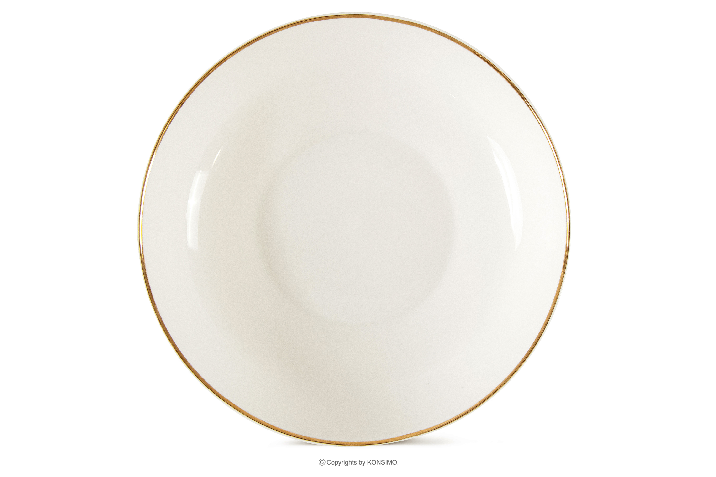 Suppenteller Hartporzellan ecru/gold 6 tlg. - klassisch, elegant und außergewöhnlich langlebig. Unsere Kollektion vereint klassische Eleganz, zuverlässige Langlebigkeit und höchste Verarbeitungsqualität. Sie ist die perfekte Wahl für Menschen, die Wert auf die Schönheit des Esstischs und die Funktionalität im täglichen Gebrauch legen. Die warme, leicht cremige Farbe des Geschirrs passt perfekt zu verschiedenen Esstisch-Arrangements und passt sowohl zu klassischen als auch zu modernen Inneneinrichtungen.