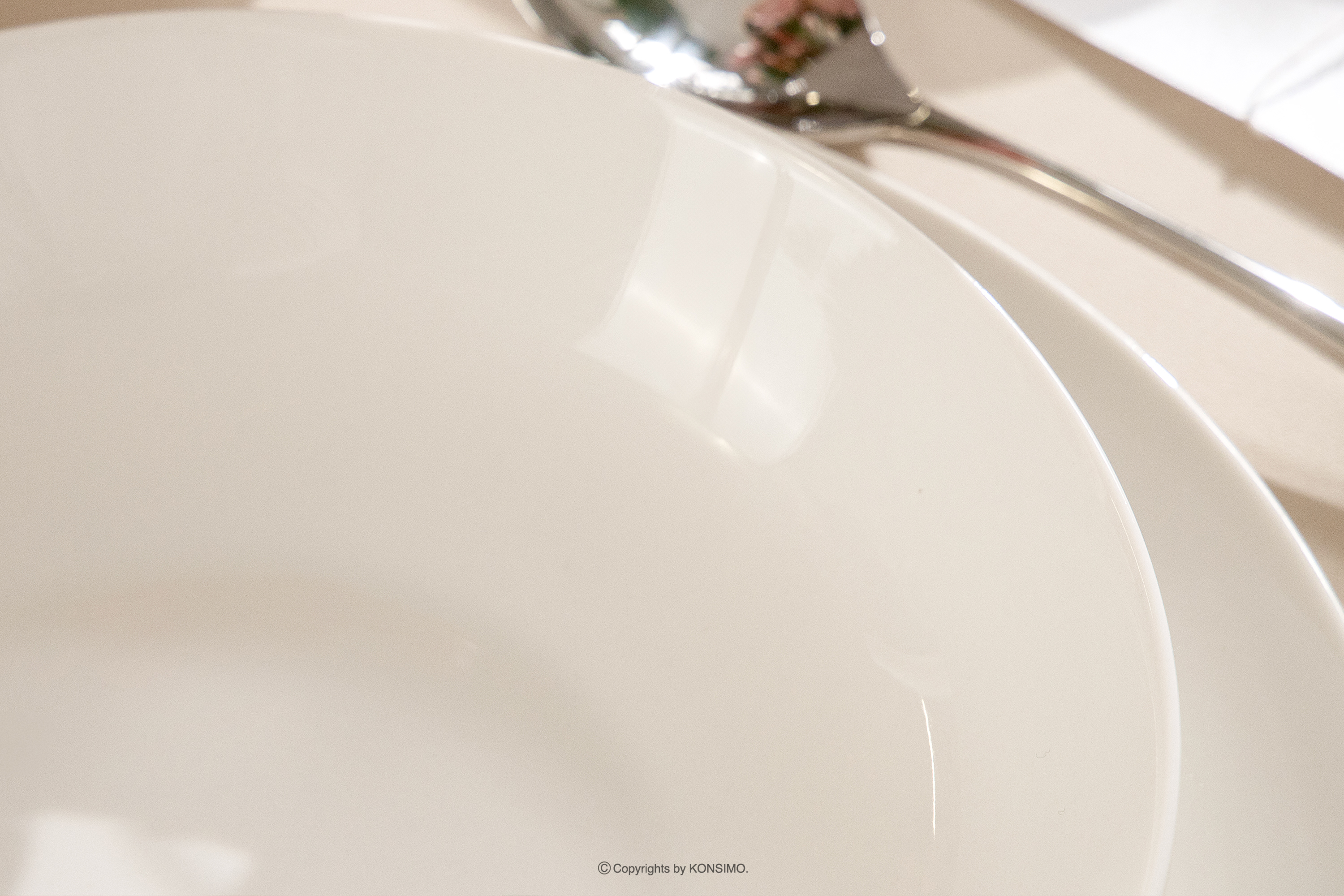 Suppenteller Hartporzellan 6 tlg. ecru - Klassiker, Eleganz und außergewöhnliche Haltbarkeit. Unsere Kollektion ist eine Kombination aus klassischer Eleganz, zuverlässiger Langlebigkeit und hervorragender Verarbeitung. Sie ist die ideale Wahl für Menschen, die die Schönheit des gedeckten Esstischs und die Funktionalität im täglichen Gebrauch schätzen. Die warme, leicht cremefarbene Farbe des Geschirrs passt perfekt zu einer Vielzahl von Esstischen und passt sowohl zu klassischen als auch zu modernen Interieurs.