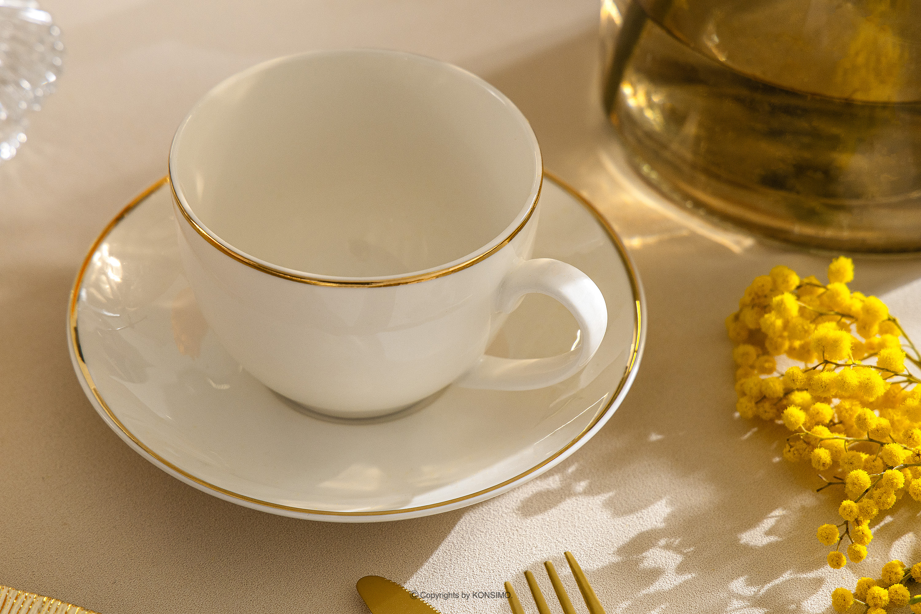 AD BELLA Kaffeetasse mit Unterseller Hartporzellan ecru/gold 6 tlg.