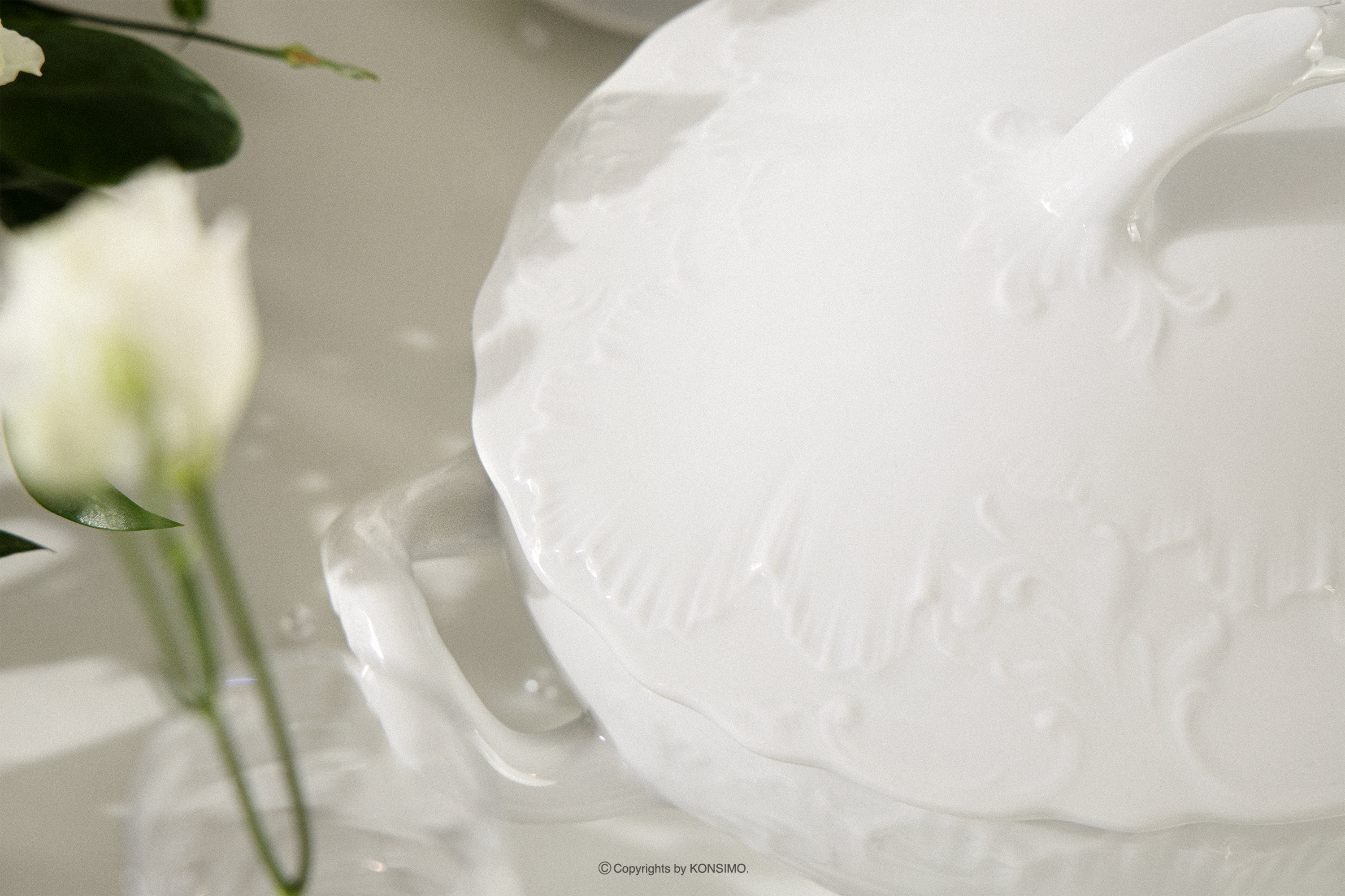 Porzellanvase weiß ist die Quintessenz zeitloser Eleganz, die klassische Schönheit mit Funktionalität verbindet. Hergestellt aus hochwertigem Porzellan, entworfen für alle, die Ästhetik, Bedienkomfort und raffinierte Details schätzen. Die perfekte Kollektion für jedes Fest - ob es sich um einen besonderen, feierlichen Anlass handelt oder um eine alltägliche Mahlzeit, die einen Hauch von Luxus verdient.
