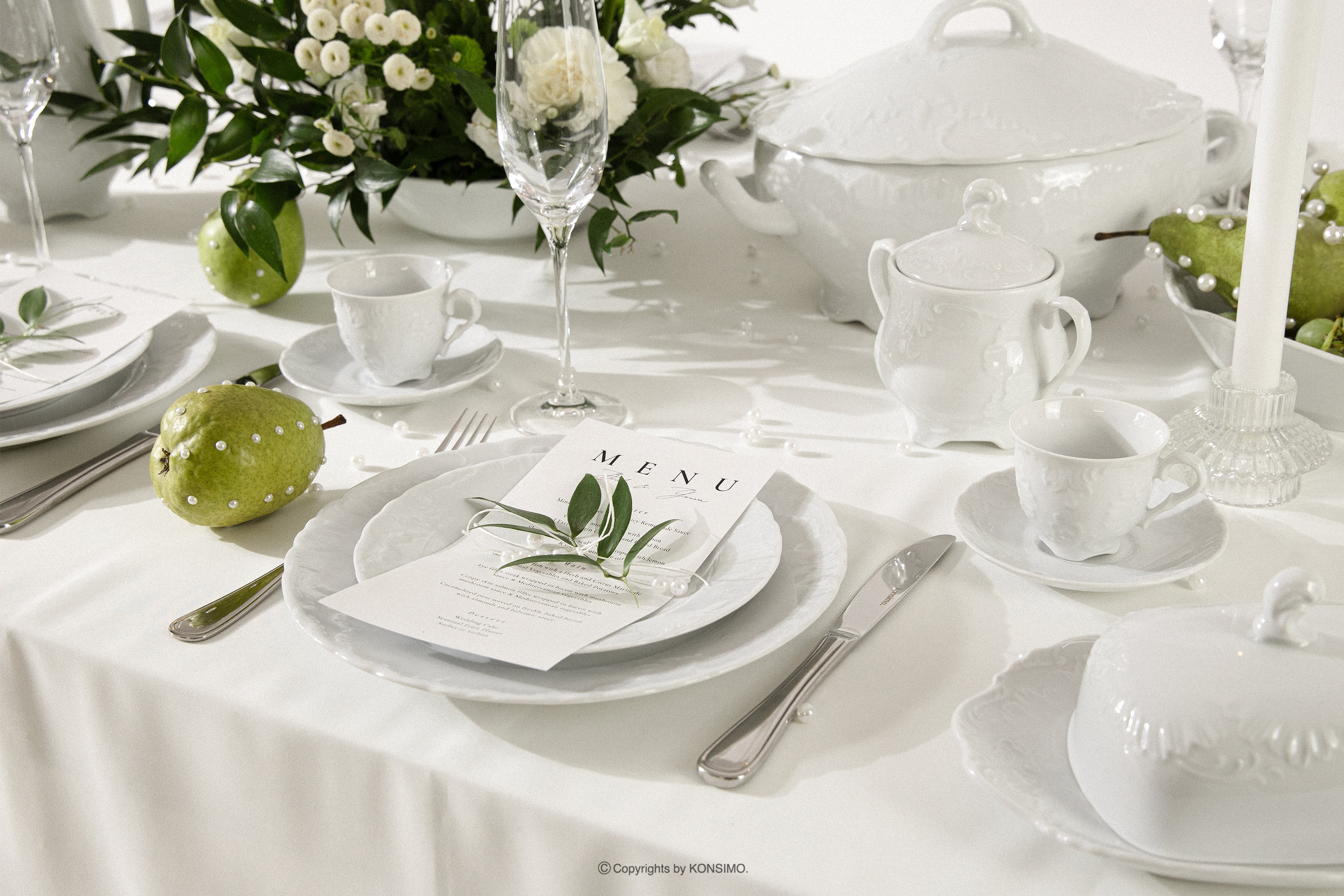 Kaffeetasse mit Untertasse 6 St. in Porzellan weiß ist die Quintessenz zeitloser Eleganz, die klassische Schönheit mit Funktionalität verbindet. Hergestellt aus hochwertigem Porzellan, entworfen für alle, die Ästhetik, Bedienkomfort und raffinierte Details schätzen. Die perfekte Kollektion für jedes Fest - ob es sich um einen besonderen, feierlichen Anlass handelt oder um eine alltägliche Mahlzeit, die einen Hauch von Luxus verdient.
