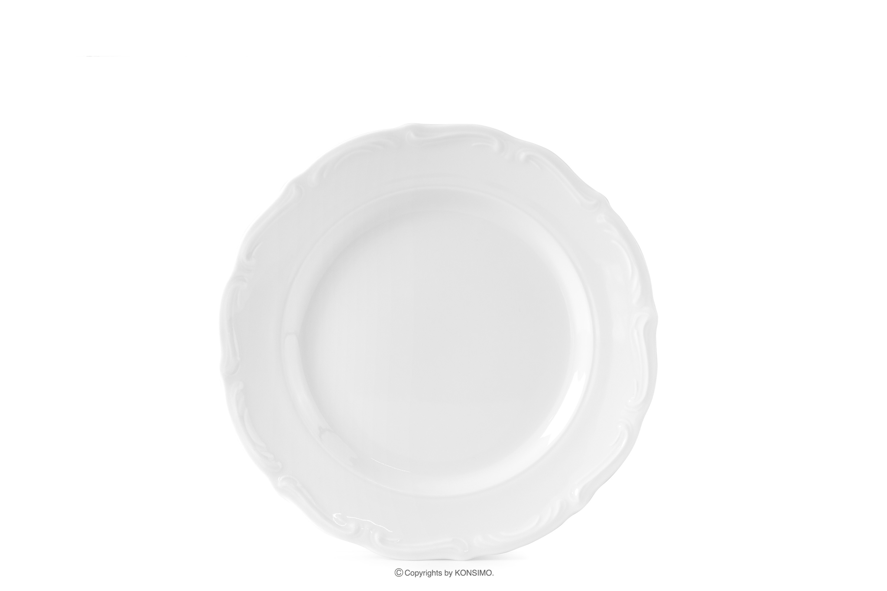 Klassischer Dessertteller aus Porzellan weiß - perfekte Verarbeitung für anspruchsvolle Nutzer. Bringen Sie einen Hauch von zeitloser Eleganz in Ihr Esszimmer mit Produkten aus hochwertigem Porzellan. Es ist ein Vorschlag für Menschen, die Stil, Langlebigkeit und Funktionalität im täglichen Gebrauch sowie bei besonderen Anlässen zu schätzen wissen. Die Kollektion besticht durch ihr klassisches Design, die subtilen Verzierungen und die perfekte Verarbeitung, die jedem Esstisch Charme verleihen.