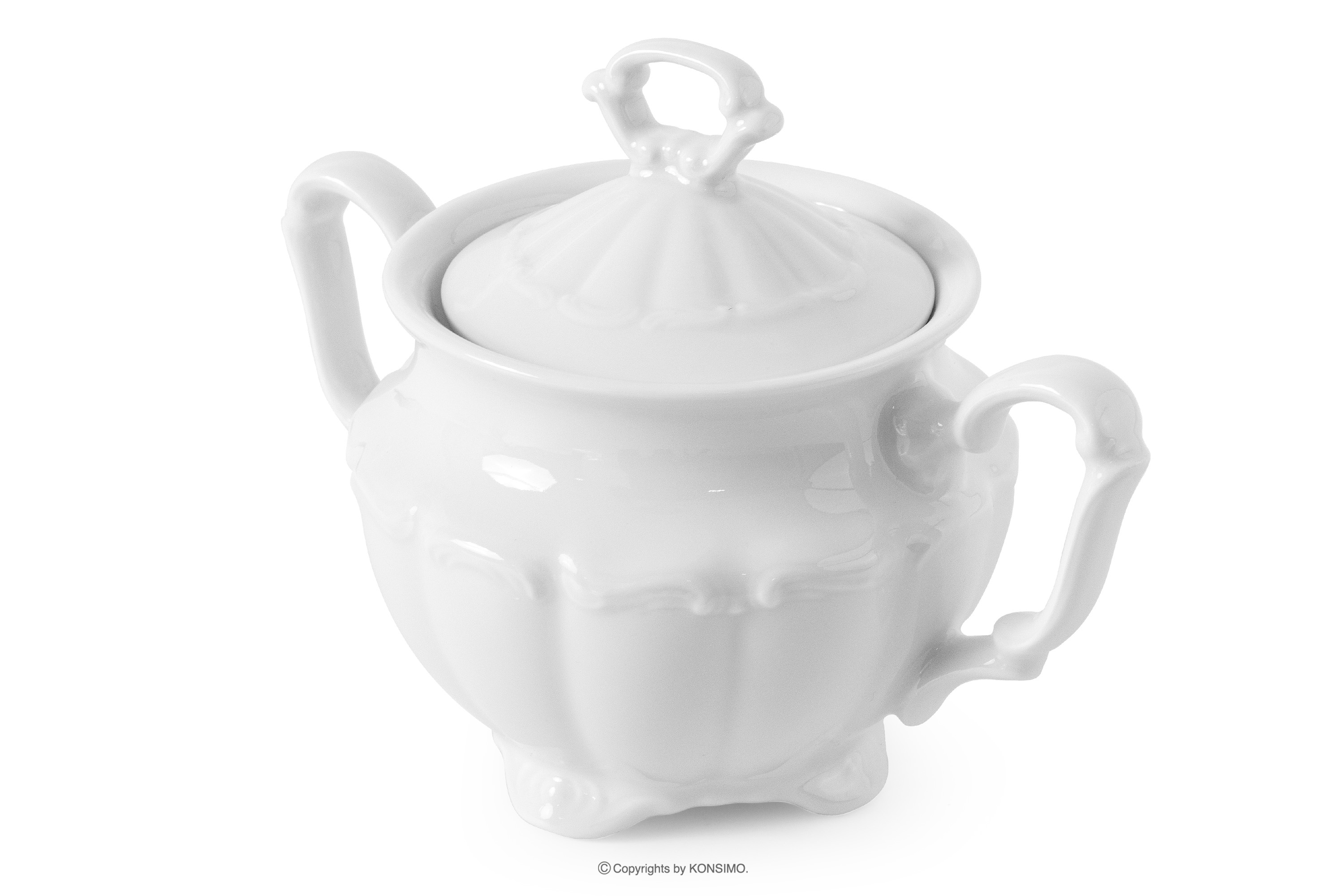 Klassische Zuckerdose aus Porzellan weiß - perfekte Verarbeitung für anspruchsvolle Nutzer. Bringen Sie einen Hauch von zeitloser Eleganz in Ihr Esszimmer mit Produkten aus hochwertigem Porzellan. Es ist ein Vorschlag für Menschen, die Stil, Langlebigkeit und Funktionalität im täglichen Gebrauch sowie bei besonderen Anlässen zu schätzen wissen. Die Kollektion besticht durch ihr klassisches Design, die subtilen Verzierungen und die perfekte Verarbeitung, die jedem Esstisch Charme verleihen.