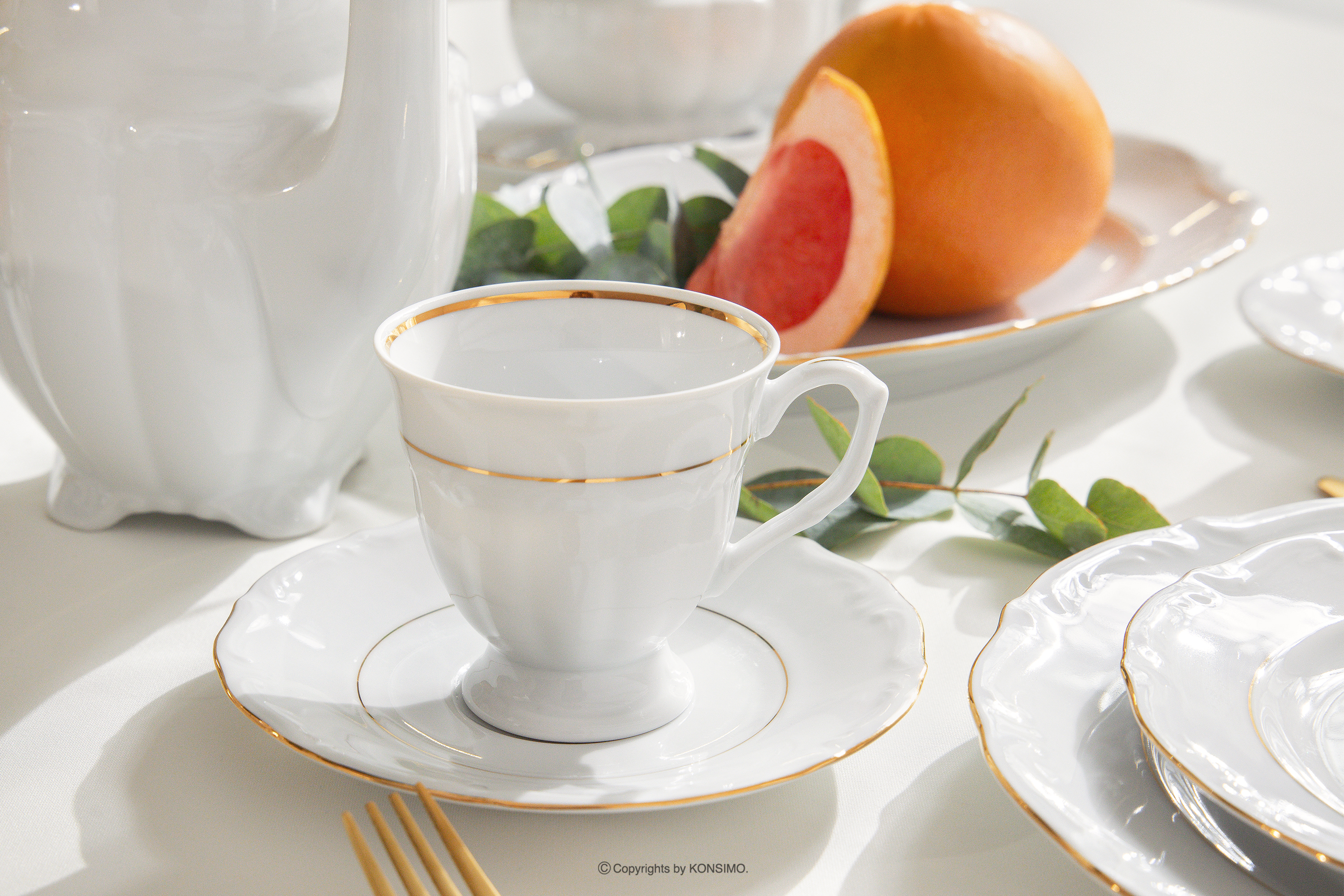 Eine Kollektion, die mit äußerster Präzision aus sorgfältig ausgewähltem Porzellan hergestellt wird, das sich durch seine außergewöhnliche Haltbarkeit und sein elegantes Aussehen auszeichnet. Jedes Detail wurde nach den höchsten ästhetischen und funktionalen Standards entworfen. Subtile Dekorationen in Form von zarten Mustern verleihen dem Geschirr einen einzigartigen Charakter, ohne die gesamte Tischkomposition zu dominieren. Dank dieser Optik eignet sich die Kollektion für jedes Ambiente - vom alltäglichen Familienessen bis hin zu üppigen Diners und Festlichkeiten wie Hochzeiten, Jubiläen oder Feiertagen.
