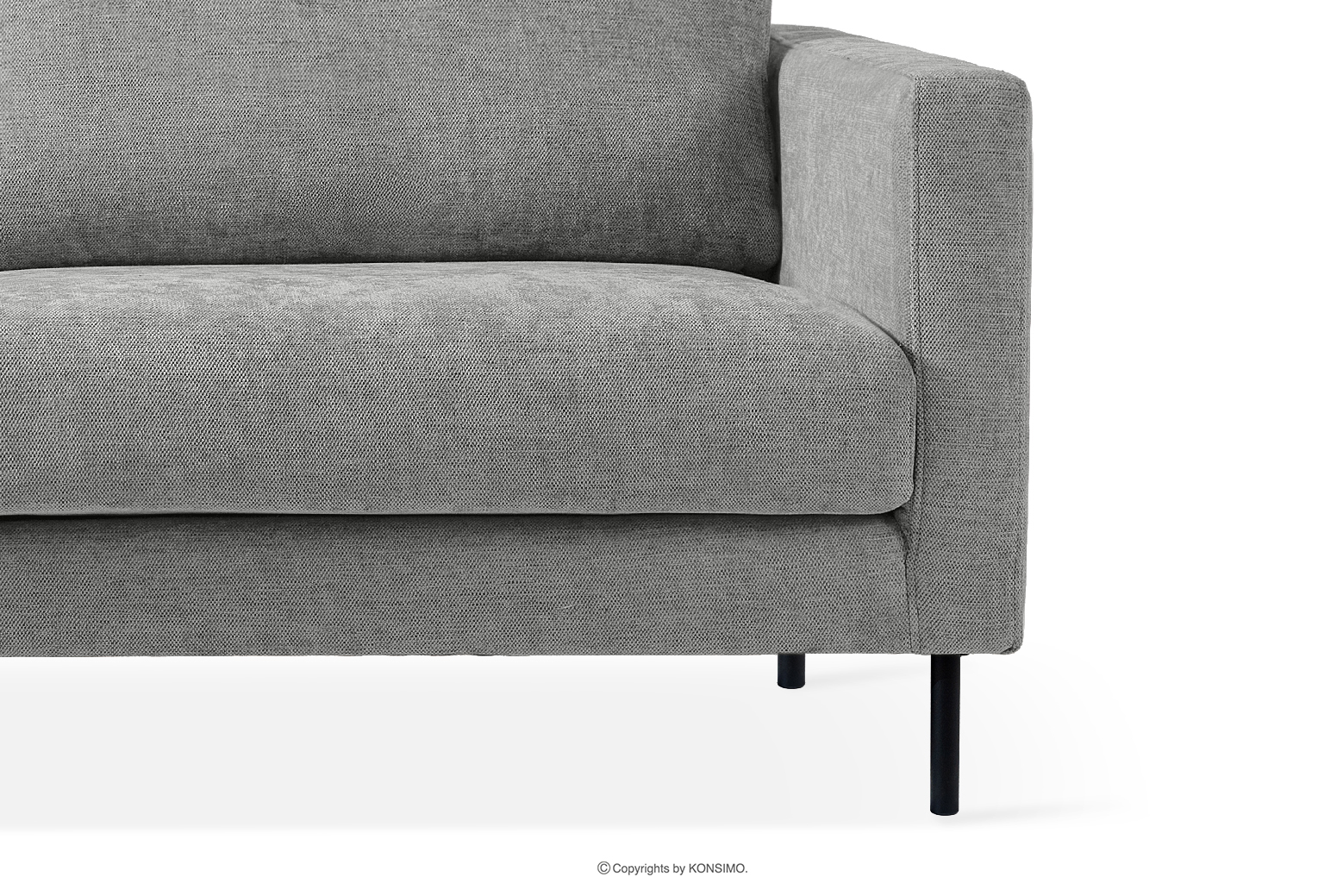 Dreisitzer-Sofa auf hohen Beinen grauer Gewebestoff ist die Essenz modernen Designs, kombiniert mit höchstem Nutzungskomfort. Die moderne Form in Kombination mit hochwertigen Materialien macht diese Kollektion zu einer Investition für die kommenden Jahre und bietet nicht nur Platz zum Entspannen, sondern auch ein stilvolles Element der Inneneinrichtung. Das Set enthält zwei Kissen, die mit antiallergischem HCS-Material gefüllt sind.