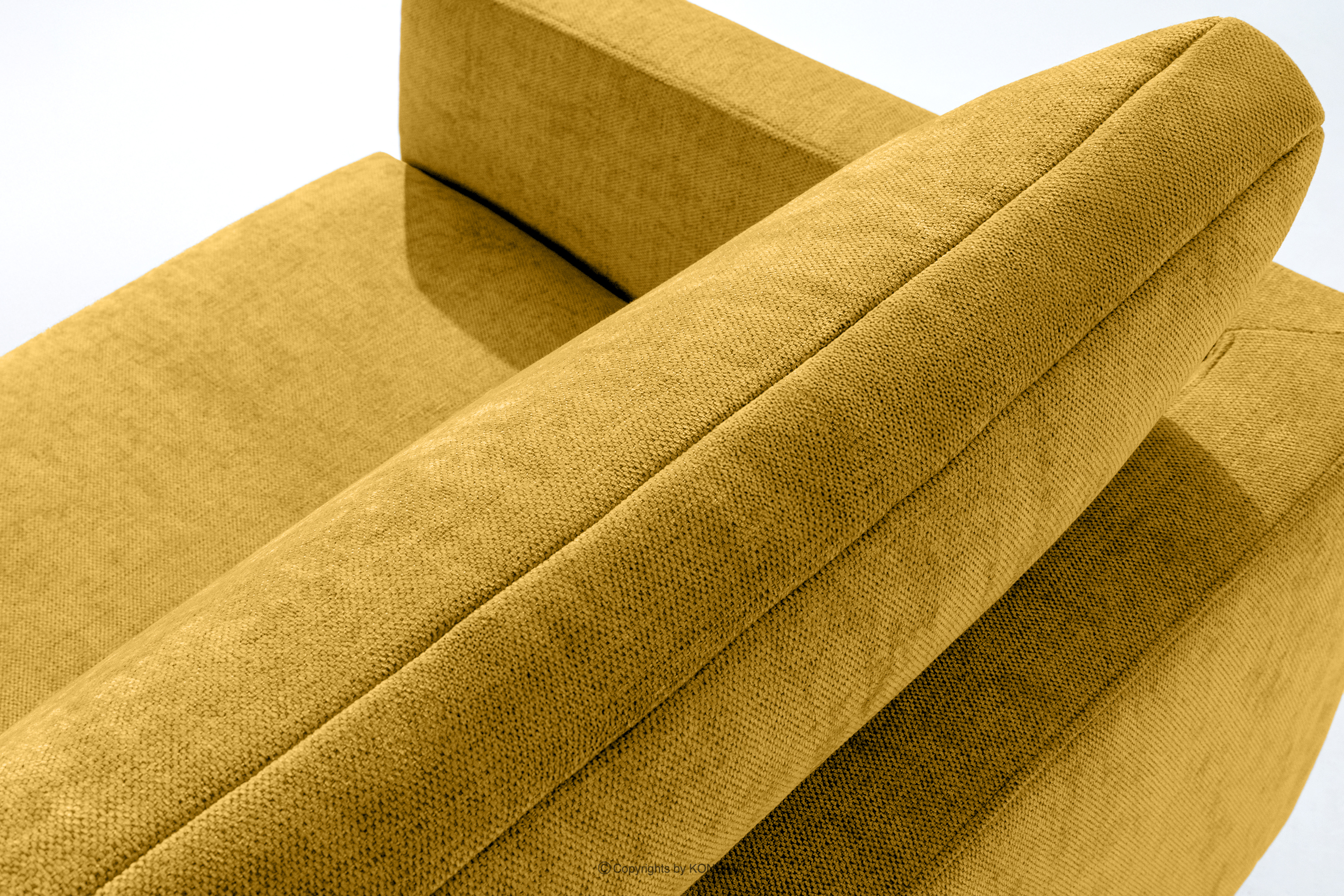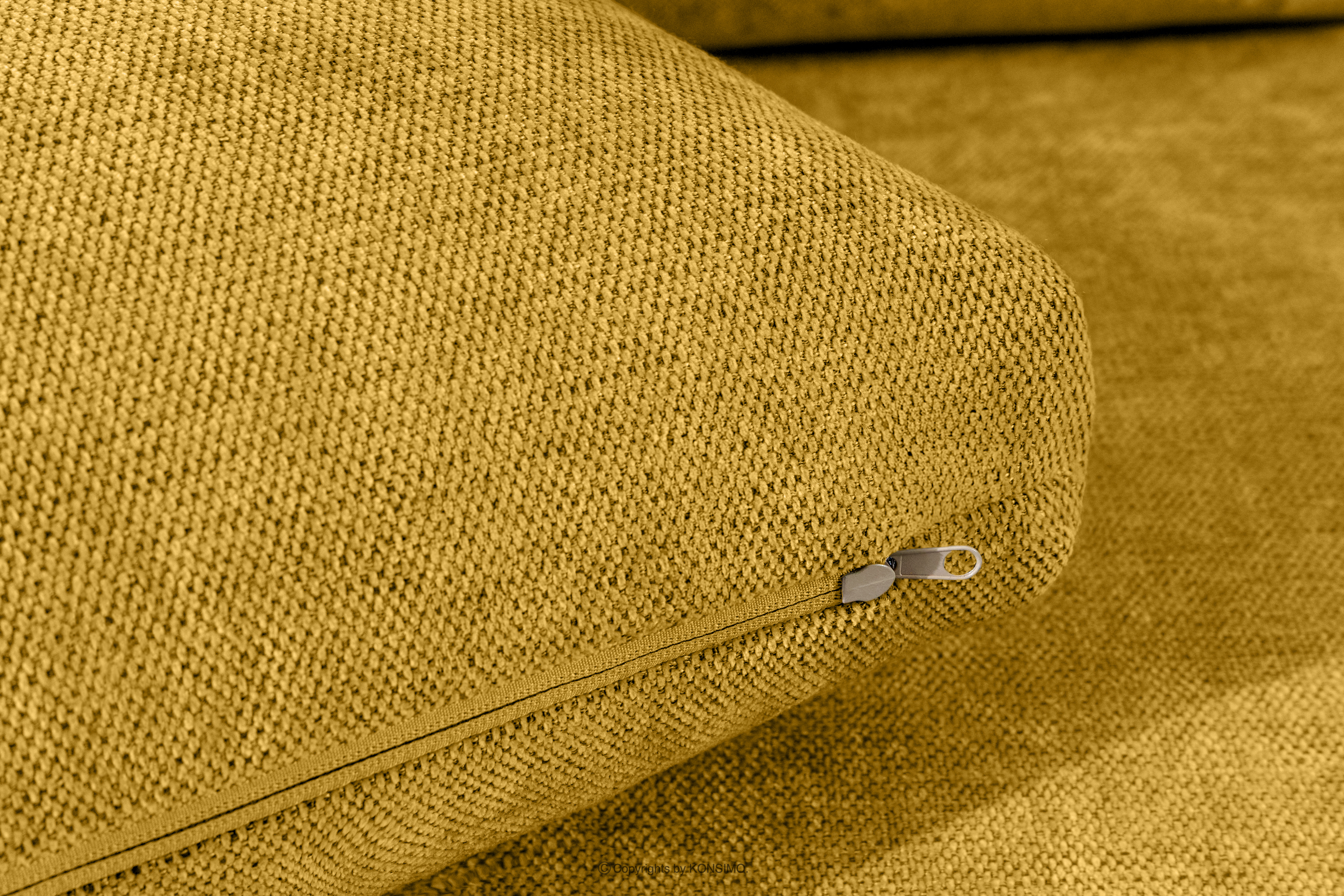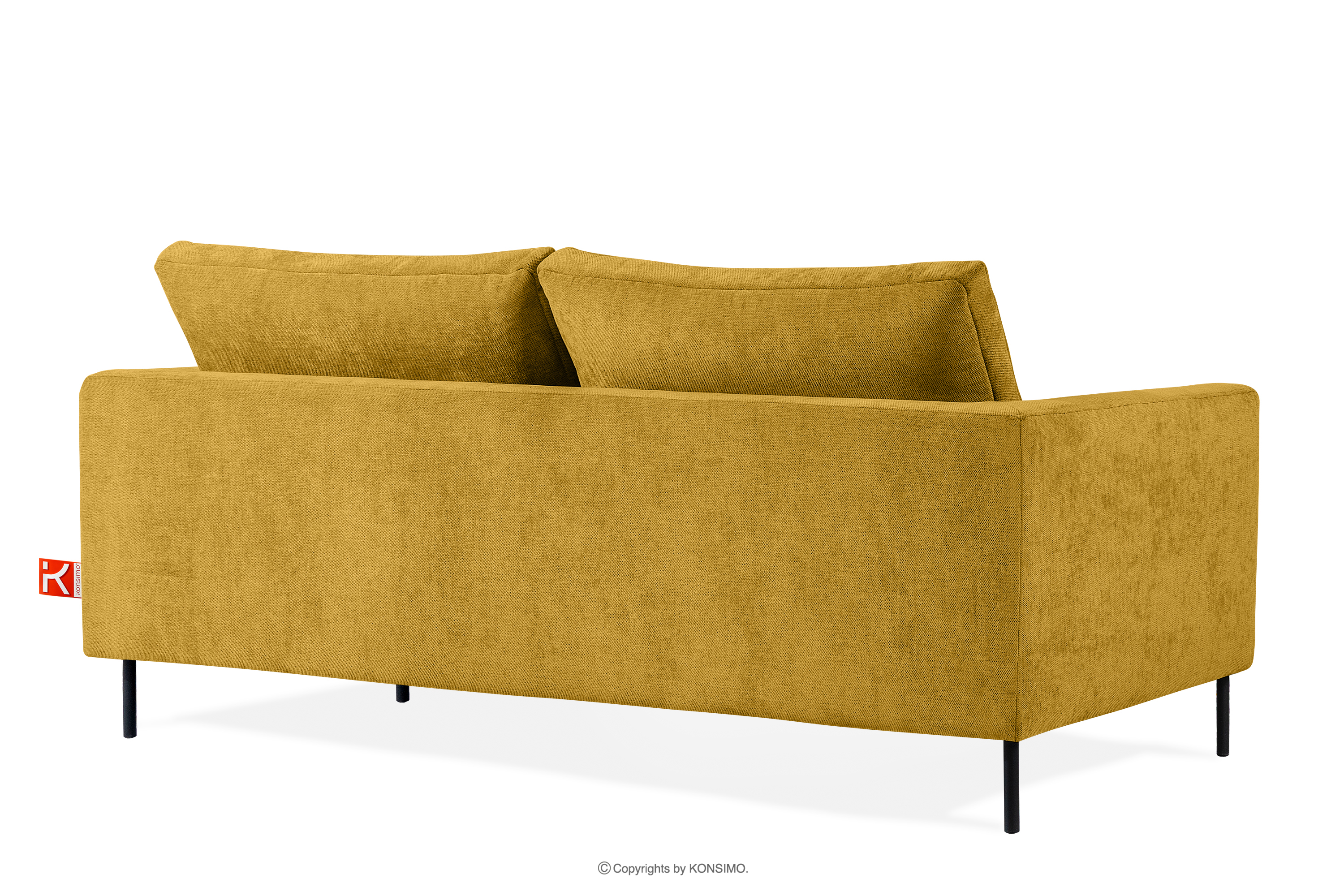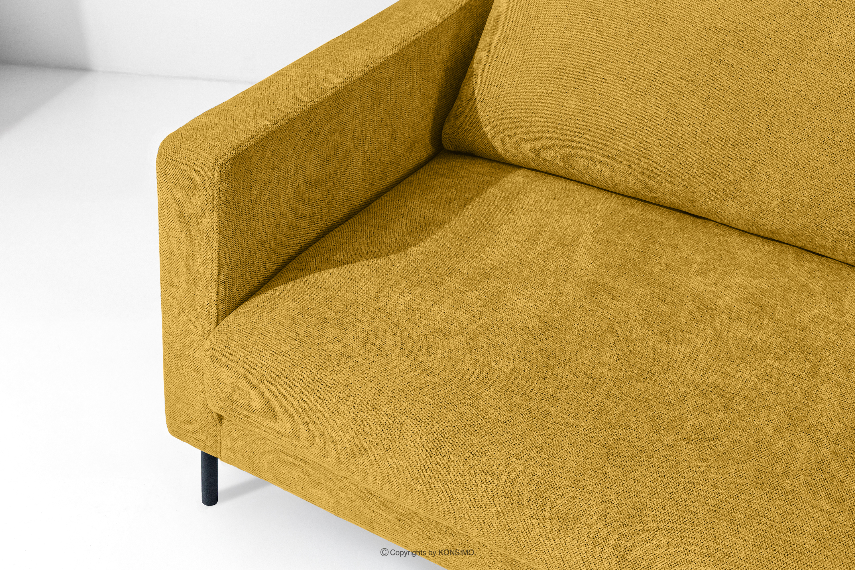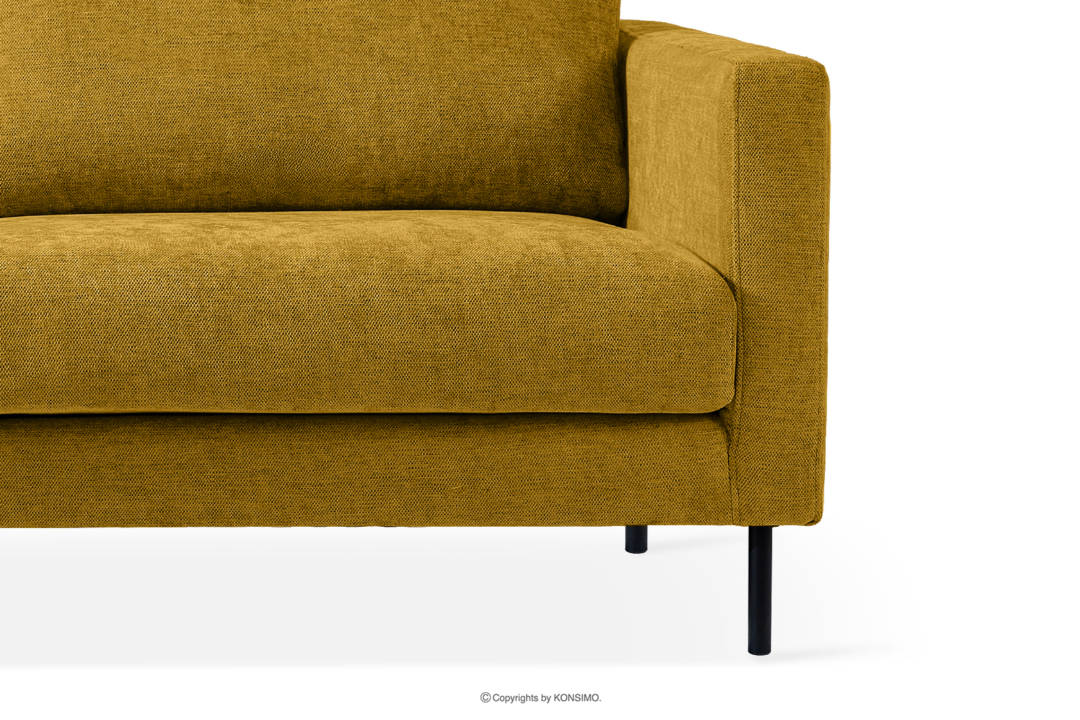 Dreisitzer-Sofa auf hohen Beinen Gewebestoff gelb ist die Essenz modernen Designs, kombiniert mit höchstem Nutzungskomfort. Die moderne Form in Kombination mit hochwertigen Materialien macht diese Kollektion zu einer Investition für die kommenden Jahre und bietet nicht nur Platz zum Entspannen, sondern auch ein stilvolles Element der Inneneinrichtung. Das Set enthält zwei Kissen, die mit antiallergischem HCS-Material gefüllt sind.