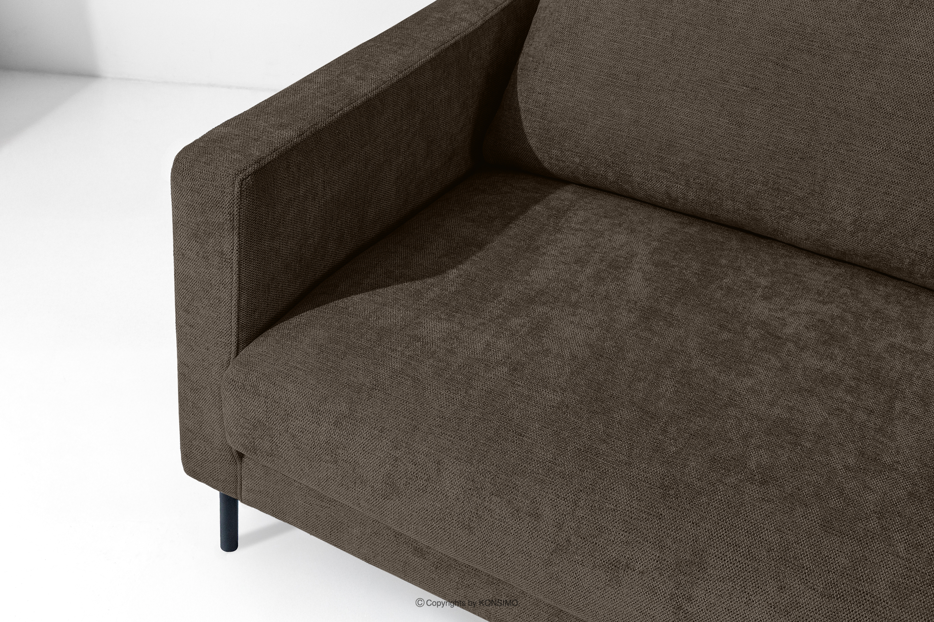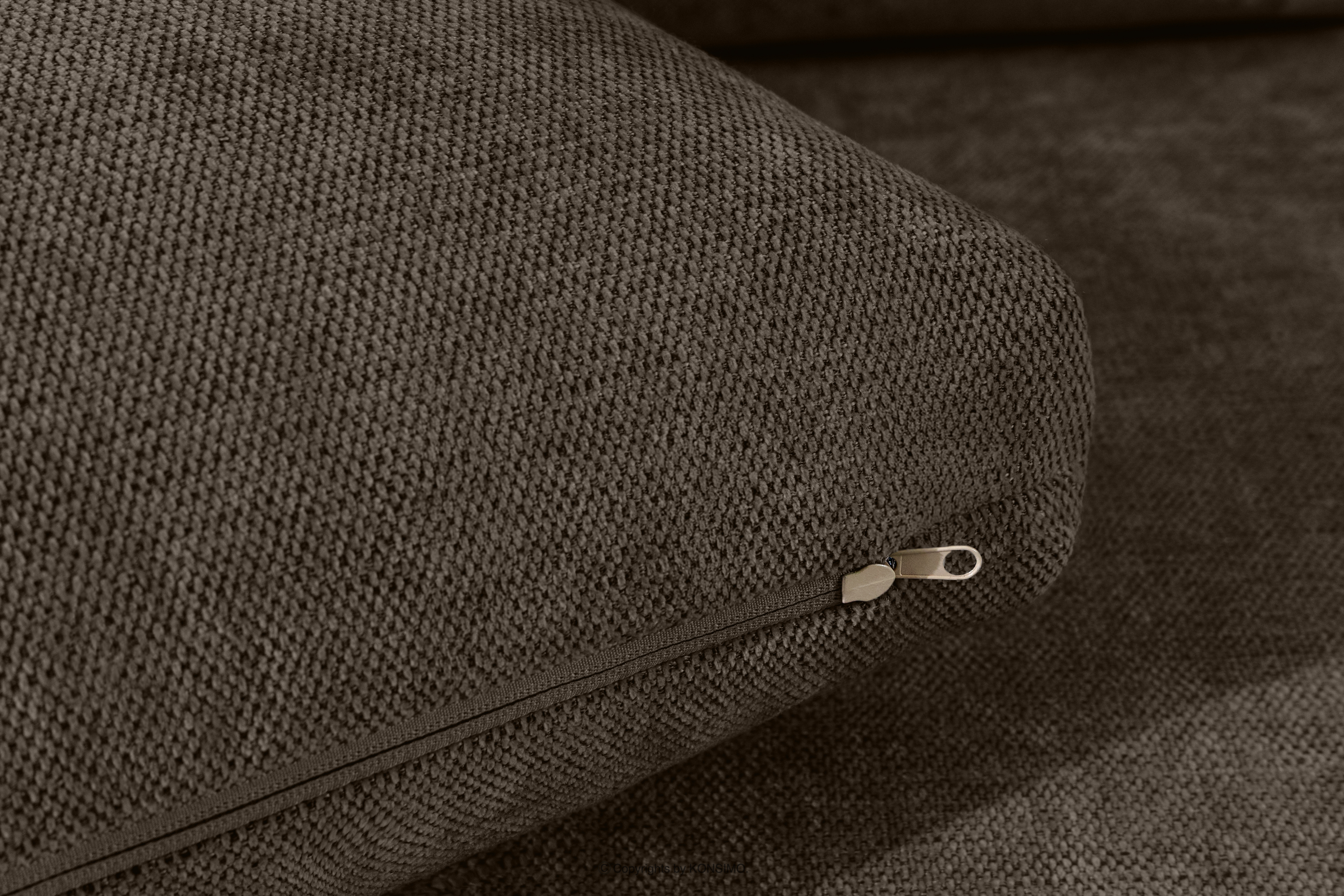 Dreisitzer-Sofa auf hohen Beinen kühler brauner Gewebestoff ist die Essenz modernen Designs, kombiniert mit höchstem Nutzungskomfort. Die moderne Form in Kombination mit hochwertigen Materialien macht diese Kollektion zu einer Investition für die kommenden Jahre und bietet nicht nur Platz zum Entspannen, sondern auch ein stilvolles Element der Inneneinrichtung. Das Set enthält zwei Kissen, die mit antiallergischem HCS-Material gefüllt sind.