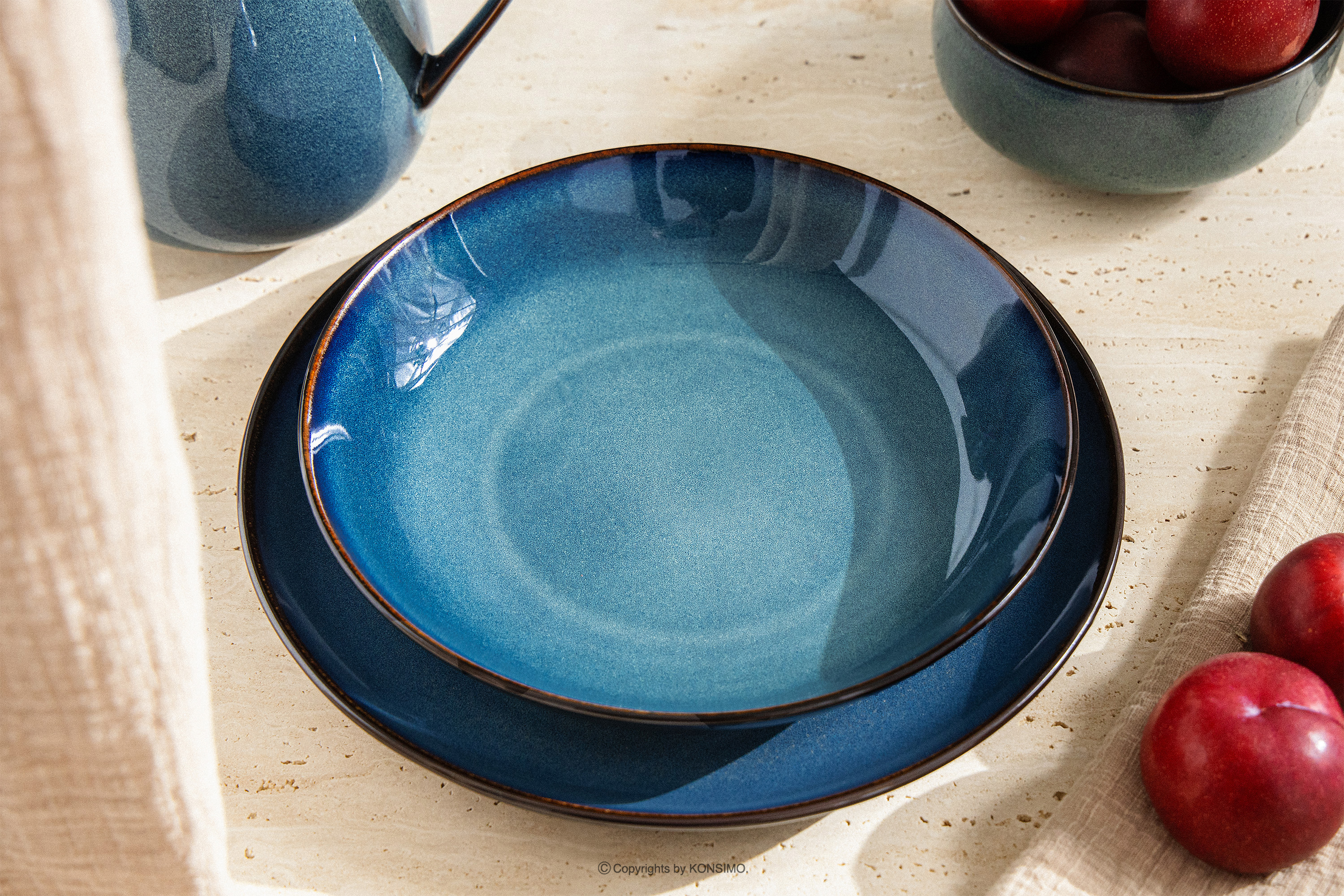 BALI Tafelservice 6 Personen (24 tlg.) Reaktivglasur blau/schwarz matt